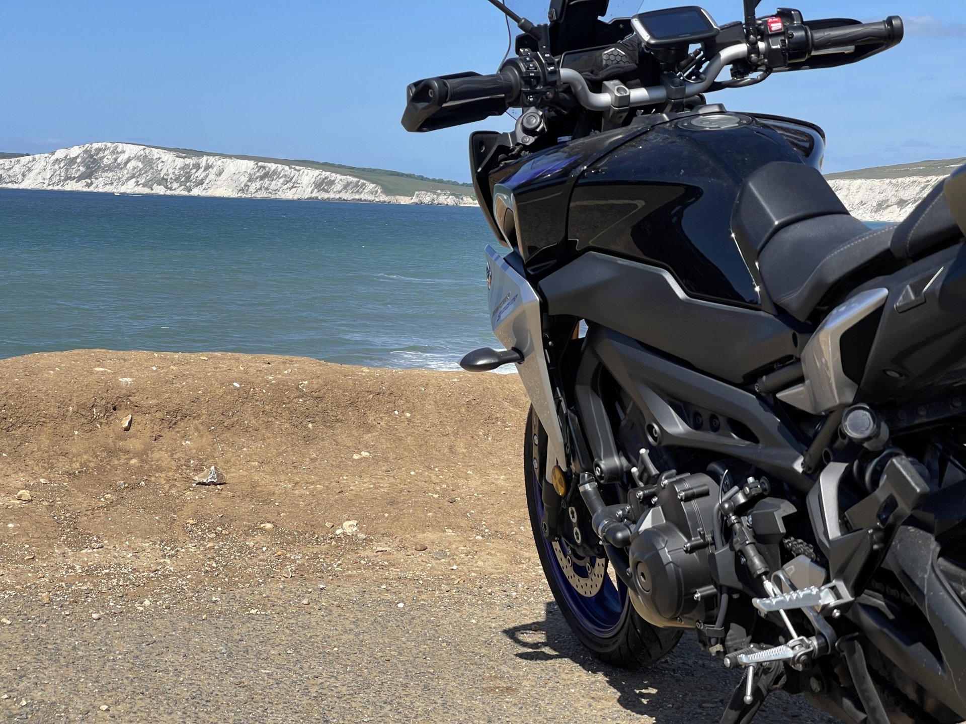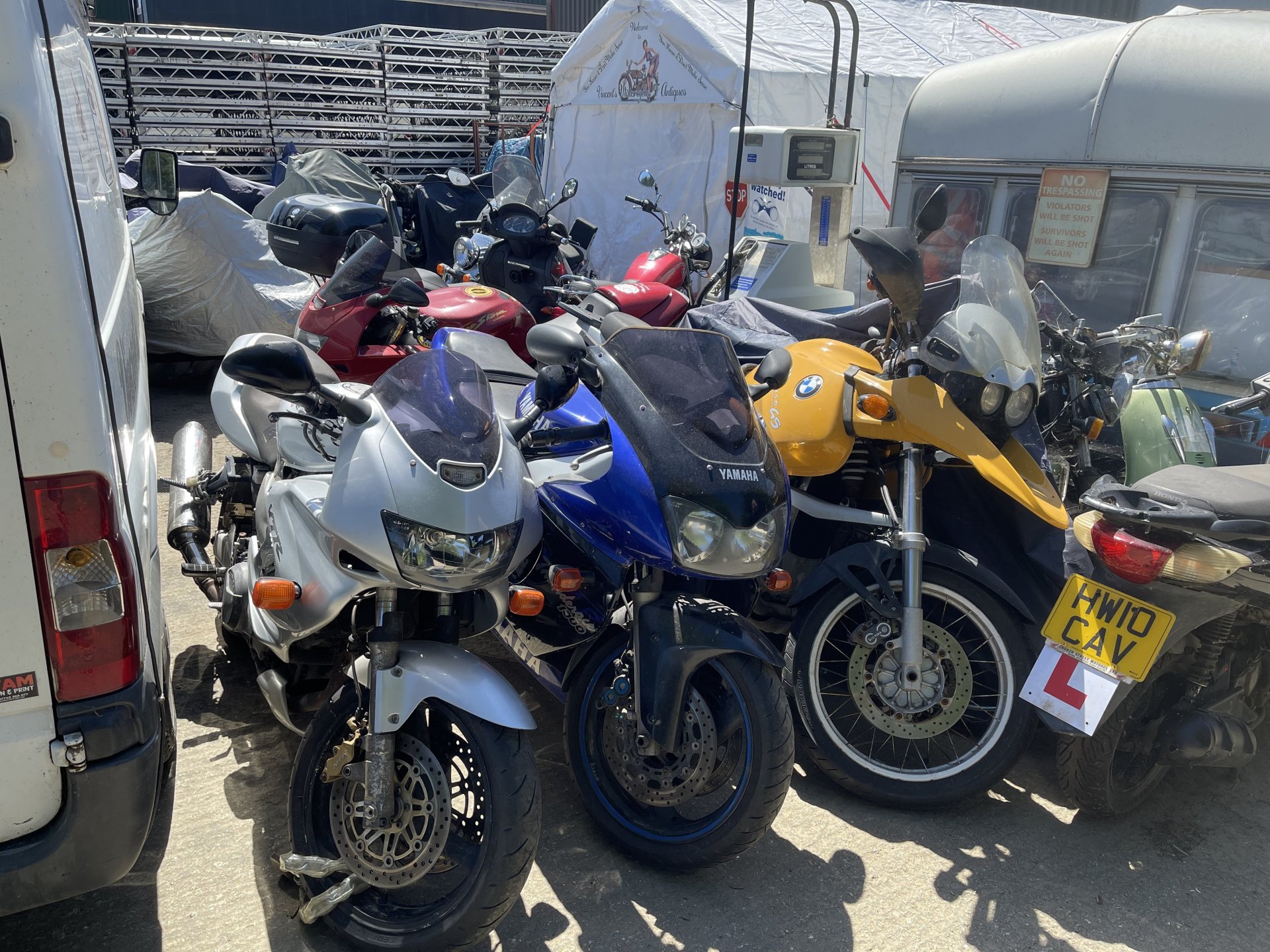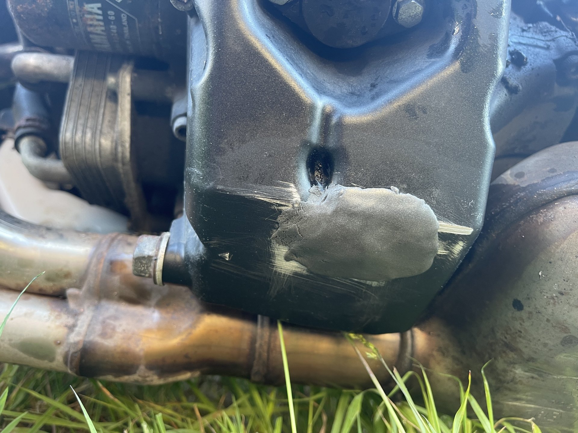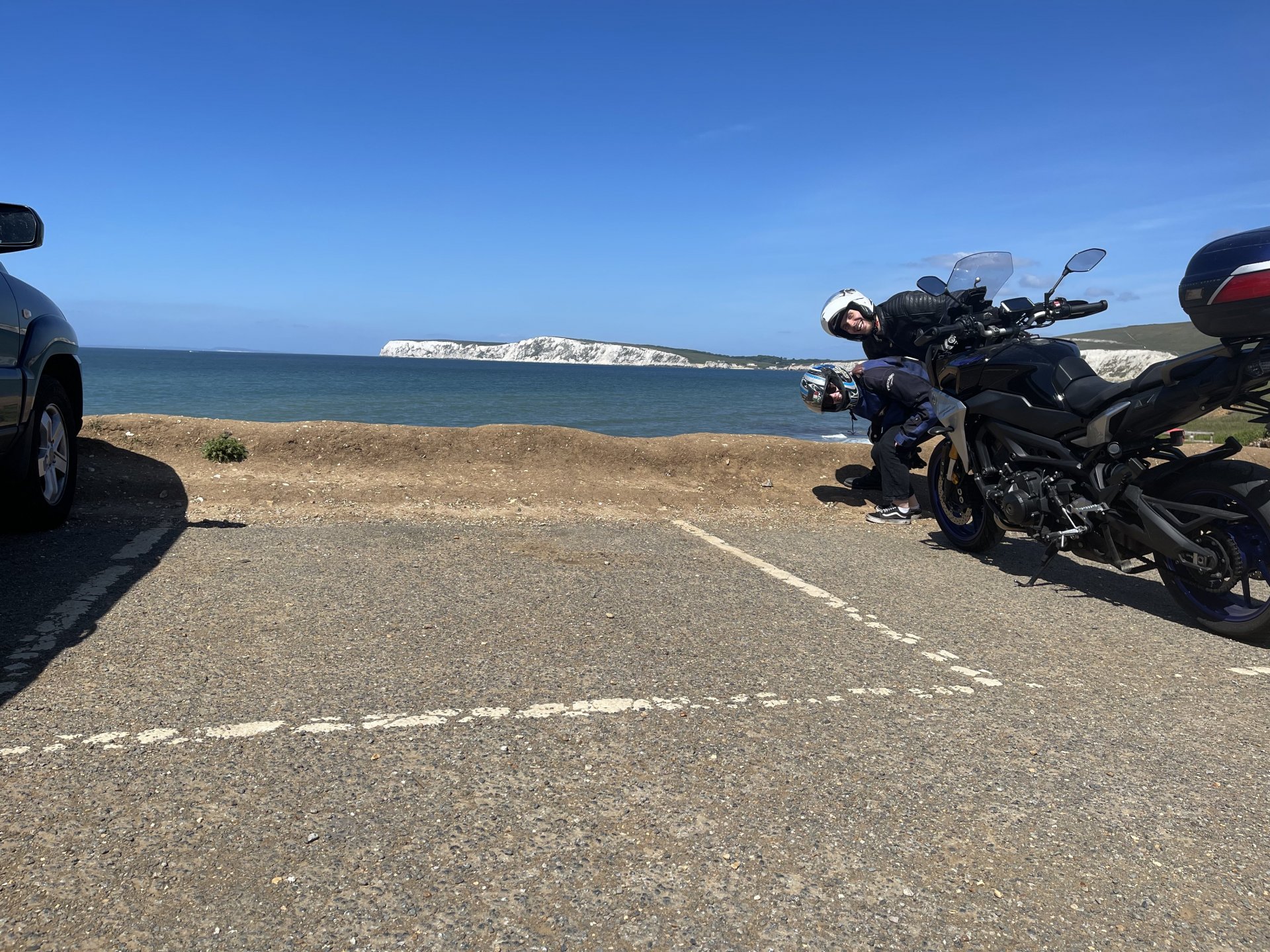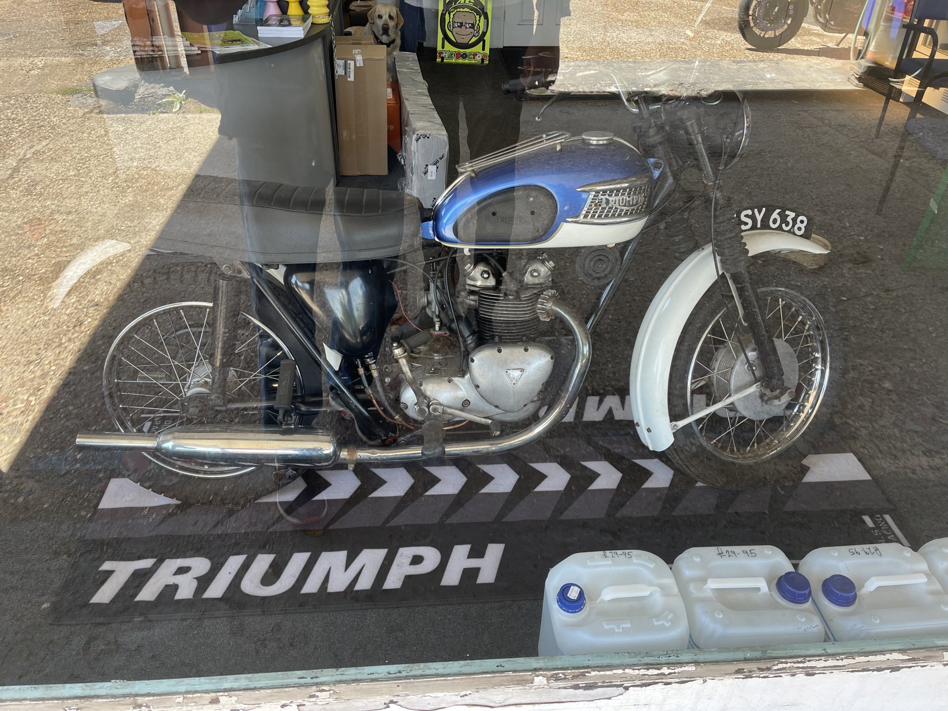 As you know I had a couple of days to go see the daughter. Best start with an apology as there's not much in the way of content, you know I don't stop unless I have to as it was a boring blat down to the ferry and back. But once or the other side I dumped the bike and gear and off to the pub we go. Samantha says Hi. As you can see lovely weather although the wind was a bit keen. These are from the south west coast. We travelled along part of the route which will be the IOW TT. Riders won't have time to enjoy the views though. Samantha and Matt said hi. Stop off for dinner in the hot sun and than onto Gods hill, doesn't get much more picturesque than this. Stopped for petrol where you have to tell the "attendant" how much you put In as there's no screen to tell her in the shop, but they did have this old gem in there. Sorry, could hardly see the window reflection on the phone. We then stopped off at the "shop" where Matt got his Bandit. He'd told me of this place before with bikes and part over 2 floors of this unit and he now spilling out into the surrounding area. As always with me the basted decides to have a holiday, back June the 3rd. Gutted. We had a quick stop at Robin Hill, where Matt works and then back to their house. Don't think I've mentioned that they live on a street which it more akin to something Bob and Fred would have fun on. I've been up and down it many times but this time I picked the wrong line and had Samantha on the back. I'd switched off the engine and we were rolling down to her house when we went over a large rock, this was the result. Basted rock Engine oil contents The fix was a trip the the local Halfords, fresh oil, some 80 grit, carb cleaner to get rid of the oil and some metal putty. This was the result that got me home, well happy. Got to decide on a new sump or get it off and weld. Bloody thing stunk of oil all the way home which kept me checking. Don't think I'll leave it as a repair but def got me out of trouble. It'll now be something I carry in the top box along with the tyre seal.1 point