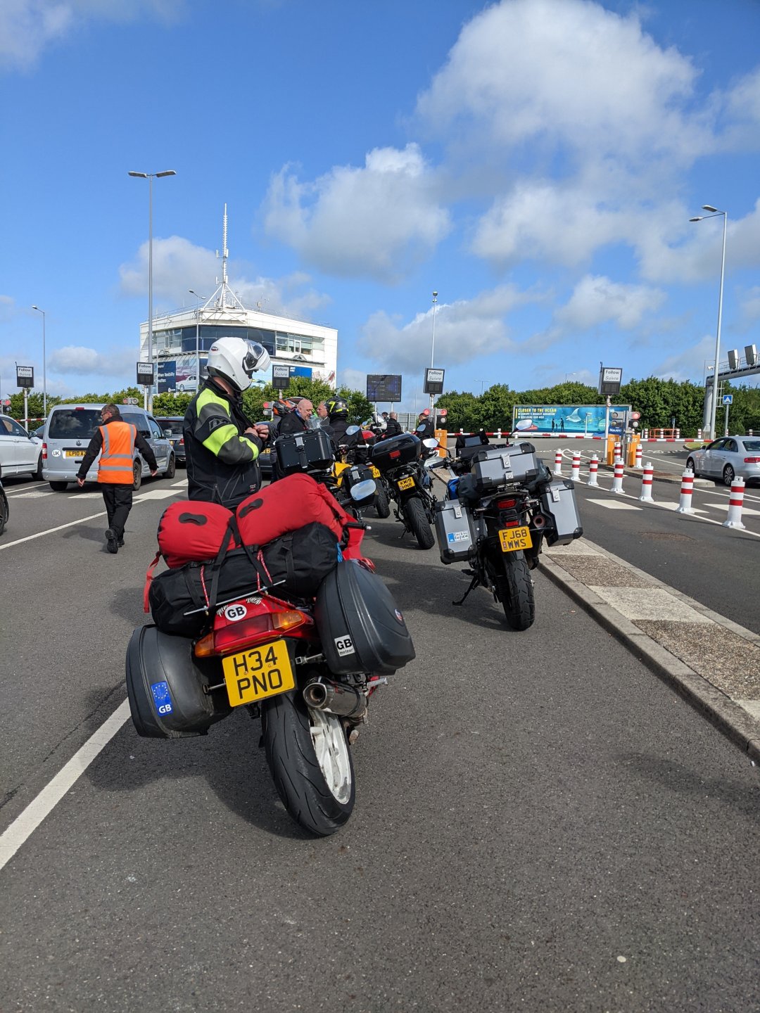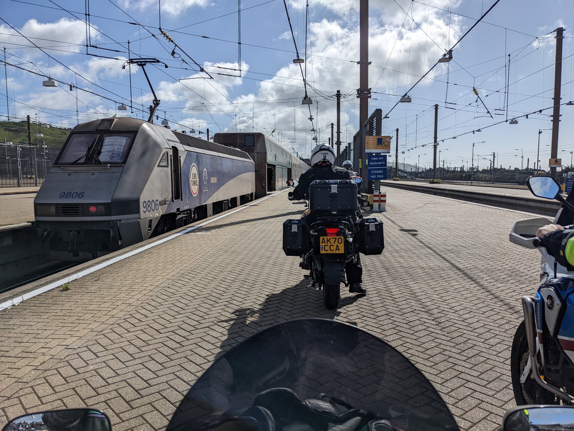 I'm being gentle. Right mare South of Luxembourg city. Hot and sweaty round and round, fan on, fan off, fan on.... Didn't get as far as planned but the digs are alright. Municipal camping in France somewhere near the Luxembourg and German border. I'm not sure it's France, it's somewhere over there. Gate shut but greeted by a gent wearing an apron and riding a 600 transalp. Camping un nui bitte. Tent erected afore dark. Sorted. No good pictures really, too much slogging to get through Belgium. As promised though, Folkestone slab. Busier than I remembered, a bit slower getting through all the checks and we were already late having had a big breakfast instead of being punctual.1 point