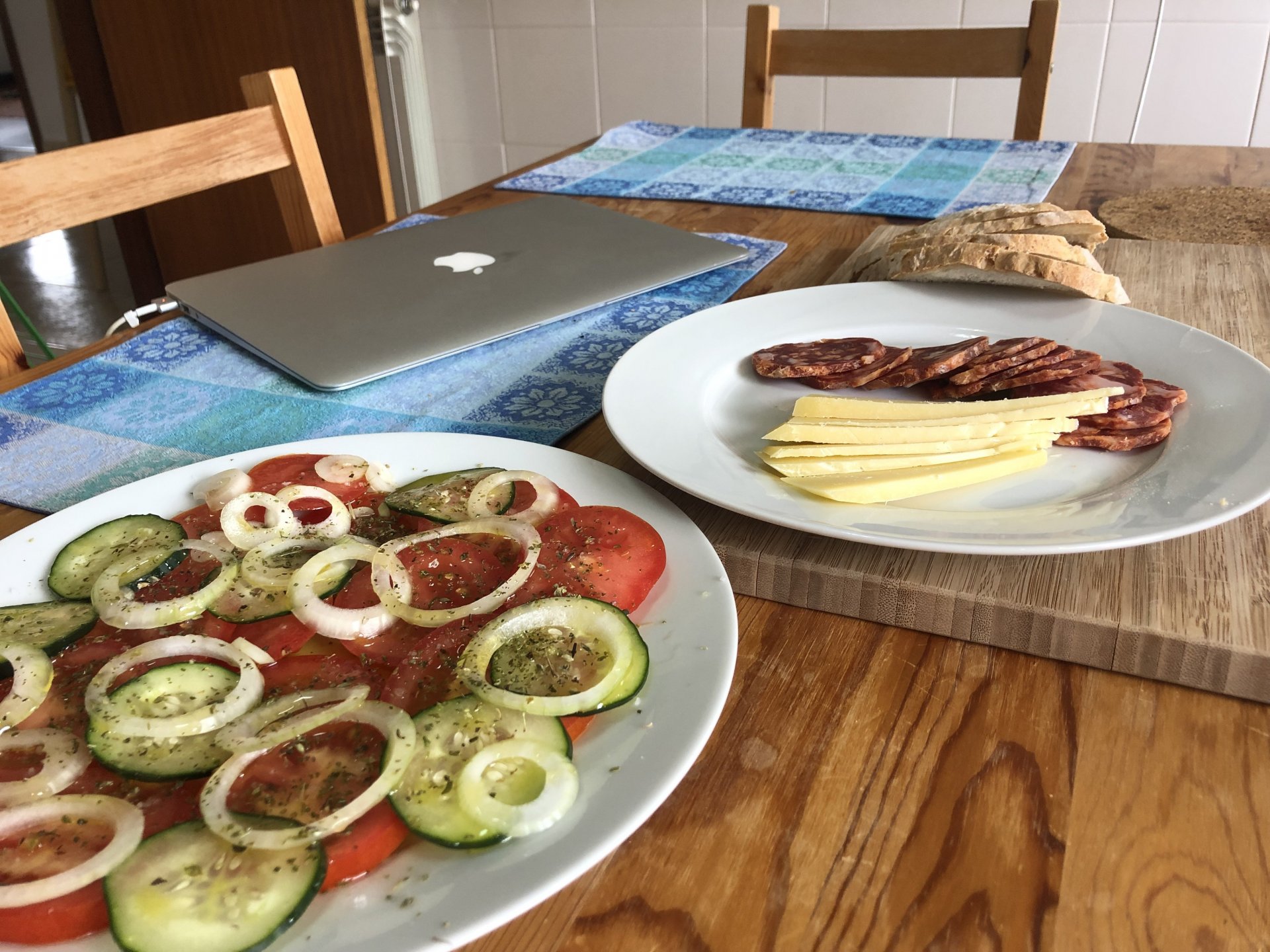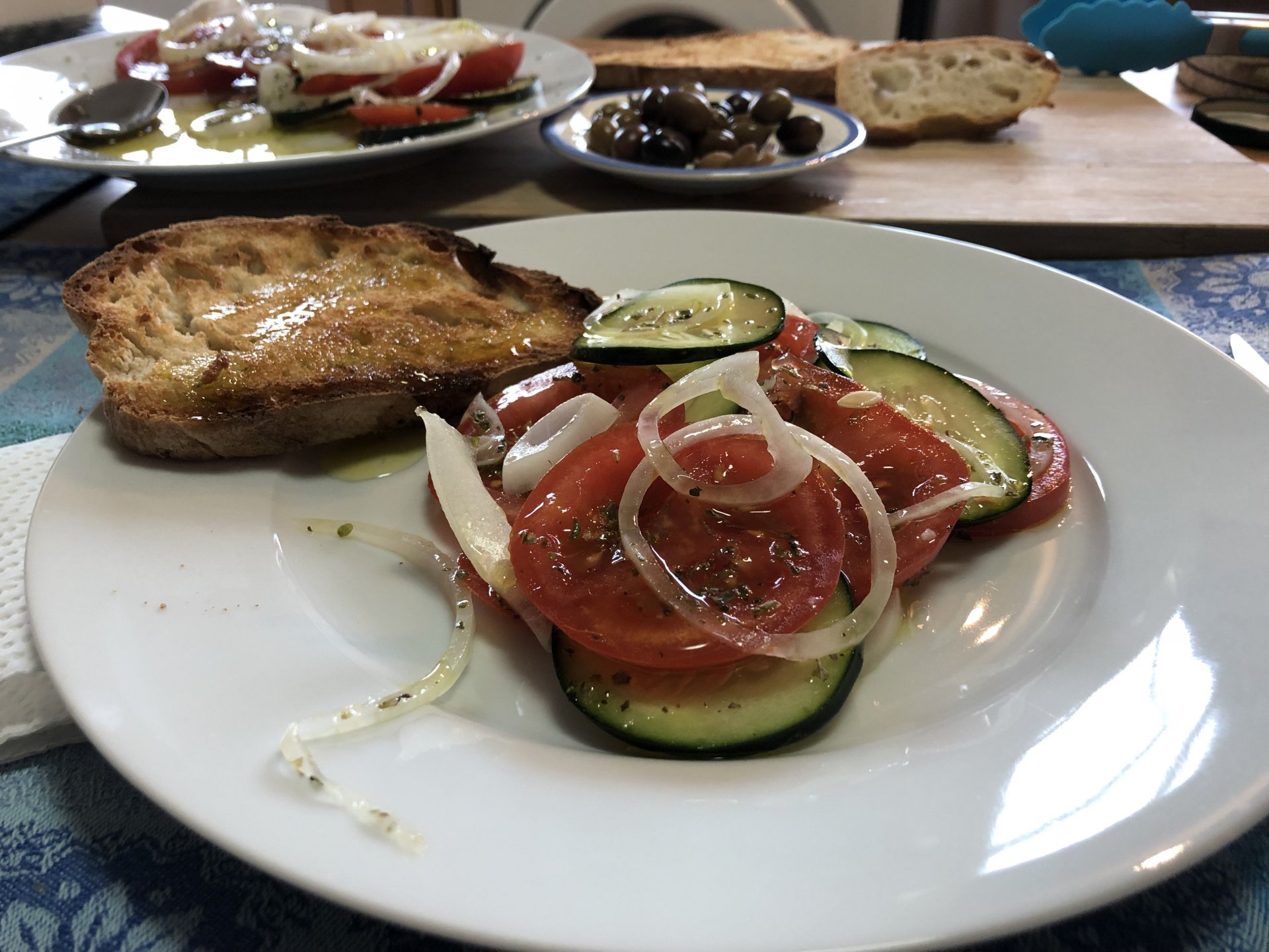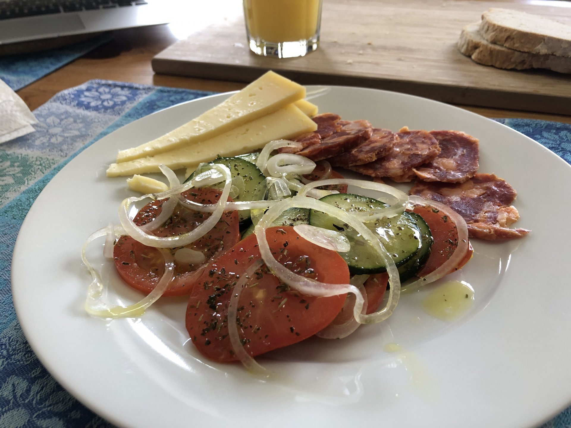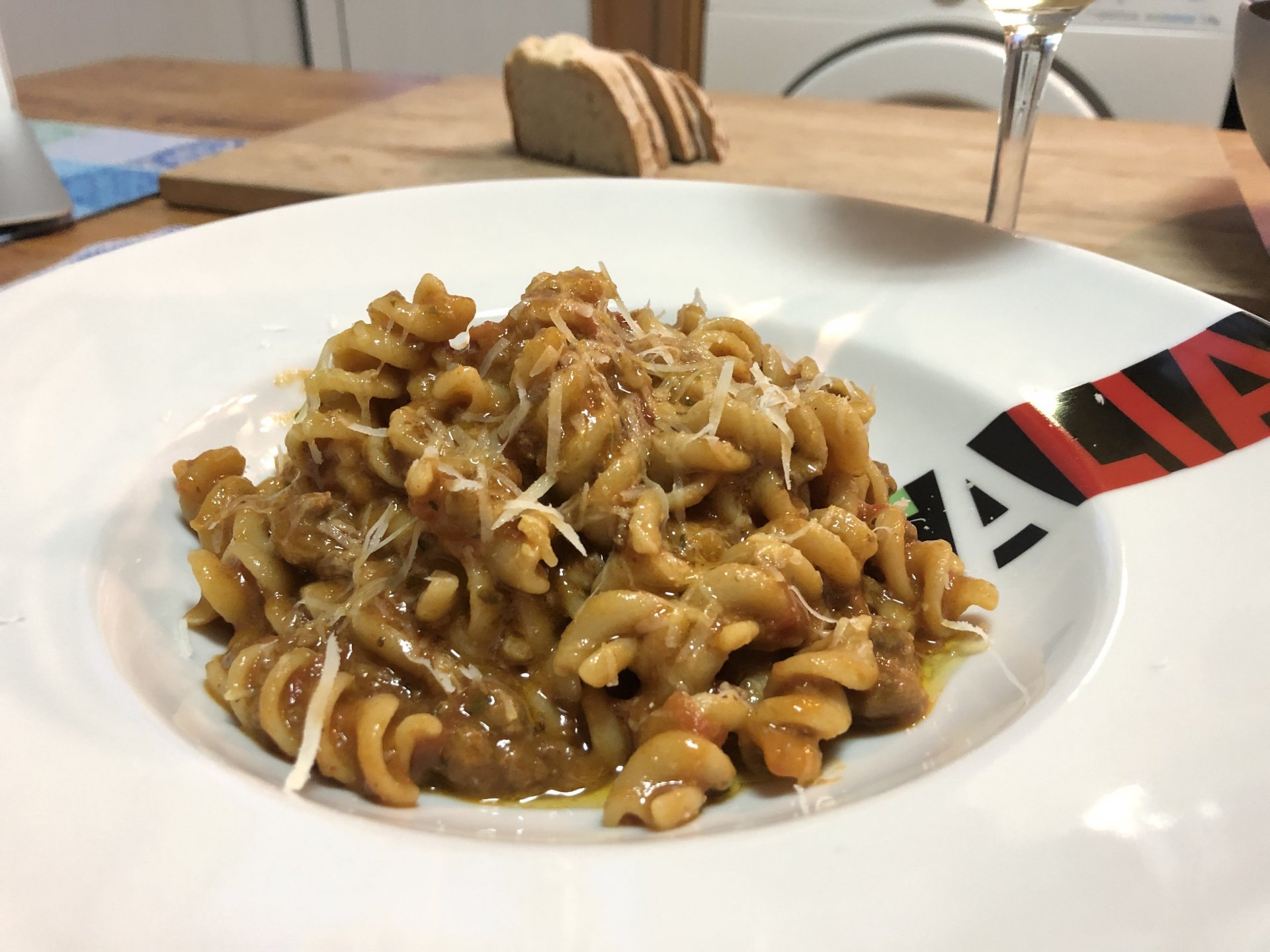 Broccoli with almost caramelized garlic, and free range eggs from down the street, great eggs: My version of what you call a plowman's lunch Some great olives, good tomatoes and amazing olive oil, and a southern portuguese salad turns into something great Sofia's lamb ragu, frozen and gifted to me. I used it on some fusilli instead of the pie it was meant to Simple and old school rustic, onion and tuna pasta, extra creamy from the jumping I'm perfecting with my italian pan1 point