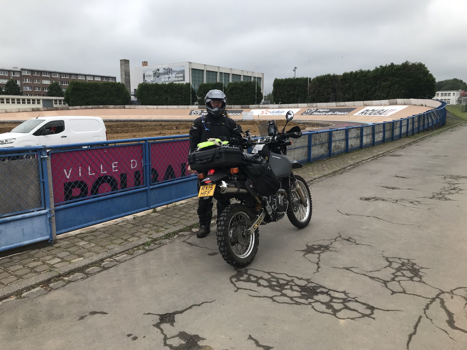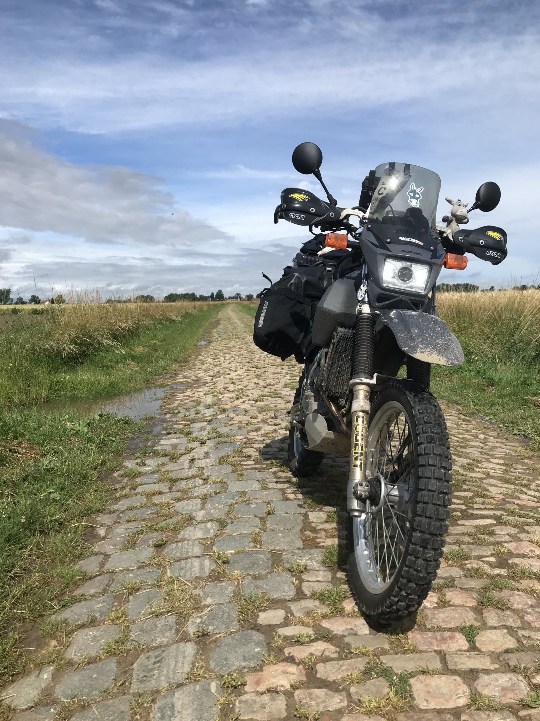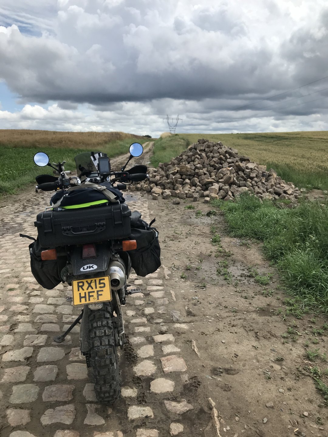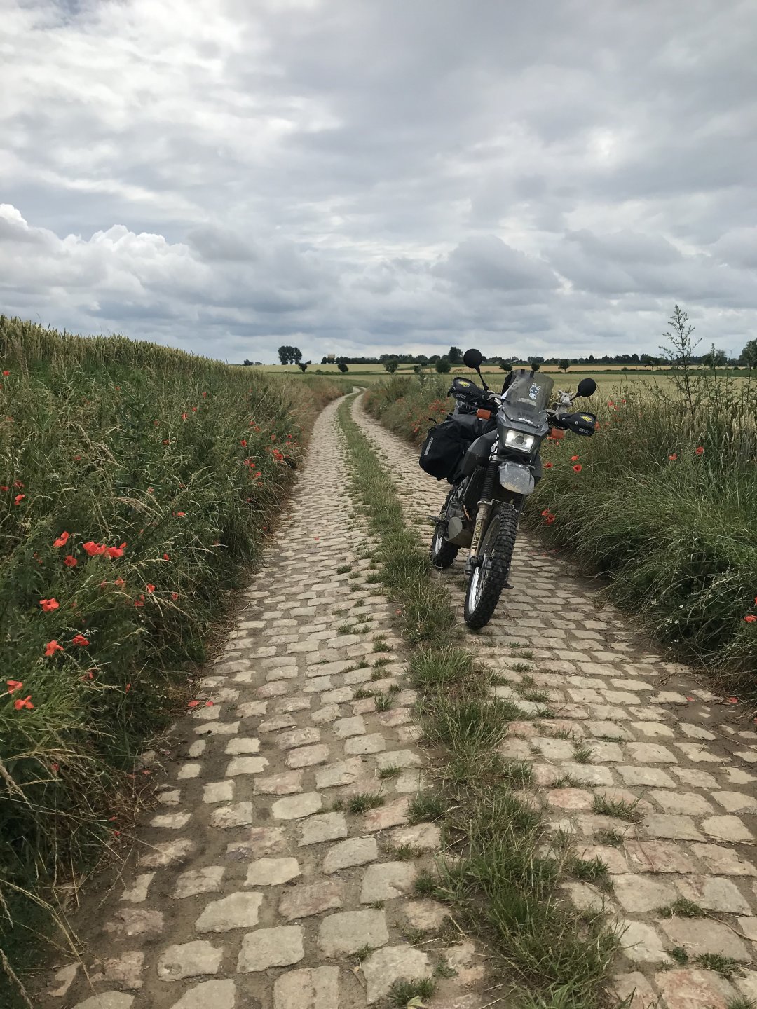So today was what you might call an adventure. I’ve been looking forward to riding the pave (cobbled) roads for three years now and they didn’t disappoint. The weather however was something else, when it rains in France it feckin rains, none of this namby pamby stuff. I’m sat in an Irish bar in Compiegne now having a couple of pints of Guinness1 point