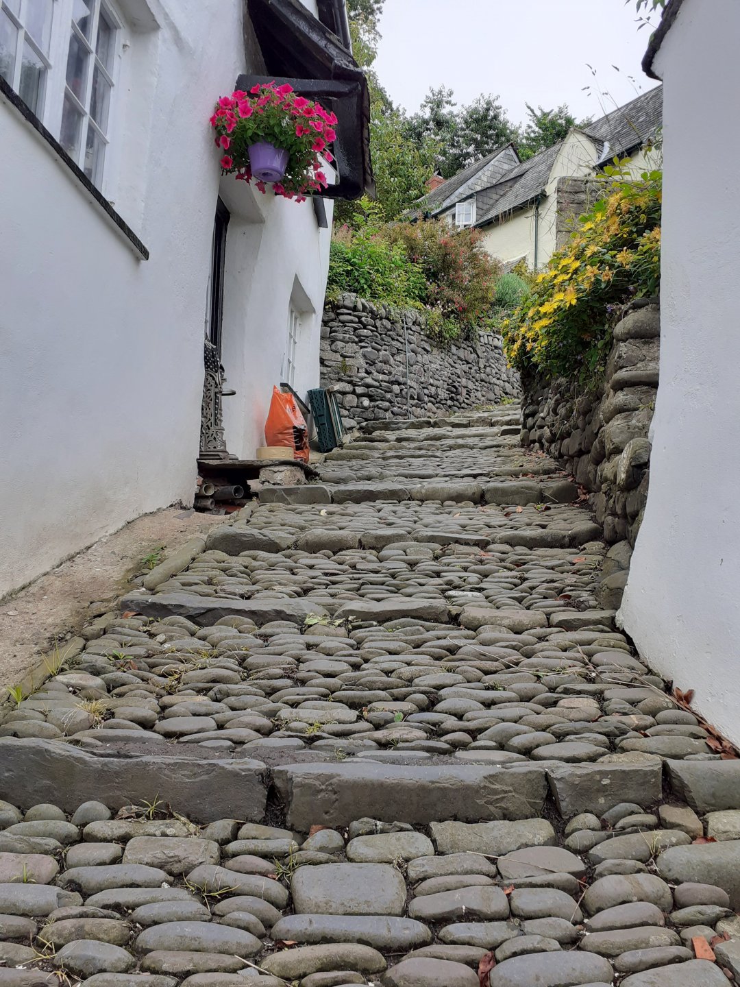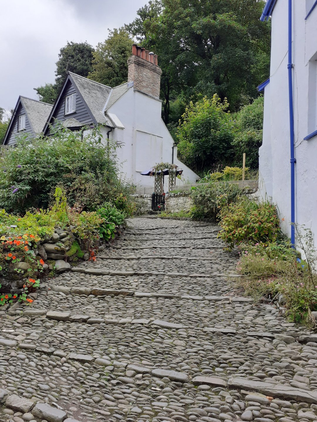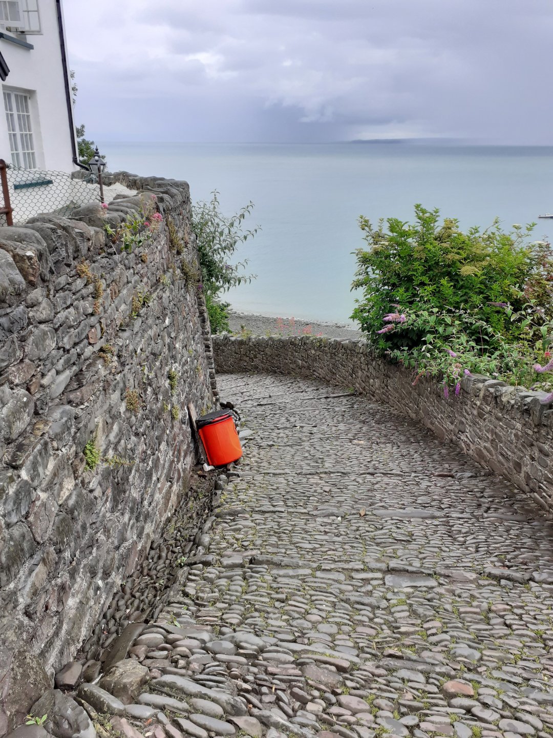 I asked about snow and ice and one of the people I spoke to said that as it is sheltered from behind and the sides and faces the sea it is very rare to get snow or ice even when surrounding areas do. It pissed down both before and whilst I was there so I walked very carefully on the cobbles, break a hip at my age and it's curtains. The water goes into the joints between the pebbles and so the tops dry quickly.3 points