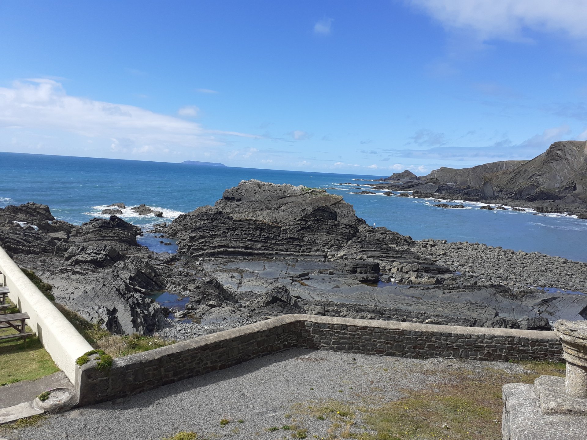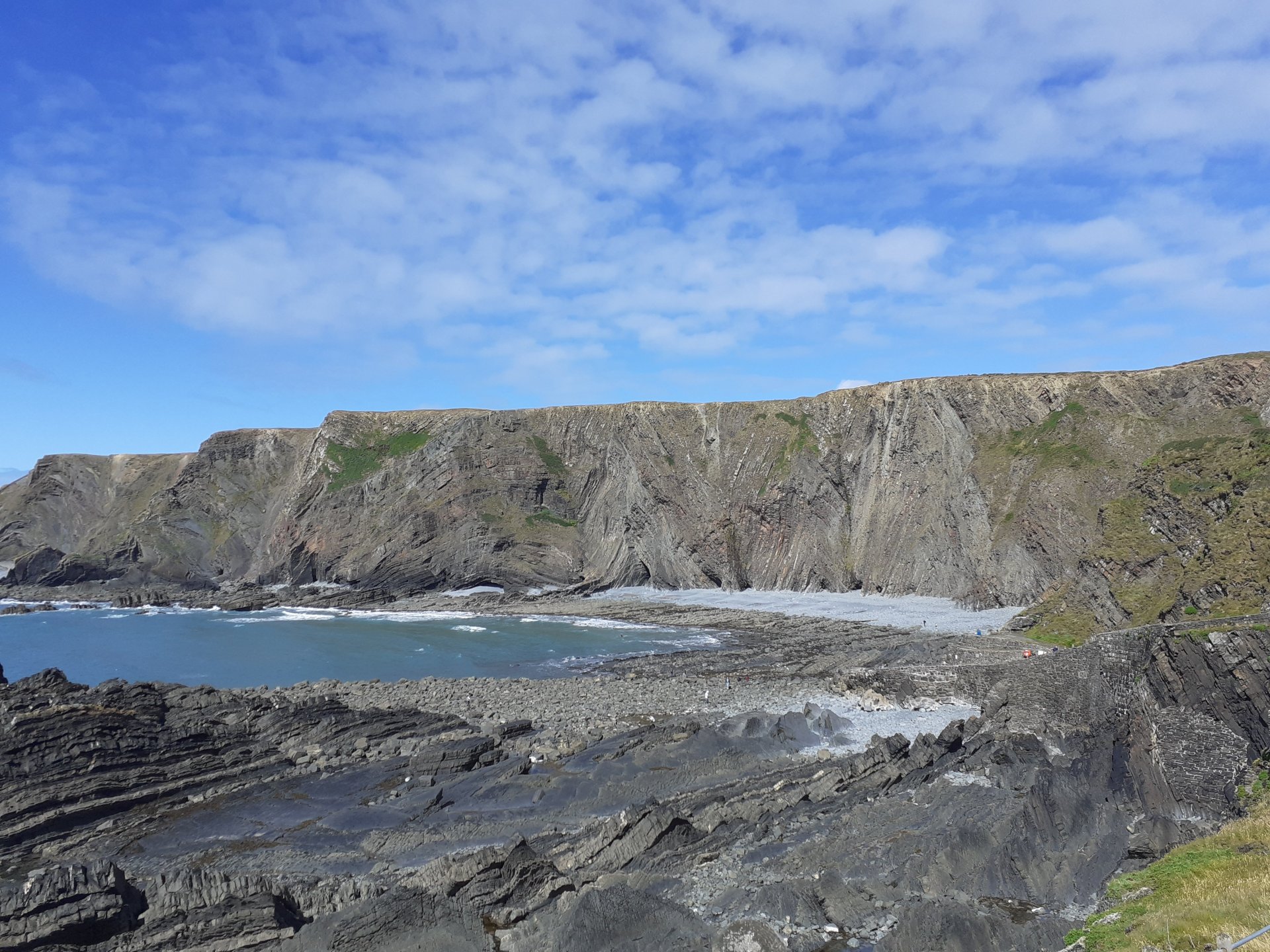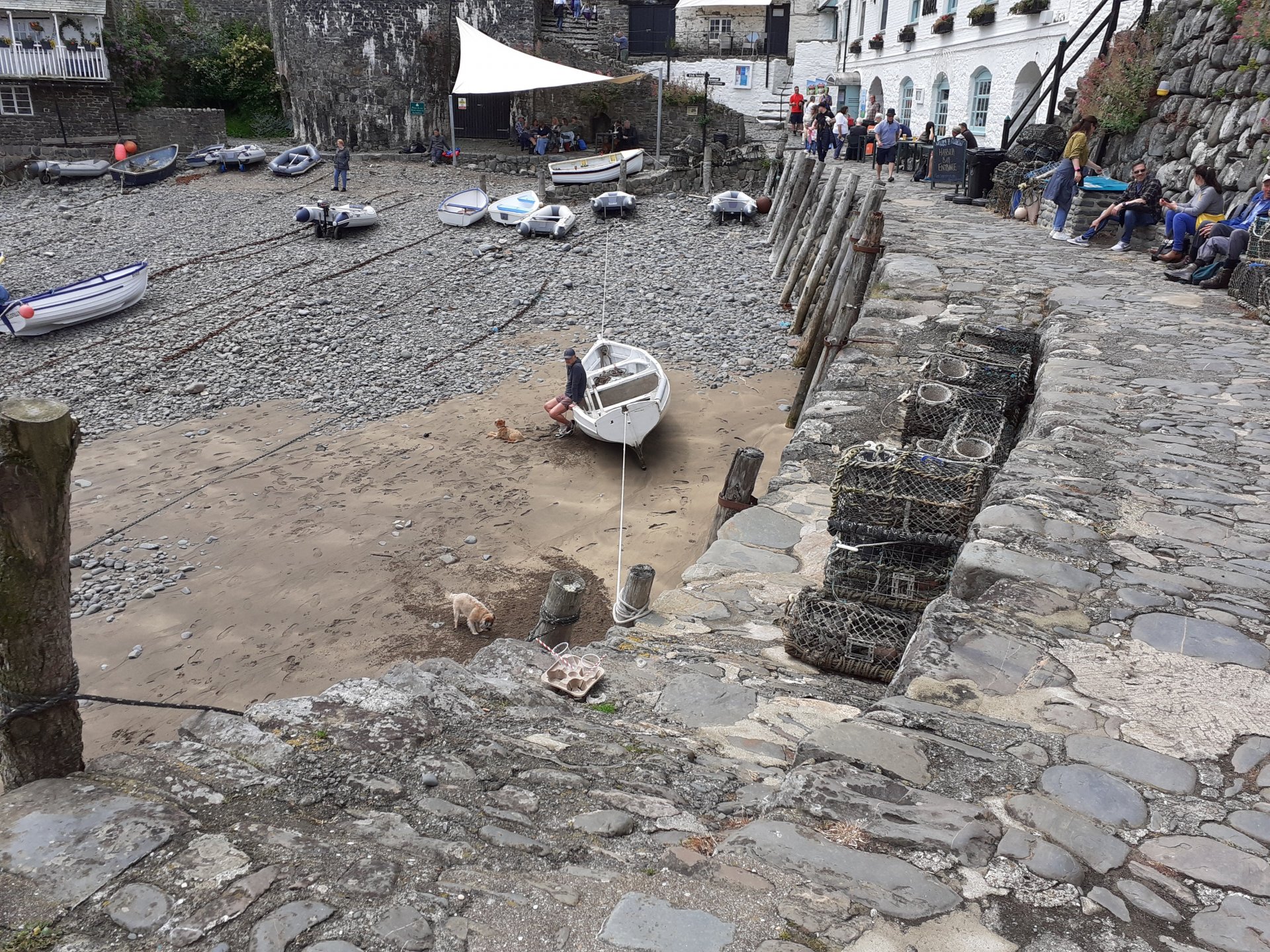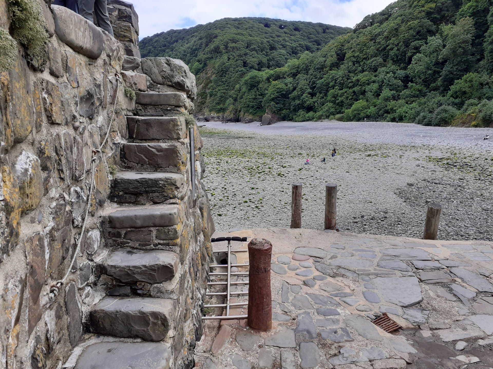 I asked about snow and ice and one of the people I spoke to said that as it is sheltered from behind and the sides and faces the sea it is very rare to get snow or ice even when surrounding areas do. It pissed down both before and whilst I was there so I walked very carefully on the cobbles, break a hip at my age and it's curtains. The water goes into the joints between the pebbles and so the tops dry quickly.3 points