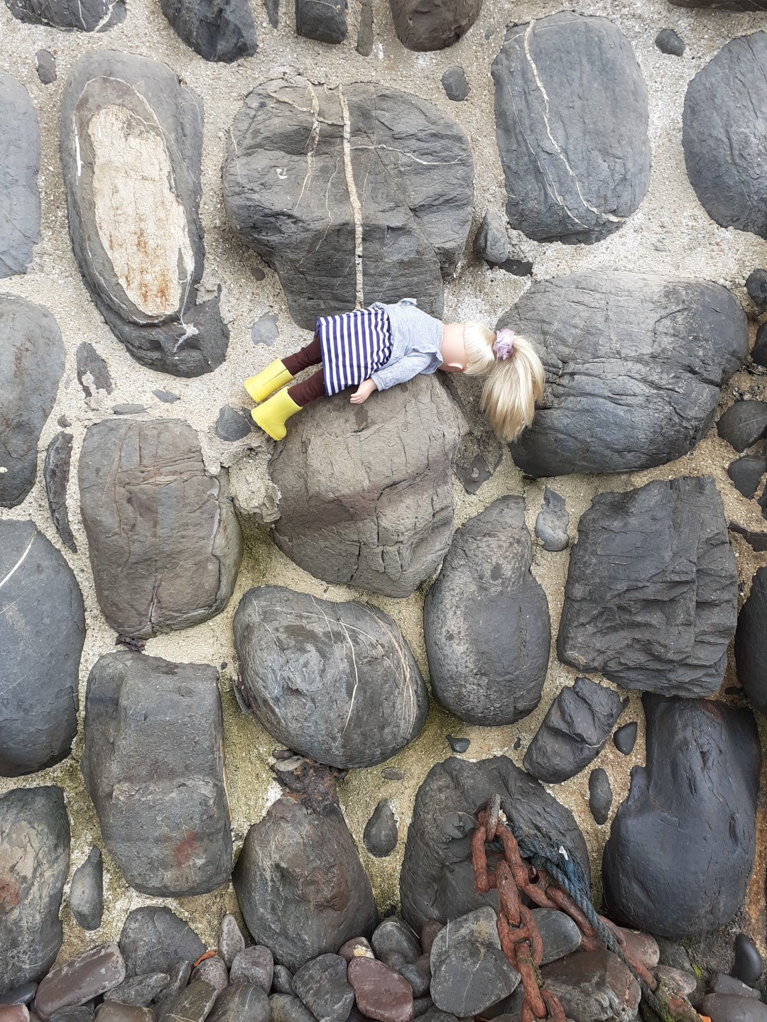 Those are my grand daughters. Known to me inside my head as GD1 and GD2 because their real names are too embarrassing. When GD1 ran ahead near the edge of the harbour I hesitated before calling out her name aloud.4 points