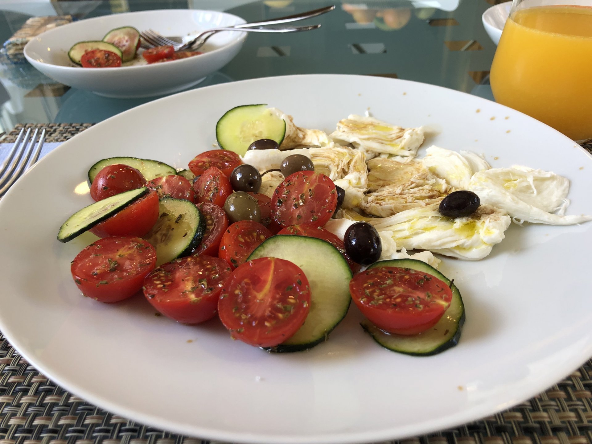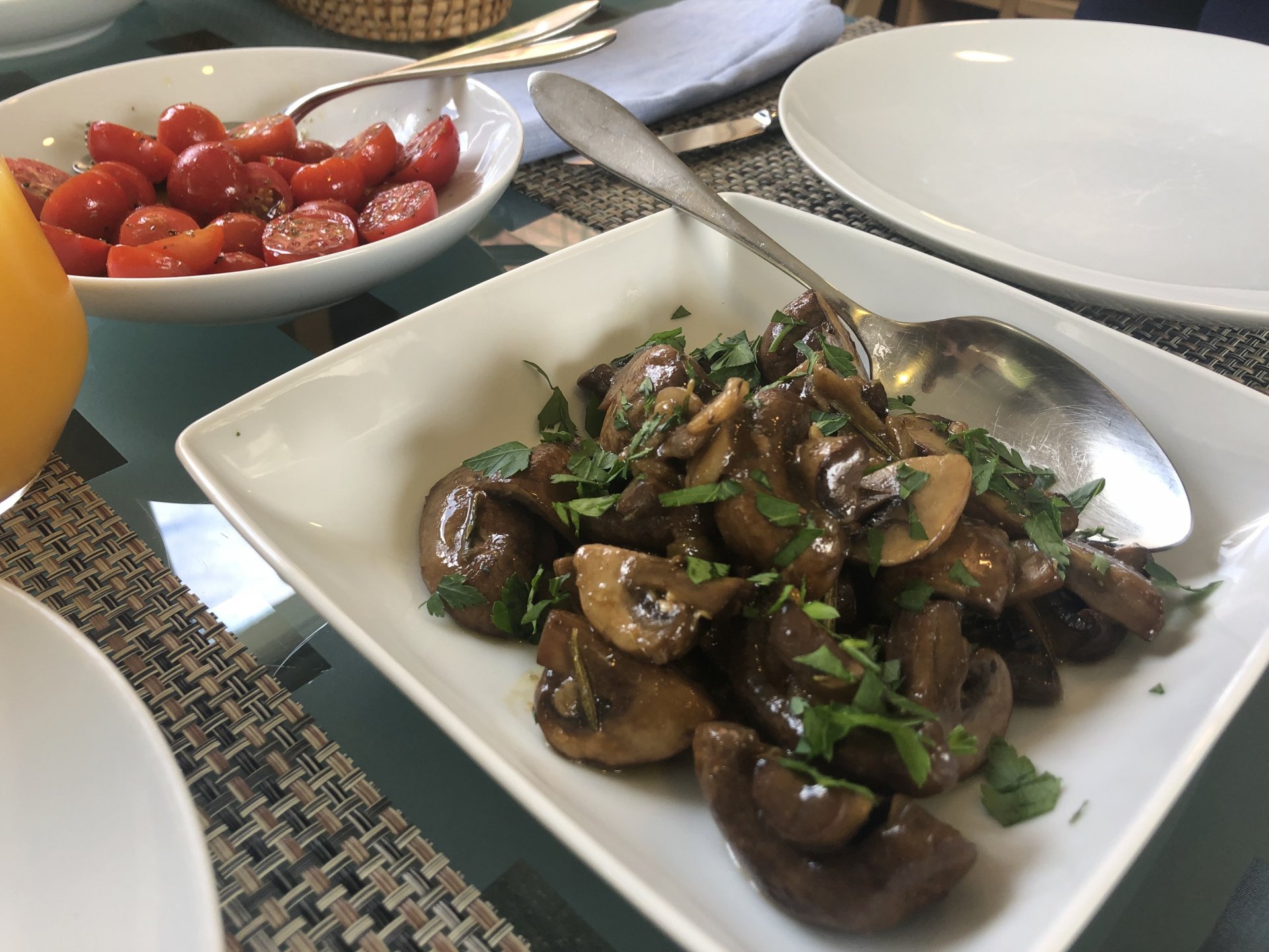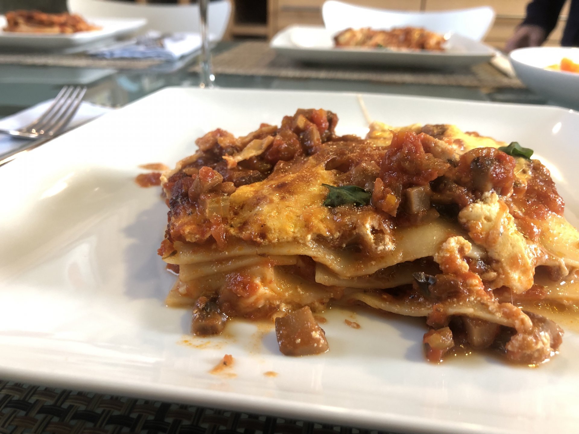 Simple brown mushrooms, sautéed on rosemary and lots of garlic and olive oil, served with parsley. Summery fresh salad of cucumber and cherry tomatoes with mozzarella, love it Leftover white rice turned a lunch with some onions, tomatoes, parsley and Worcestershire (thank you spellcheck!) sauce to the rescue An amazing fusilli pesto, simple and delicious Courguette tagliatelle Lovely cherry tomato salad with nothing else except salt, oregano and olive oil, plus a great mix of canned horse mackerel fillets with raw onions, lemon zest, black pepper and parsley. Summertime lunch Portobello mushroom based vegetarian lasagna, ricotta, mozzarella and parmesan sauce instead of béchamel. Used a proper pasta for this and it turned out great, quite happy and worthy of the effort2 points