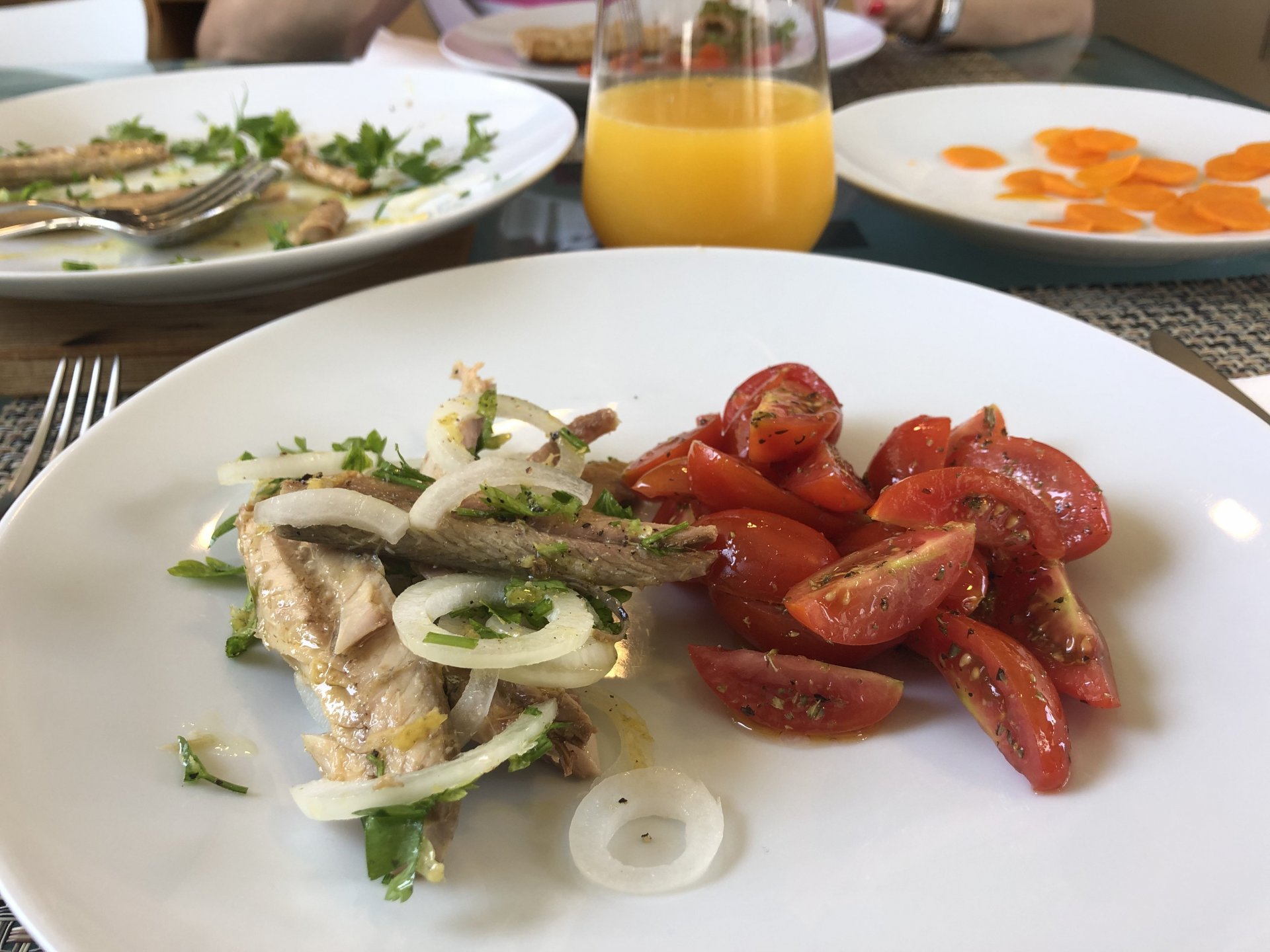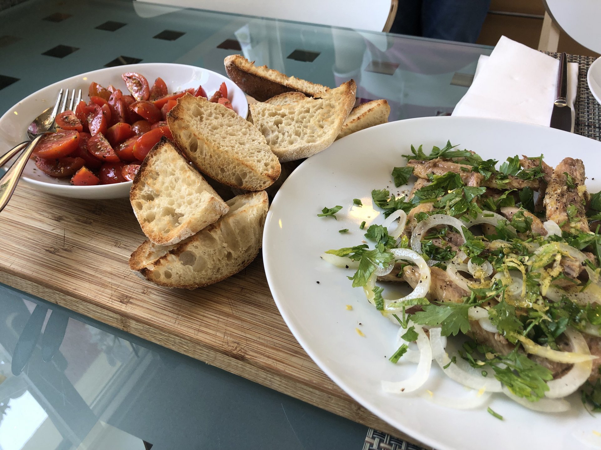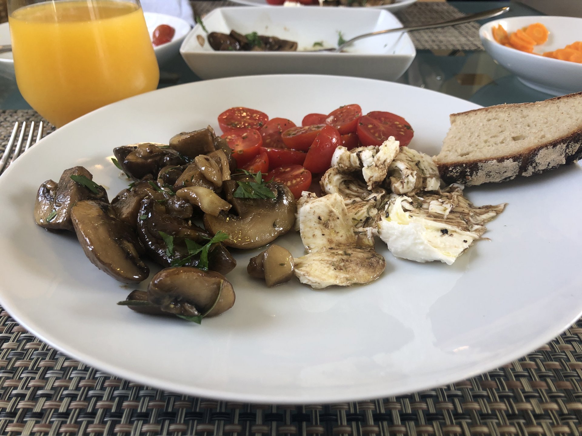 Simple brown mushrooms, sautéed on rosemary and lots of garlic and olive oil, served with parsley. Summery fresh salad of cucumber and cherry tomatoes with mozzarella, love it Leftover white rice turned a lunch with some onions, tomatoes, parsley and Worcestershire (thank you spellcheck!) sauce to the rescue An amazing fusilli pesto, simple and delicious Courguette tagliatelle Lovely cherry tomato salad with nothing else except salt, oregano and olive oil, plus a great mix of canned horse mackerel fillets with raw onions, lemon zest, black pepper and parsley. Summertime lunch Portobello mushroom based vegetarian lasagna, ricotta, mozzarella and parmesan sauce instead of béchamel. Used a proper pasta for this and it turned out great, quite happy and worthy of the effort2 points
