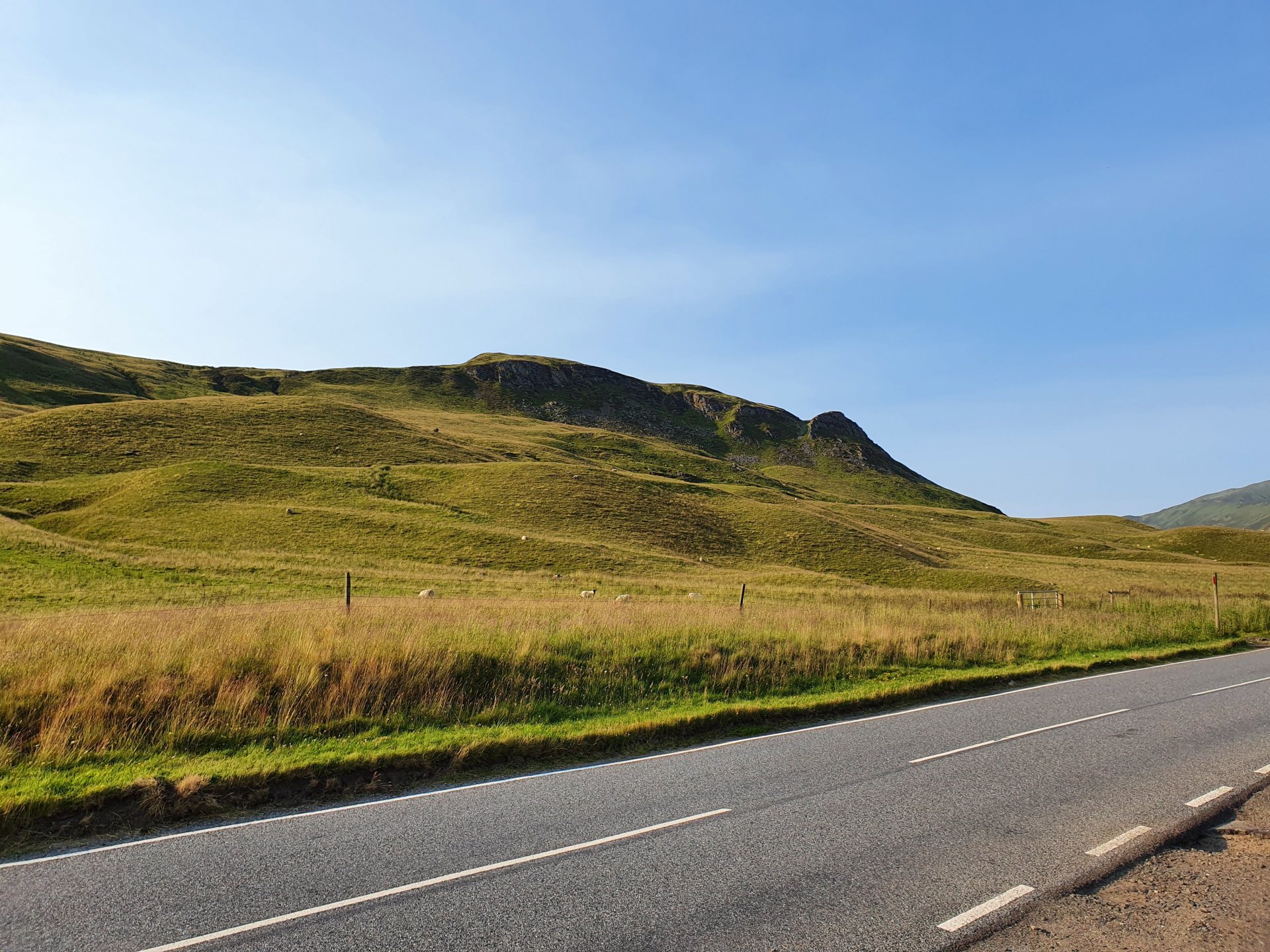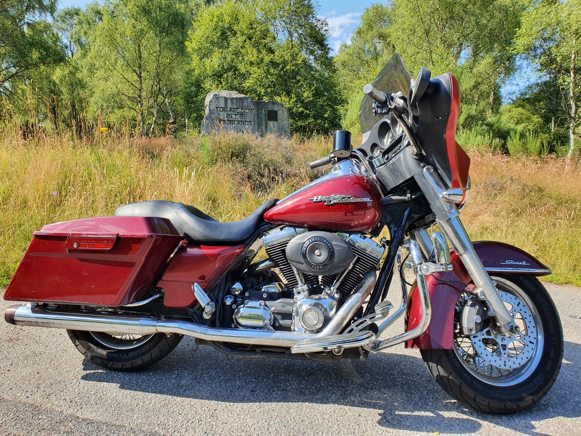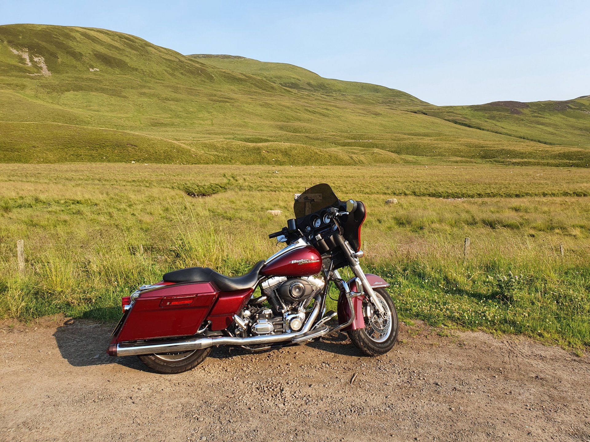 Off I went in the searing heat for run north in search of cooler climes, I headed over the Forth road bridge into the Kingdom of Fife and onto Perth and across to Dundee and headed towards Aberdeen before cutting across to Montrose and picking up the coast road North, my first stop was at Dunnottar Castle after 122 miles of riding, just south of Stonehaven, they do a good Aberdeen Angus burger and chips here for a reasonable £7 so it was my planned lunch stop. They also have dedicated motorcycle parking. I was going to head up to the monument and sacrifice a sheep but it is Aberdeenshire so non of the sheep are virgins and I had more places to see. I then headed North then west towards the Cairngorms and the National Park. Continuing my journey I stopped off at Balmoral for a break and a cigar, the estate was closed as it was after 5pm so I gave that a miss. While I was there another Harley turned up, a Sportster 883 ridden by a female naturally, all the way from Lincolnshire. I then headed off to make my way home past various villages and mountains and even ski lifts and through the most dramatic countryside you could imagine. I even found a special “friend” for Pete. By the time I got home I had covered 294 miles. The refurbished shocks performed very well and I played around with the air pressure, running them a lot lower than previously and will reduce them a little more on the next ride.7 points