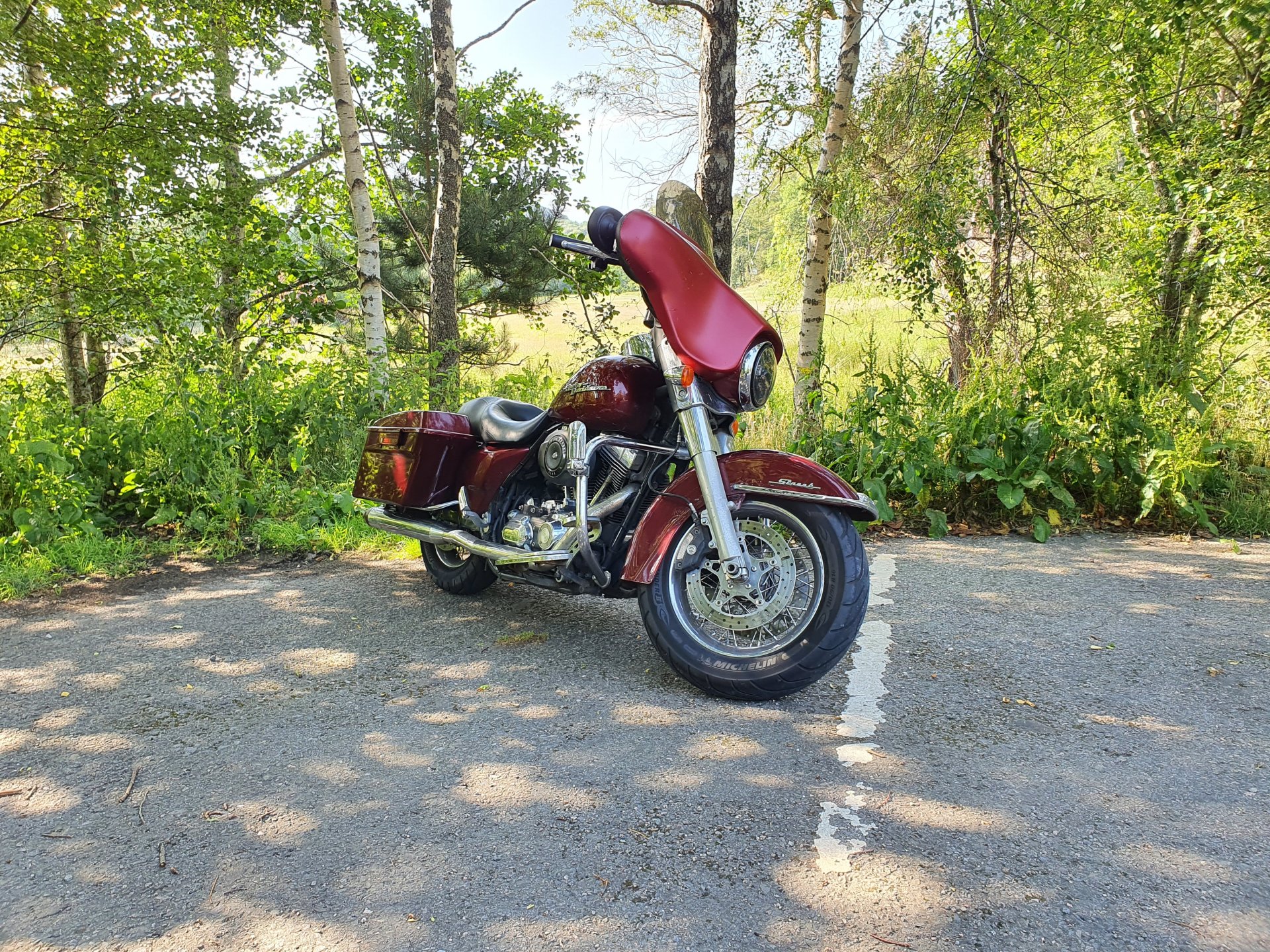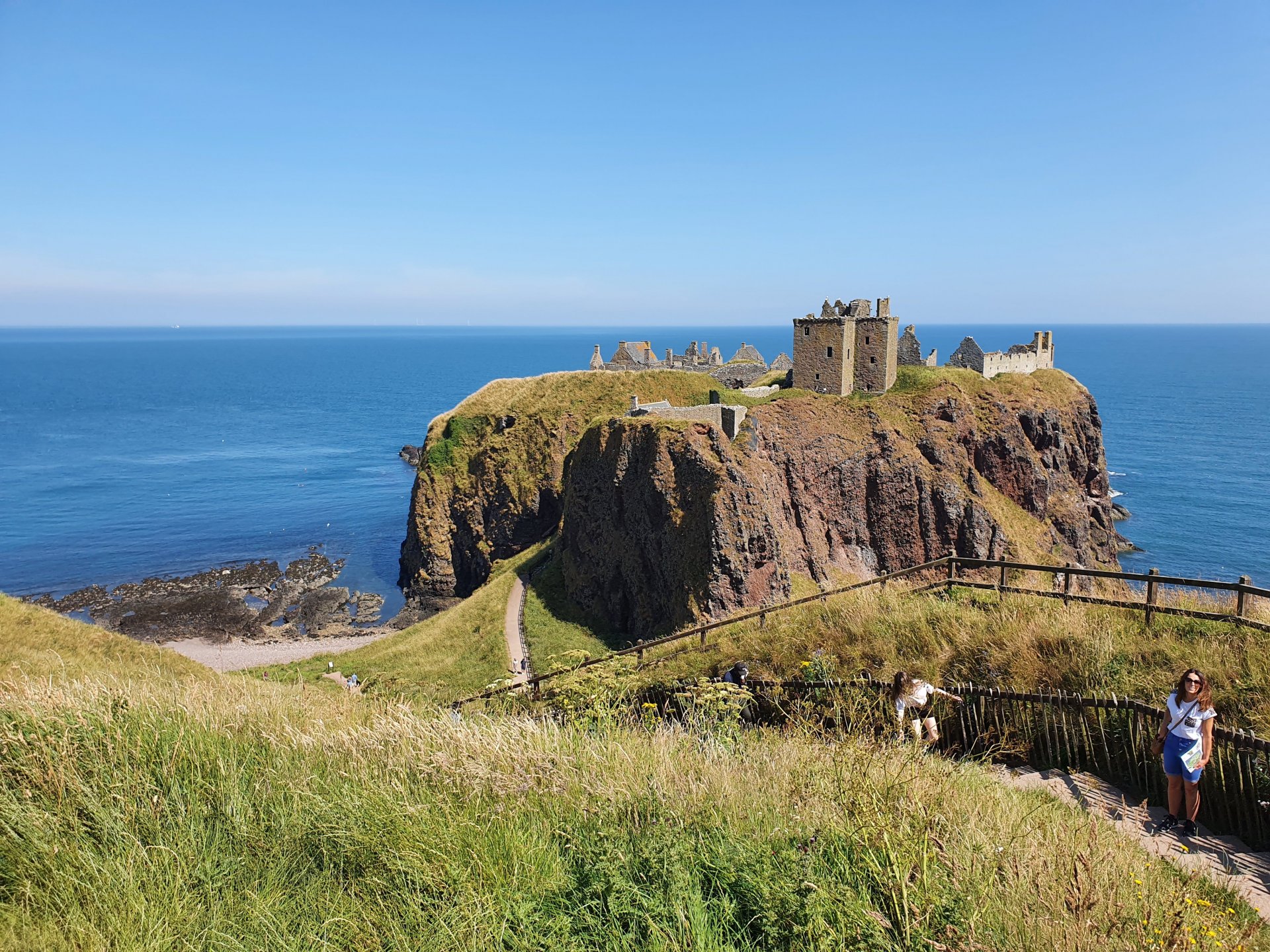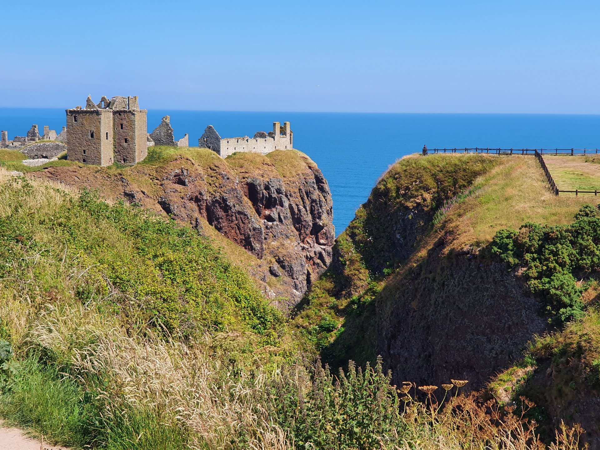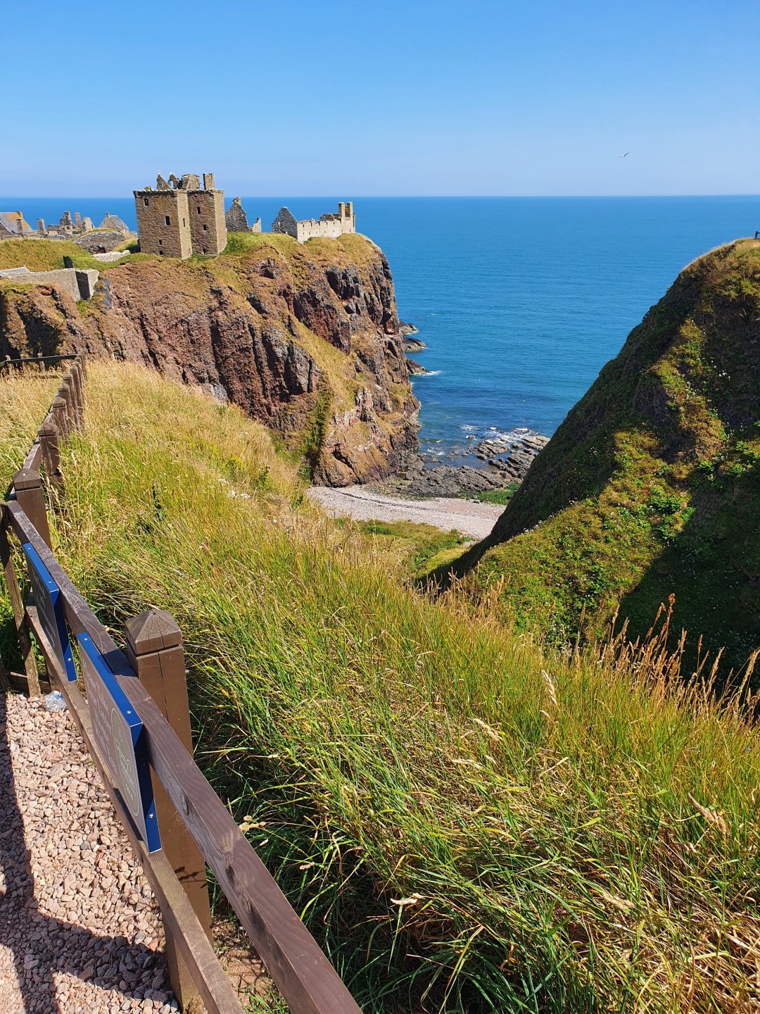Off I went in the searing heat for run north in search of cooler climes, I headed over the Forth road bridge into the Kingdom of Fife and onto Perth and across to Dundee and headed towards Aberdeen before cutting across to Montrose and picking up the coast road North, my first stop was at Dunnottar Castle after 122 miles of riding, just south of Stonehaven, they do a good Aberdeen Angus burger and chips here for a reasonable £7 so it was my planned lunch stop. They also have dedicated motorcycle parking. I was going to head up to the monument and sacrifice a sheep but it is Aberdeenshire so non of the sheep are virgins and I had more places to see. I then headed North then west towards the Cairngorms and the National Park. Continuing my journey I stopped off at Balmoral for a break and a cigar, the estate was closed as it was after 5pm so I gave that a miss. While I was there another Harley turned up, a Sportster 883 ridden by a female naturally, all the way from Lincolnshire. I then headed off to make my way home past various villages and mountains and even ski lifts and through the most dramatic countryside you could imagine. I even found a special “friend” for Pete. By the time I got home I had covered 294 miles. The refurbished shocks performed very well and I played around with the air pressure, running them a lot lower than previously and will reduce them a little more on the next ride.7 points