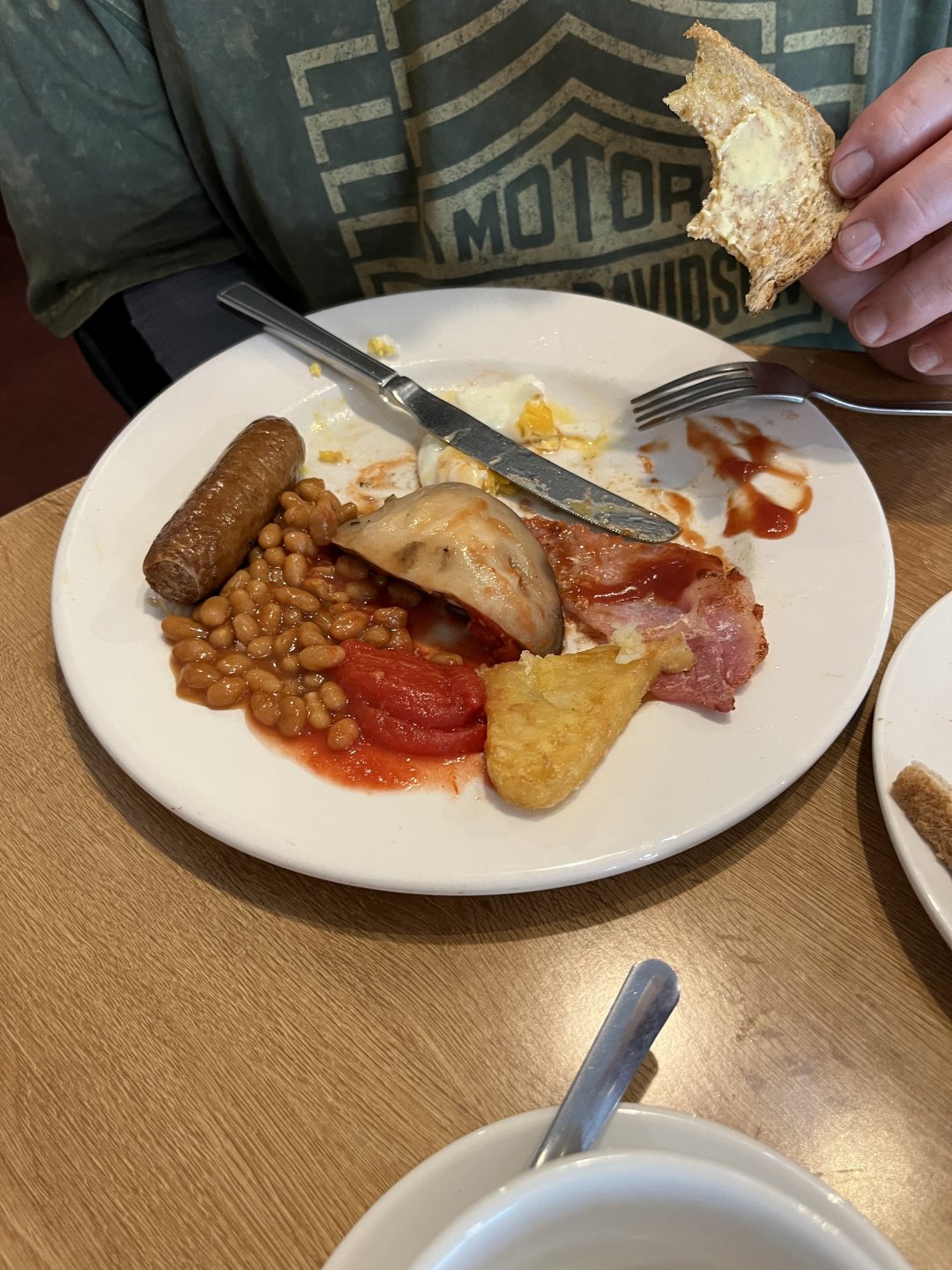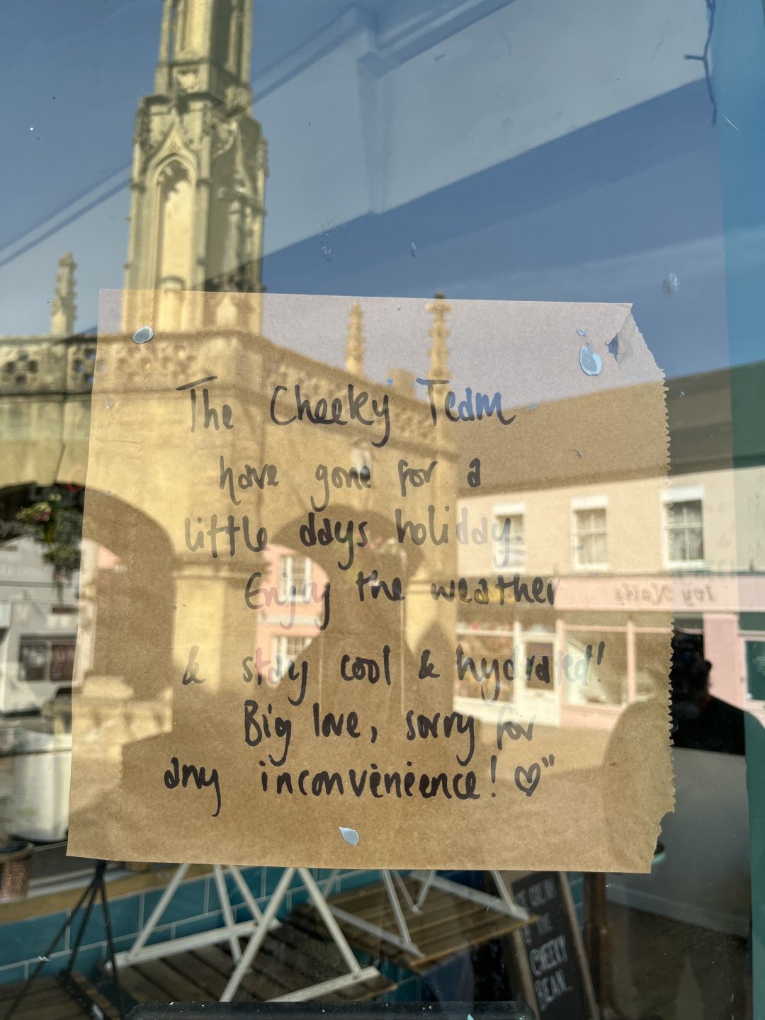 The Livewire was so much fun yesterday I woke up thinking about it and decided as Sunday is please yourself day -not that sort @Tym and it was early enough to be cool I decided to go over the Mendips and get some breakfast. Mr Slowly said he’d come with and picked his steed for the day, honestly in the sunshine there was only one choice. We stopped for fuel, well Mr Slowly did. The Livewire powered up while we slept so I opened the garage door to a ready to roll bike. Here it is quietly fuelling itself up. I sat patiently at the petrol station while the pump had a malfunction and spewed petrol all over the low rider. There was a convivial air about and another biker complained he’d misjudged his photo bomb timing, could he have another go? A group of hardy Kutte wearing mean faced men arrived but couldn’t have been nicer as I dashed through their entrance to get to the blue roll, didnt try to take their pic Im not that stupid BTW I love those blue Spada gloves on the pillion seat of the Livewire but they wont stop shedding dye, I have Smurf hands every time I wear them We head across the Mendips, its a beautiful temperature across there, definitely the place to go when its hot. Mr Slowly said I wont be able to keep up with you on that, I say cors you will (the low rider is 1800cc) but he was right, the instant power delivery on the Livewire and throwability is something else. Fortunately our current escapades have arrived us in a comfortable riding together style- set the destination and ride how you feel, so you wanna go for it then do it, see you there! I arrive and attempt a selfie of me being happy with my new steed, I may enter it into the ‘crap bike shot of the year’ competition, though Bucksters wheelie bin fetish will probably outdo me A man in a posh Range Rover gave me his day parking ticket (result cos bikes can only park in the designated bike bay and thats not in the shade) and so I wait a bit, then a bit more and a bit more, then I start worrying. Just as I open the ‘stalk my family’ app (aka find my friends- Ive opened this app twice in my life) I hear the satisfying rumble of a Harley pulling in. We head to a cafe in Shepton Mallet called the Cheeky Bean cafe but Shepton Mallet isnt interested in being open, the whole place seems shut. This charming well reviewed cafe has decided they dont want to work today either. “a little days holiday” hmph! The Market Cross in the centre of Shepton Mallet I find somewhere open.. barely, it opened yesterday and despite being the only customers they’re not ready for customers. Ok breakfast, not great but they all looked pretty hungover so have to cut them some slack Shepton Mallet is an ancient place and as with the architecture theres an air about the people that are from another era. Theres no reason for anyone to move there and you get the feeling like you do in some West Country places they’re a different breed. For you South West riders- saw this on a boarded up shop, might be worth a look. Breakfast done, temperature rising, time to head home.. except I remember @bobonelegs pics of the outside of Shepton Mallet Prison. Im definitely going to have a look before I leave…4 points