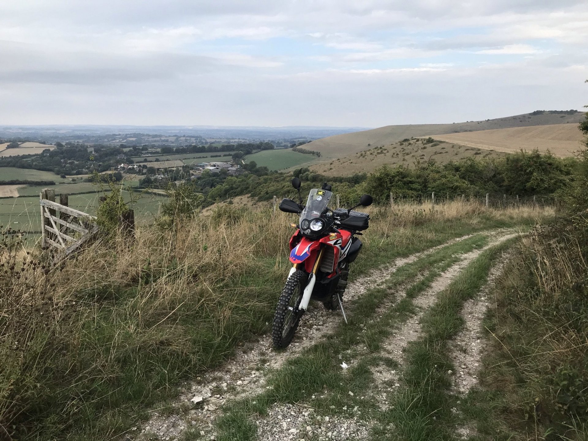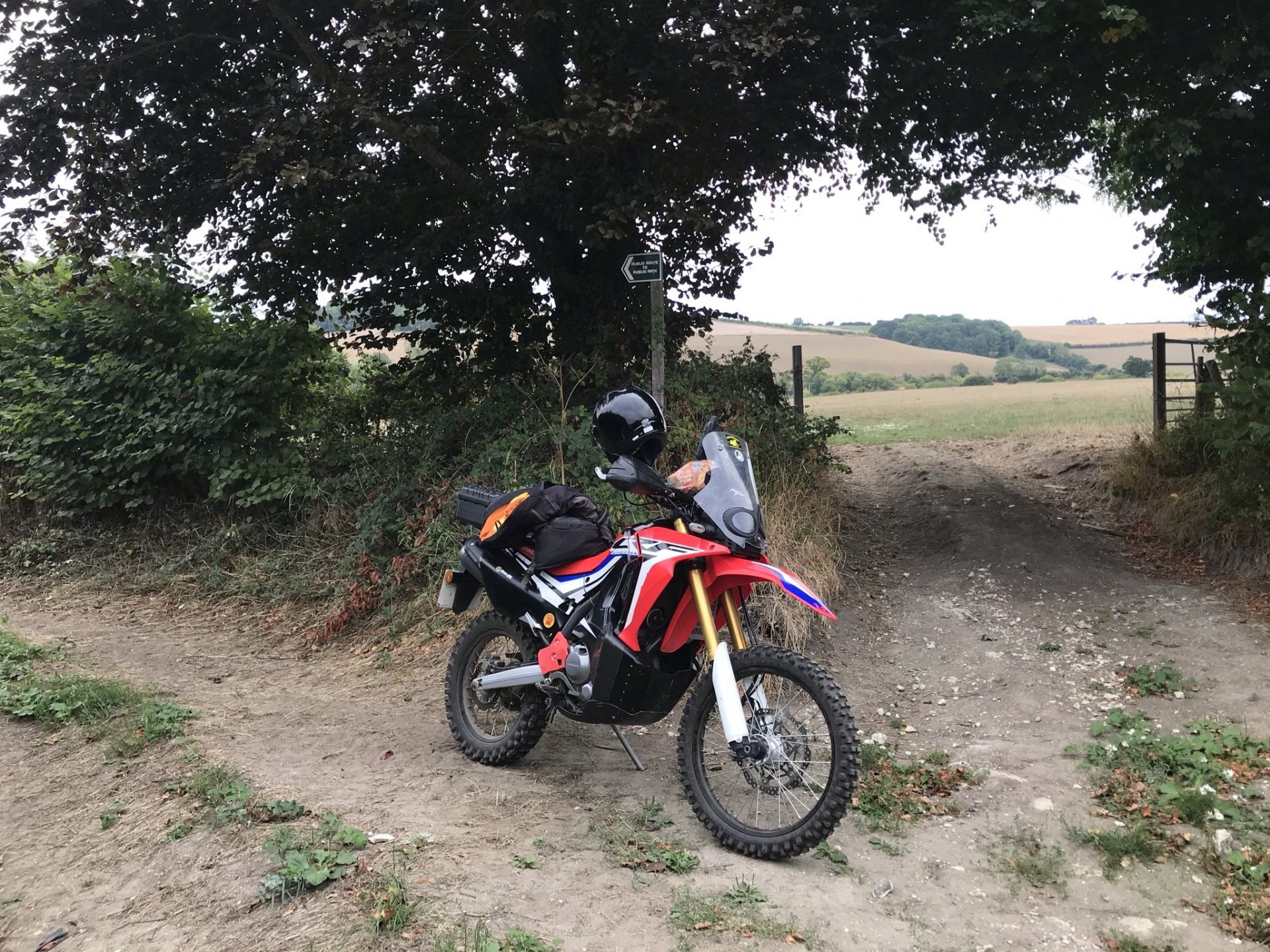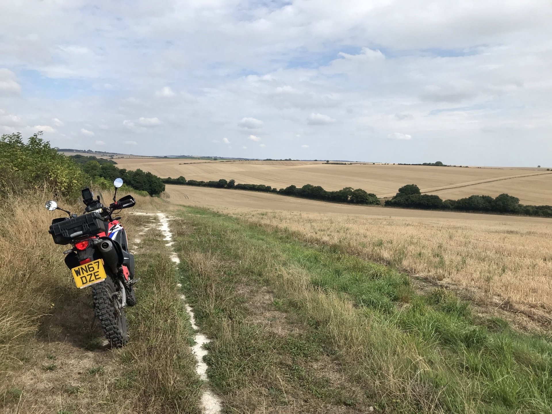 Next up was another lane that I've passed many times but never ridden . This is a Byway (open to all traffic) and yet there are locked gates at both ends, I just rode around the gates and carried on........... Further up the road I got to another lane that was completely blocked with farm machinery, there was no way past this one but obviously the rich land owners around these parts don't give a toss about the law Next I rode down into Cerne Abbas to see the famous land mark on the hill, if you zoom in you can clearly see that this dude rode a Honda Rally Just at the entrance to the next lane I stopped to take this photo of the drive leading up to some posh pad , a lady who was driving down would down her window and told me that I shouldn't be parked there So onto another a couple of lanes with glorious views.................... and then this one which involved opening and closing five gates along it's length1 point