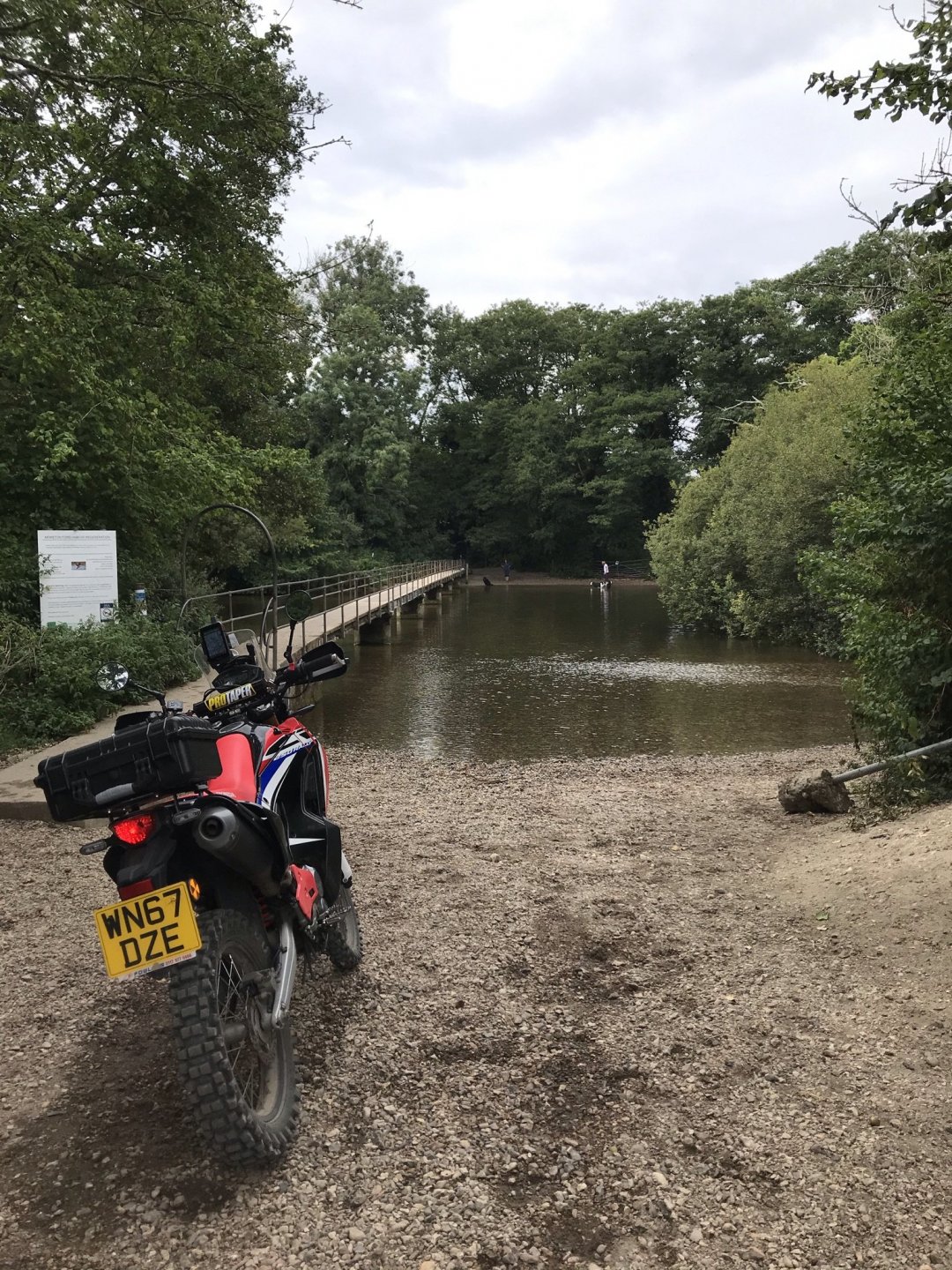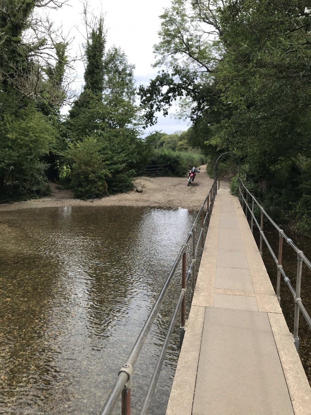 Now I came to the first Ford of the day, this is the ford at Moreton and it's not for the faint-hearted as it's about 50 meters wide with a gravel bottom that you can sink in if you don't keep the power on. I waited until the dogs had finished playing in the river and then went for it. Thankfully I made it through but my starfish did quiver a couple of times and then onto the wonderfully named Jubilee trail.............. Ford number 2 was next (still no BMW's) . I tried to do this last year with a mate , we came from the opposite direction and had a look at it but he didn't fancy it So I came to it from the other direction today and you could get a better view of the best way across............ Safely across and still no wet feet ....................2 points