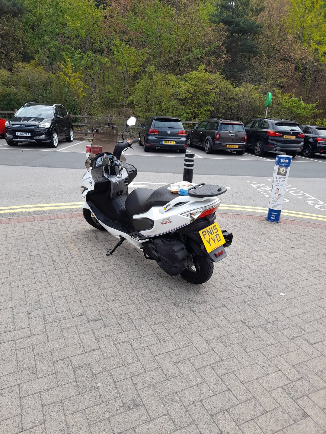 I finally found a new lid I could live with today for touring. When I was living in the USA I developed a real aversion to full face helmets, I have always worn a mixture of full and open face but I think wearing only open face or half helmets for seven years meant I got used to the feeling of space. Since coming back to the UK I have struggled to find anything that does not make me feel claustrophobic. I have been watching the rise of modular helmets with interest especially when homologated to use both open and closed. I had tried the Shark a couple of years ago but didn't like the fit. Today I was looking at the HJC i100 and for the first time thought I may have found something I could live with, it had good space between the chin piece and my face and is P & J homologated. The sales guy said I should try the Scorpion Exo Tech which was actually a little cheaper and as soon as I put it on I knew it was the one. It has been a long time since I put on lid like this and found it was a perfect fit. Unfortunately they even had my preferred colour so I was forced to buy it. Features I particularly like are that the chin bar ends up on the back of the helmet when open, out of the airflow, the internal sun visor goes down very low and the main visor comes with a Pinlock insert. From here on this will be my winter and touring lid. The thing I dont like is all the writing on the visor makes it difficult to see. Of fuck me, it comes off!2 points