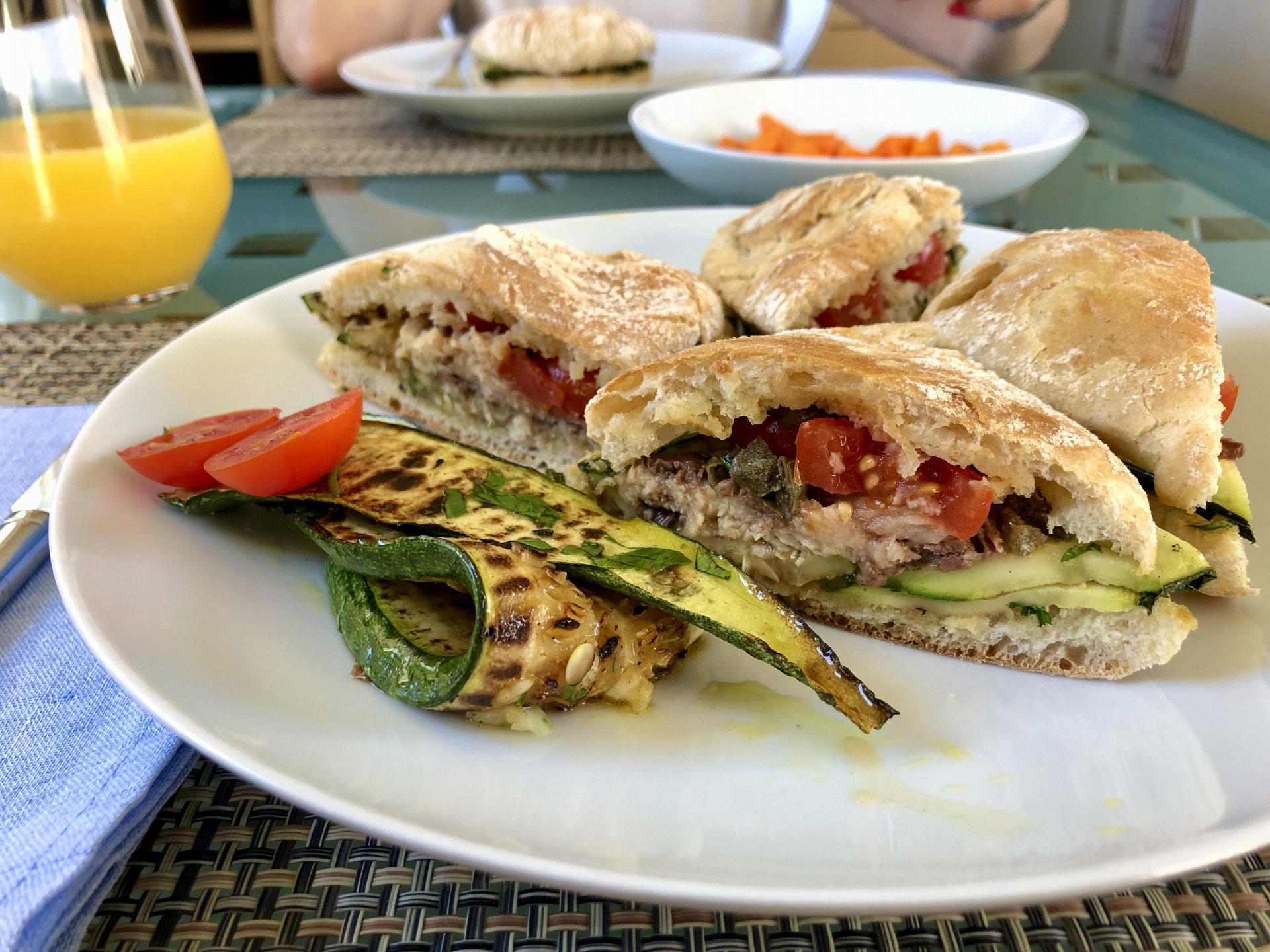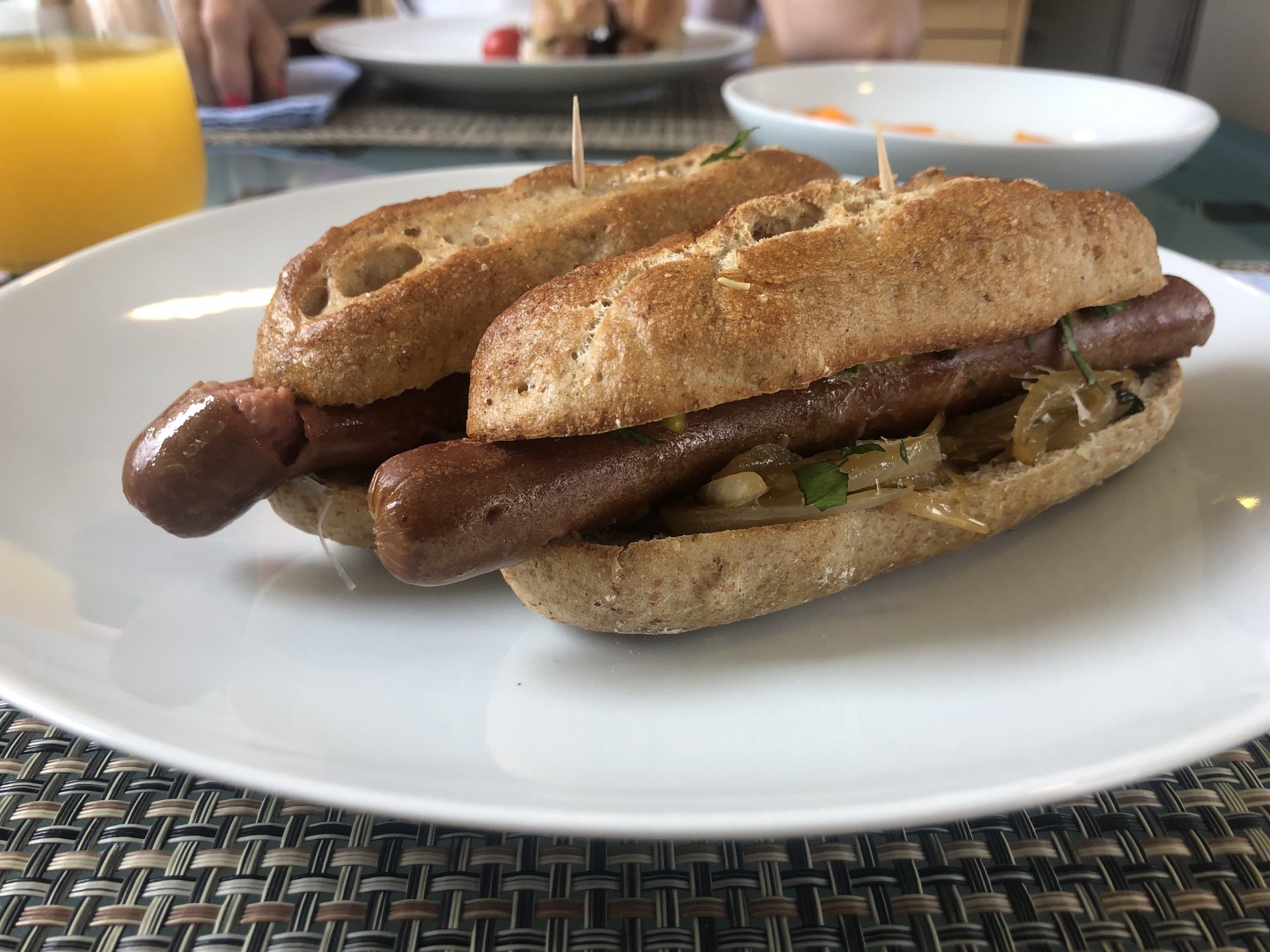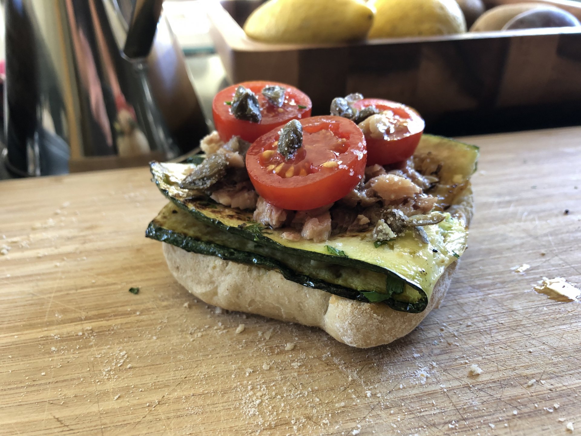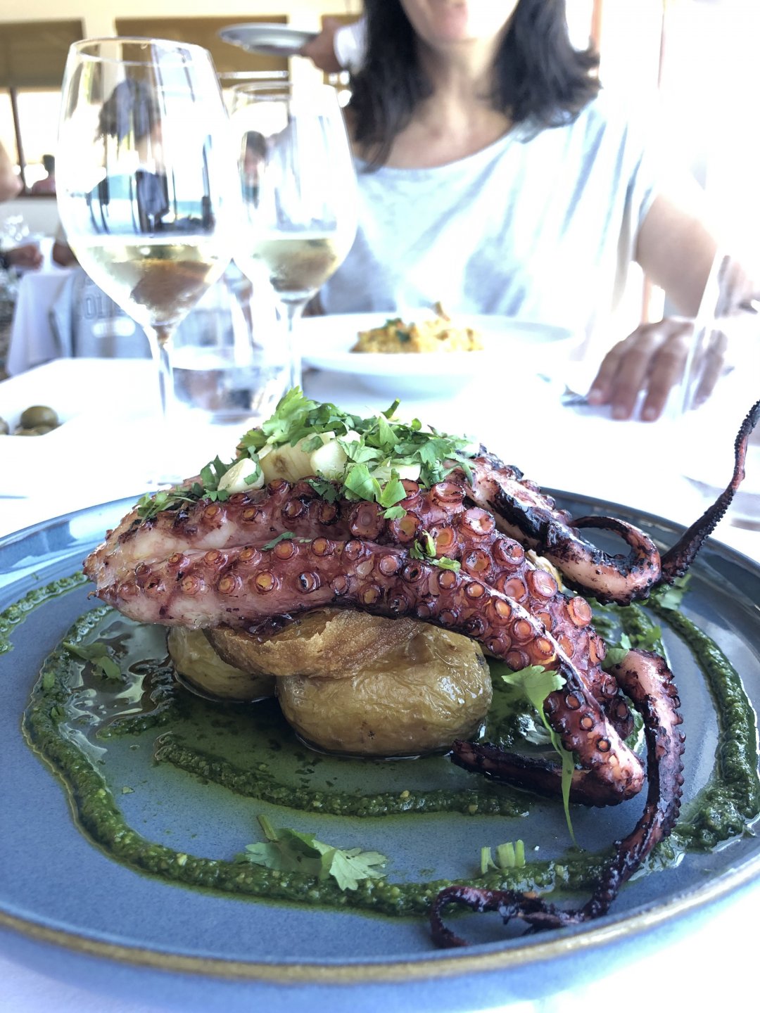 Warning, couple of meals in this post are about to offend certain sensitive personalities that are more of the cheeseburger persuasion. Quick 20 minute fresh cherry tomato pasta: Canned horse mackerel sandwich Leftover grilled camembert and tomato bruschetta Hotdogs, with caramelized onion relish Mum's leftover squid from the previous day, turned into pasta the day after Proper summer meal, the amazingly sweet pineapple was the star Grilled courgette sandwich, with canned fish. It's a great sandwich, with olives and capers. Pantry sandwich, whatever's at home and opened goes in Basil and mint pesto, it was pretty much perfect Perfecting my Broccoli pasta, it's getting there and probably my favourite thing to cook right now. Although it's a paella pan, let's not offend anyone and just call it rice Vegetarian dinner: grilled aubergines, sautéed mushrooms with garlic, and salad. A simple onion omelette Lea the Terrier, very interested in this pasta sauce as soon as the anchovies started falling apart. No pictures of the end result. Octopus "à Lagareiro", baked with olive oil and potatoes. I obviously didn't cook it, a very nice restaurant did. "Lagareiro" is the man that operates the traditional olive oil press, most "Lagareiro" dishes are oven baked with garlic and potatoes, and a healthy dose of extra virgin high quality olive oil. The pesto was this place's touch and it worked. Giulia is an italian lady I know, she runs a restaurant in Germany and most dishes always feature peas thrown in one way or the other. I remembered her for some reason and peas went into the pasta, the result was pretty great. Comfort food, peas with quality chorizo from the Alentejo black pigs. I put a few different spices like turmeric, a lot of cumin, smoked paprika, some herbs, the home grown egg gifted by my neighbour finished it off perfectly and was a touch of love.1 point