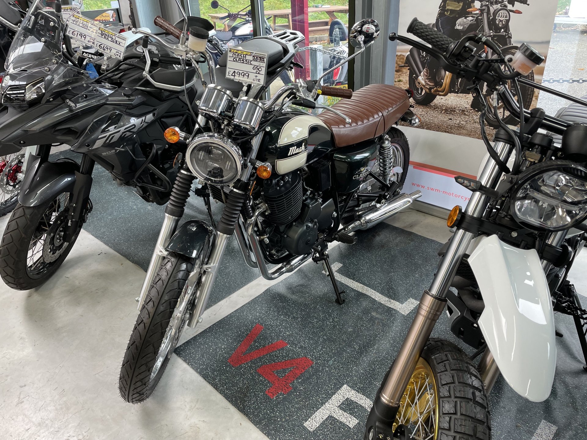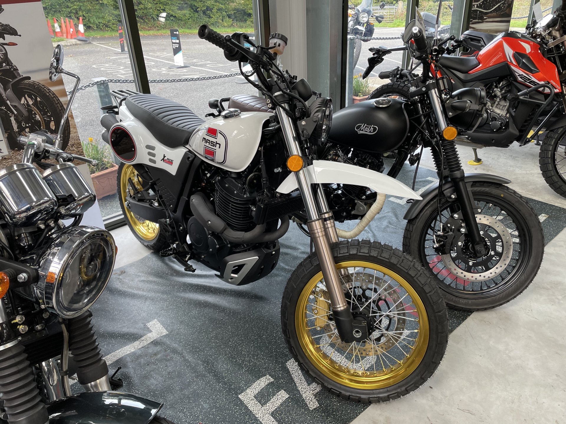 Yeah they do pack them in pretty tight, similar thing up at North Cornwall Motorcycles to. I would hate to see the results if one of those Indians went over, must have been 30 of them in the showroom. Very expensive set of dominoes. I have often wondered about their dealership as they all sorts there. They have a real good selection of Helmets and clothing as well as bikes. Good shop with a good reputation though. I seem to remember when they opened they were just Norton and Indian. Just classic Nortons in the showroom now. I was very tempted by a Benelli 400 Imperale before I got the Himalayan, but ultimately went with what I thought would be more rugged and reliable for everyday use and commuting. From memory I think they are dealers for Indian, Fantic, Morini, Benelli, Beta, Reijue (sp), CF Moto, Zontes, Mutt and Mash.3 points