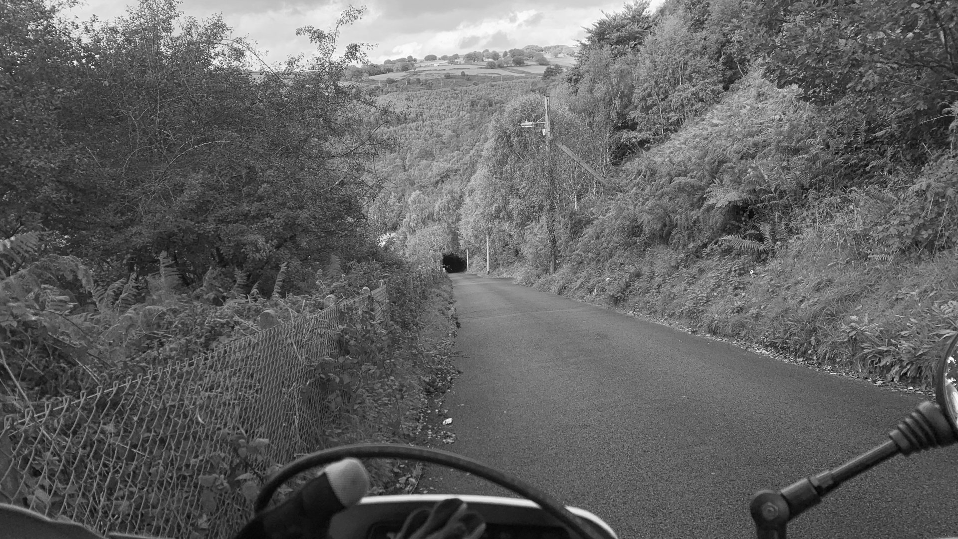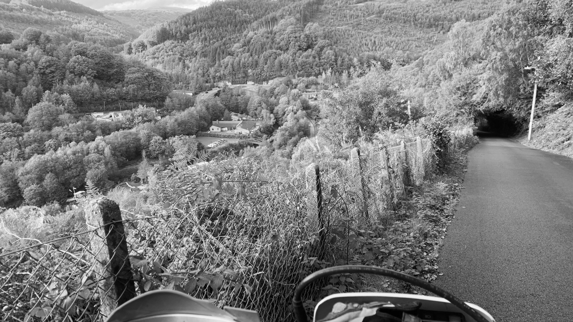 I was planning on going out yesterday but after getting everything ready to go it started to rain but not just any rain this was biblical so knocked it on the head and ended up going out to go today instead, It was a bit foggy this morning when i got up so i waited until it lifted before heading out which was a mistake as i would have had a great view of a see of fog from up on my mountain this morning almost all gone when i got up there From here was an encounter with the plod, at the end of the track was a plod car waiting with a WPC in it alone, i was going to say she pulled me over but when i saw her i stopped for a chat she was stunning She was part of a team looking for illegal off roading in hotspots around the area, i educated her in what was legal to ride and what wasn't got to say she looked very vulnerable up there all on her own. I decided to skip the next mountain road as it wasn't exactly legal and that was bound to be an area the pigs were covering. A view a few valleys over looking towards Twmbarlwm And as requested by grasshopper, i am trying to smile but the soup strainer is hiding it and the sun is in my eyes making me squint LOL Down the lane a bit, its an old broken tarmac road covered in autumn leaves making things quite slippery can you see the lovely autumn colours That brought me out by these critters fuckers setting himself up to spit at me I'm sure. The mountain opposite is covered in beautiful autumn colours Stopped for some fuel in crosskeys always put super unleaded in the bike picked up the pump and notice how expensive it is, that's dearer than diesel i thought then checked and realised it is fucking diesel it was supreme diesel not super unleaded luckily i only put a litre in before i spotted it. The next lane the trees here were covered in a lovely rich green moss and the sun lit up the green tree canopy can you see it The paved roads were also a bit slippery today with the wet mud and leaves on them Wentwood reservoir is still empty but this hasn't been used for drinking water for over 20 years its more of a leisure lake Their not going to be doing any water sports on this one though. Stopped here because a dear ran across my path no big deal for some of you but a very rare sight here, i could see it watching me from a distance in the woods but phone camera was not good enough to zoom in on it It got a bit tricky further down missed the left hand line in the photo and ended up walking the bike down this as the rock was so slippery At the end of this lane was a carving of what looked like a man clubbing a bull it was larger than life in size, couldn't see anyone about to ask if i could enter to take a better photo there will be a next time On the way to the next lane i got stopped by the police again as you have to pass plod HQ in Mamhilad i could see the pair of twats looking as i passed the entrance sure enough they followed me and then switched on the blues, the two coppers seemed quite disappointed i pulled over for them, they were nice enough and let me know my number plate wasn't supposed to be dirty or point at the sky and sent me on my way, i didn't let them know I've been told that before LOL This tree was just high enough to get the handlebars under the floor was covered in what looked like sea urchins i'd stopped below a conker tree Last off tarmac stretch before heading home not quite legal up here anymore probably been over 5 years since i last rode it Back to Aberbeeg this is one steep hill doesn't look it in the photo though A bit further down looking over to Aberbeeg lots of colour on the trees now Last time i was out blackwood way i spotted this old bridge from the bypass so thought i'd have a look today It an abandoned railway bridge Just had a gentle road ride back from here and over my mountain of course to get home, a nice day out seen plenty of wildlife including a buzzard flying in front of me dropping the Pidgeon he had for his dinner things like that make me want a go pro.1 point
