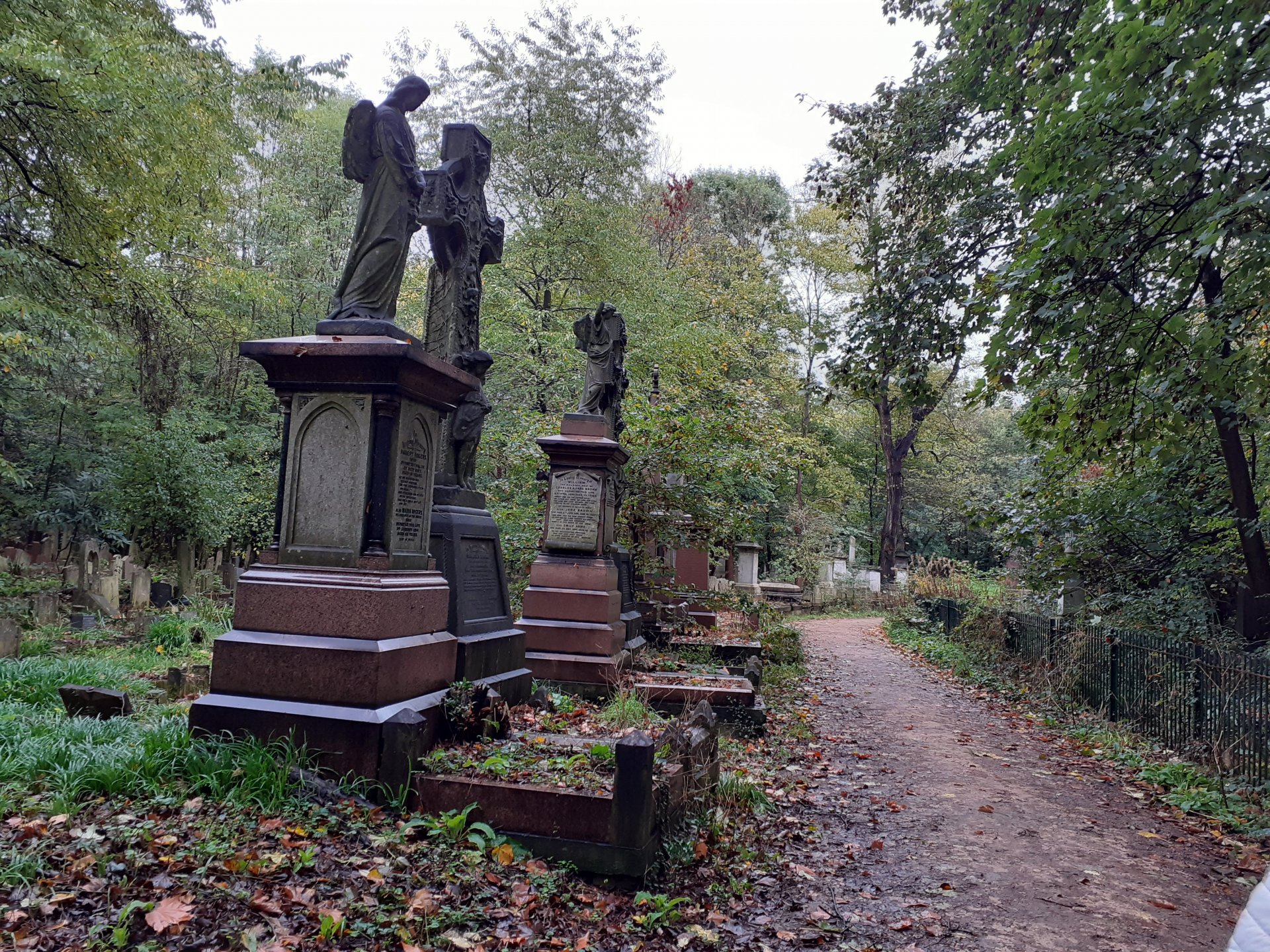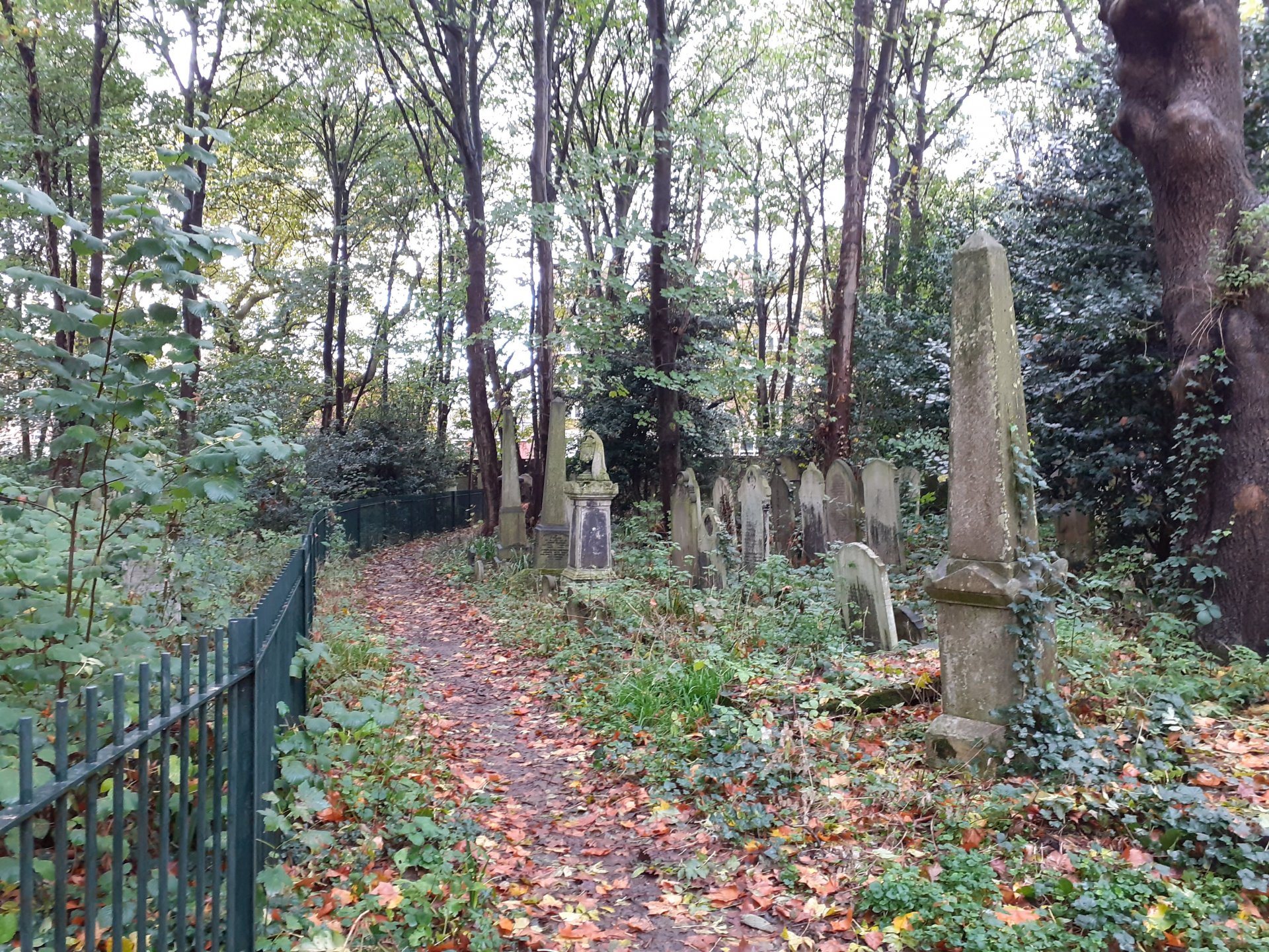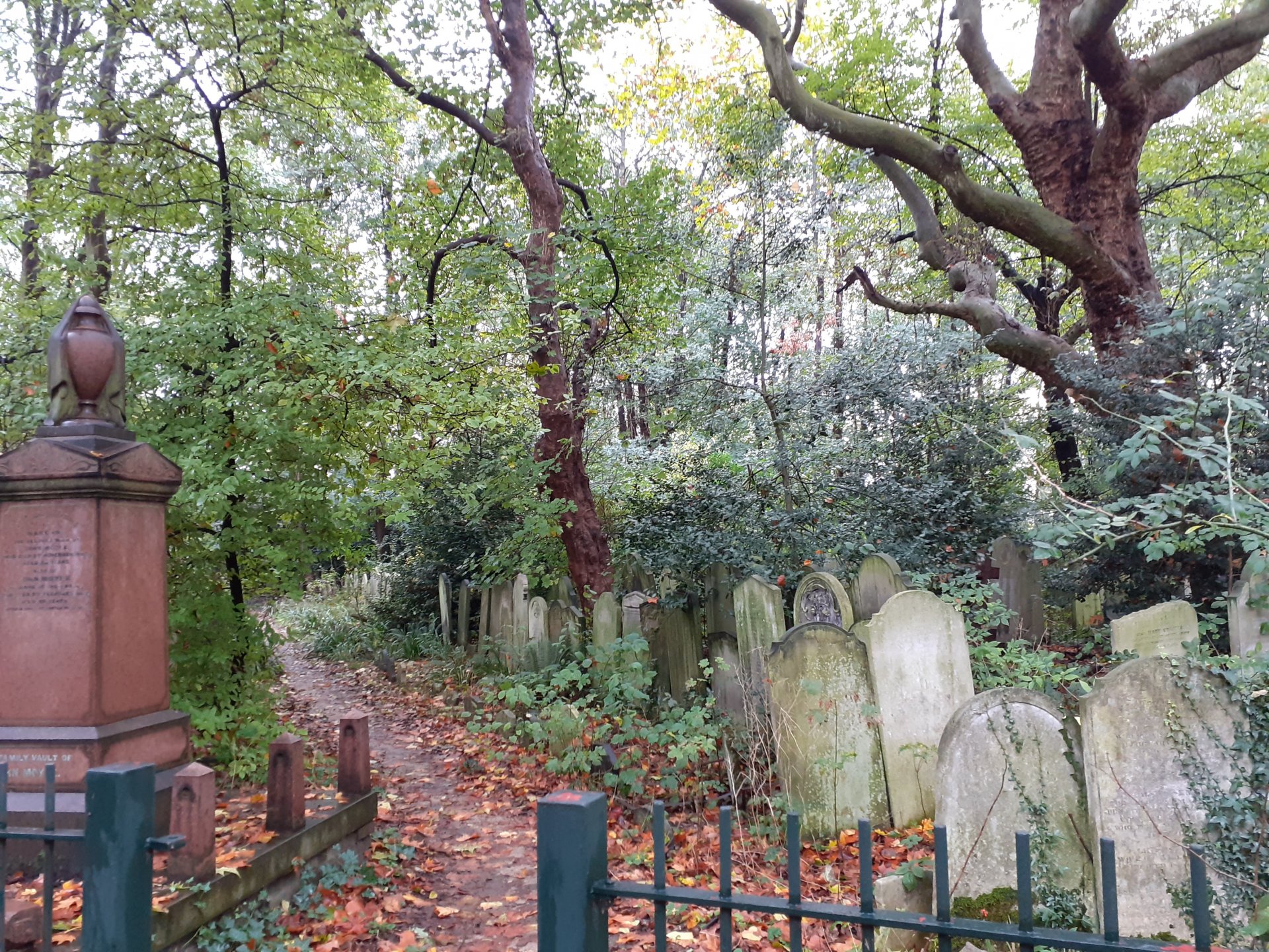 I don't think I'd go through there at night, people sometimes live in there and one was murdered a few years ago. We had a colleague, circa 2002, who we nicknamed the Ninja because he looked like a baddy from a Karate Kid film. He actually was a highly rated martial arts fan as well. The cemetery is right next to our then offices. He took a shortcut through there at lunchtime whilst carrying a very obvious metal lap top case. Three of the local upstanding youth asked him to hand it over and then laid hands upon him. He returned with a torn shirt, still holding the lap top case, but it now had head shaped dents in it. I have actually found a picture of him that I'd added a speech bubble to from back then. He's talking to the world's most most boring Australian who was with us for about a year.4 points