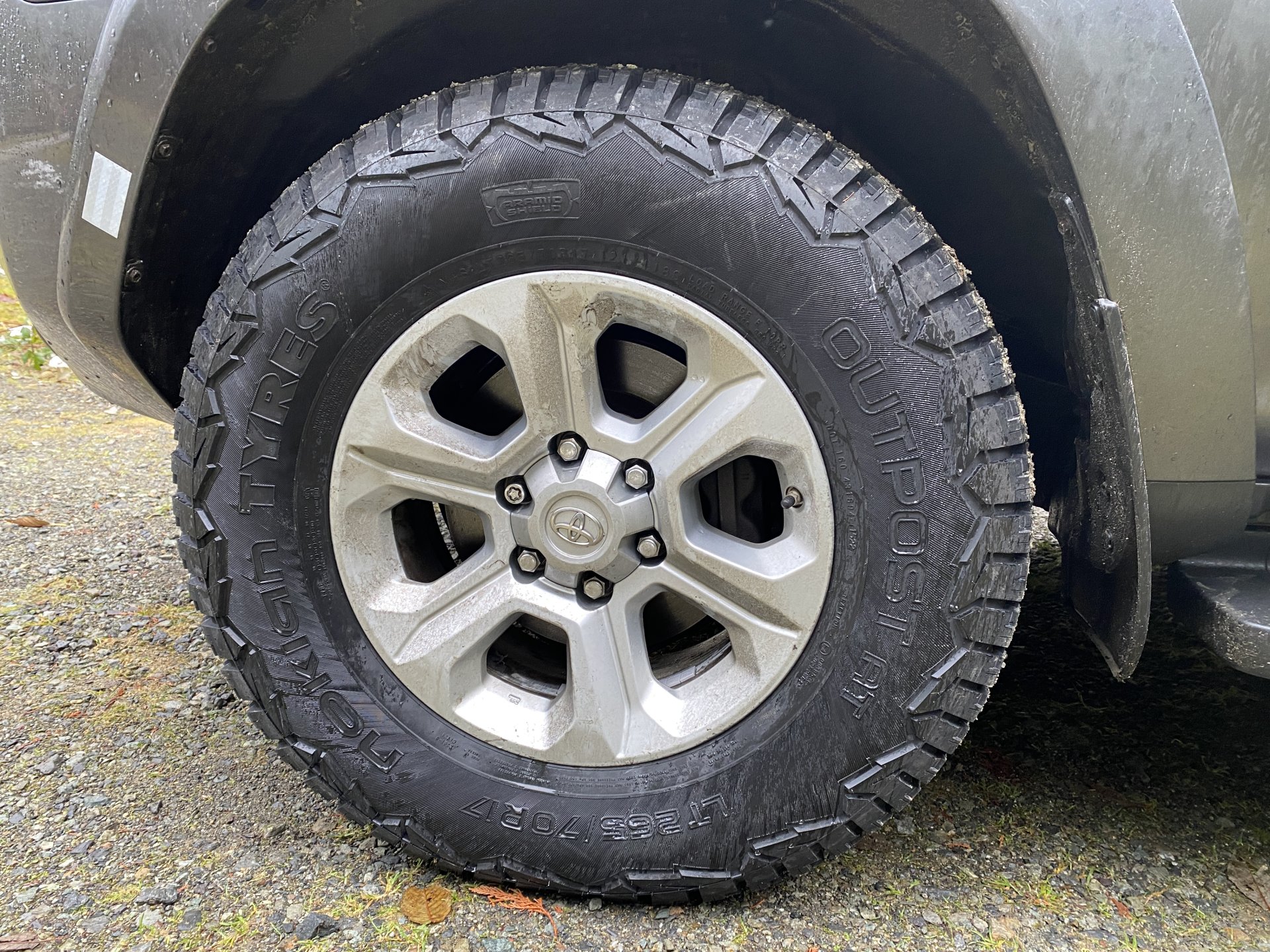 New shoes all around, and a spare. The van now has tires that can drive on the highways in the winter. You can be ticketed and have to pay if you drive with the wrong tires in Canada. Plus we got our spare carrier installed and a spare purchased. Feel much better with that. Then the 4Runner got some new All Terrain tires, some lovely Nokians. I haven’t gone far on them, but damn they are nice tires so far.6 points