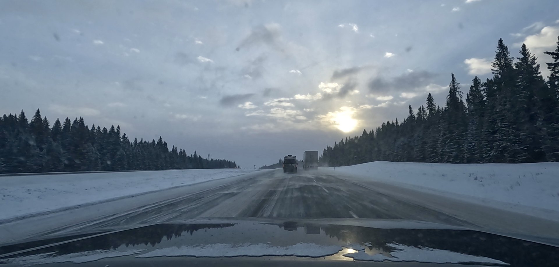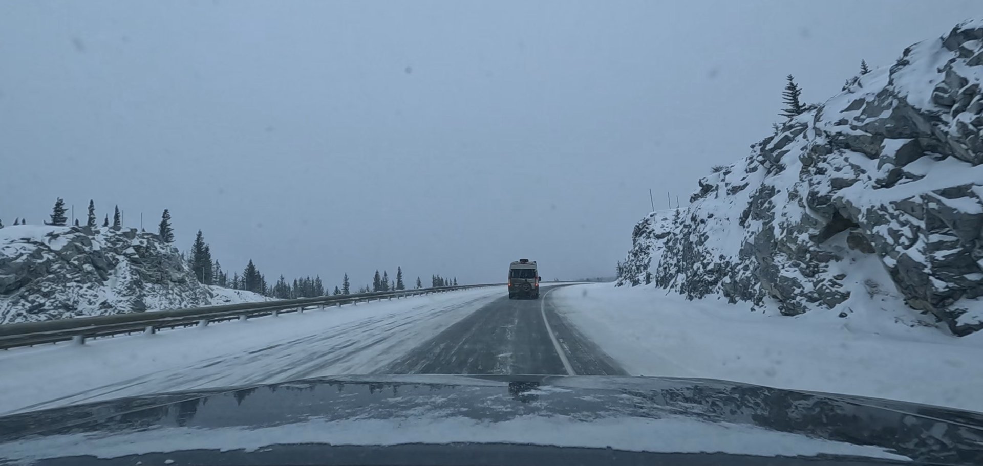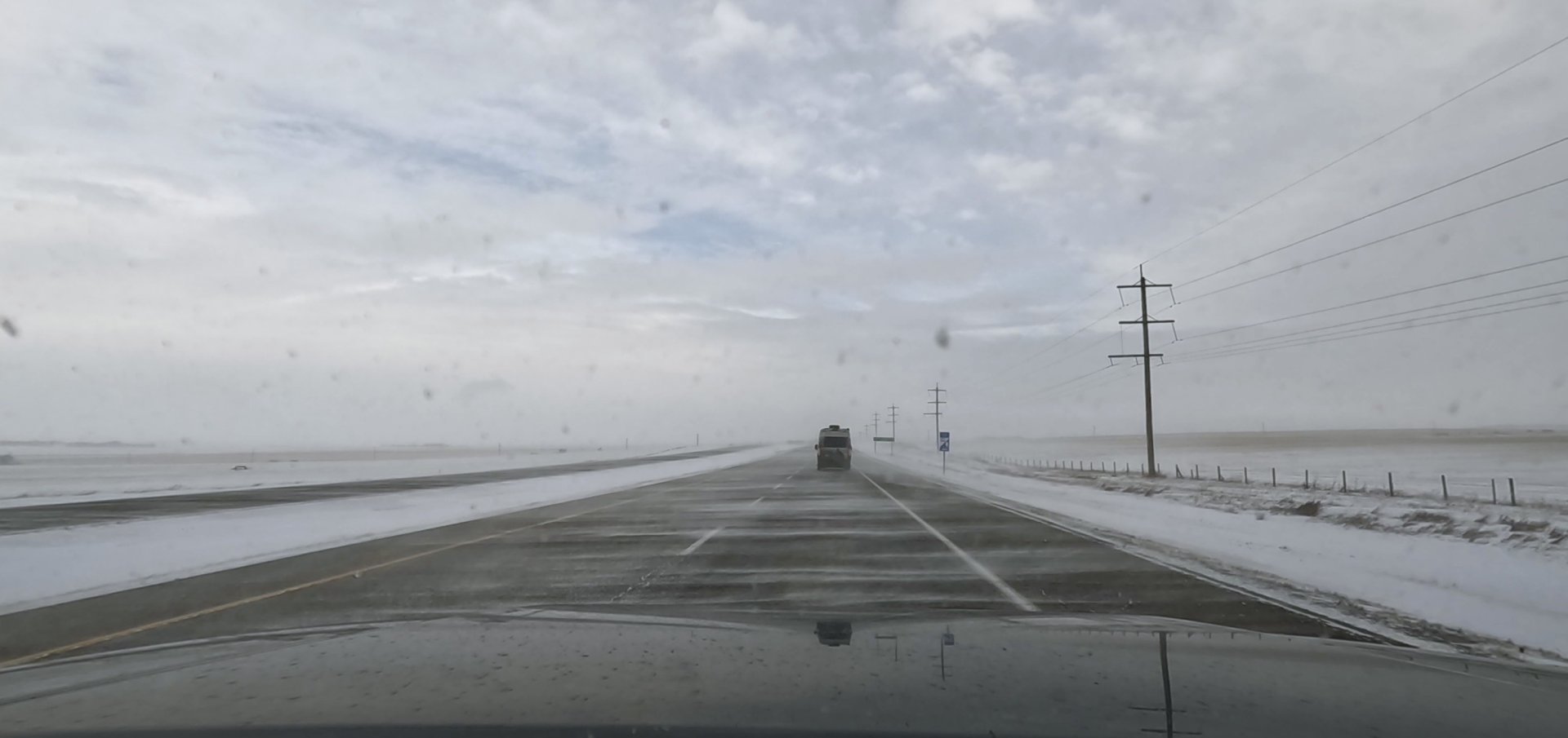 Crazy day of driving. We left the mountains this morning in the wind and snow and it carried on like that all the way into Brooks, Alberta, where we stopped for the night. So we went from sheltered mountain highways to nothing but fields around us. The wind and blowing snow made for an interesting drive. It's a cool -17c right now. Not much time for smiles and scenery today, so here are a few driving pics.6 points