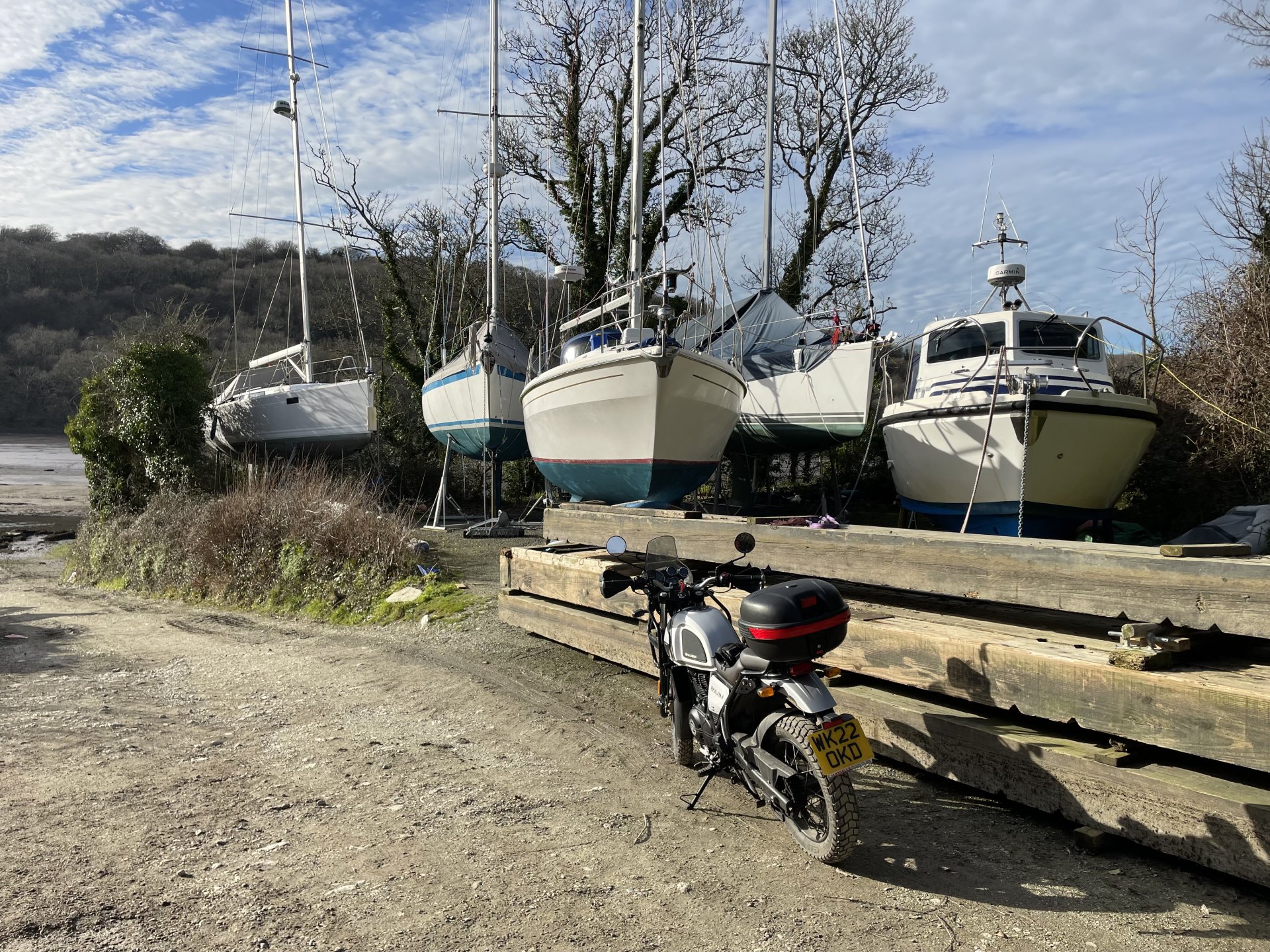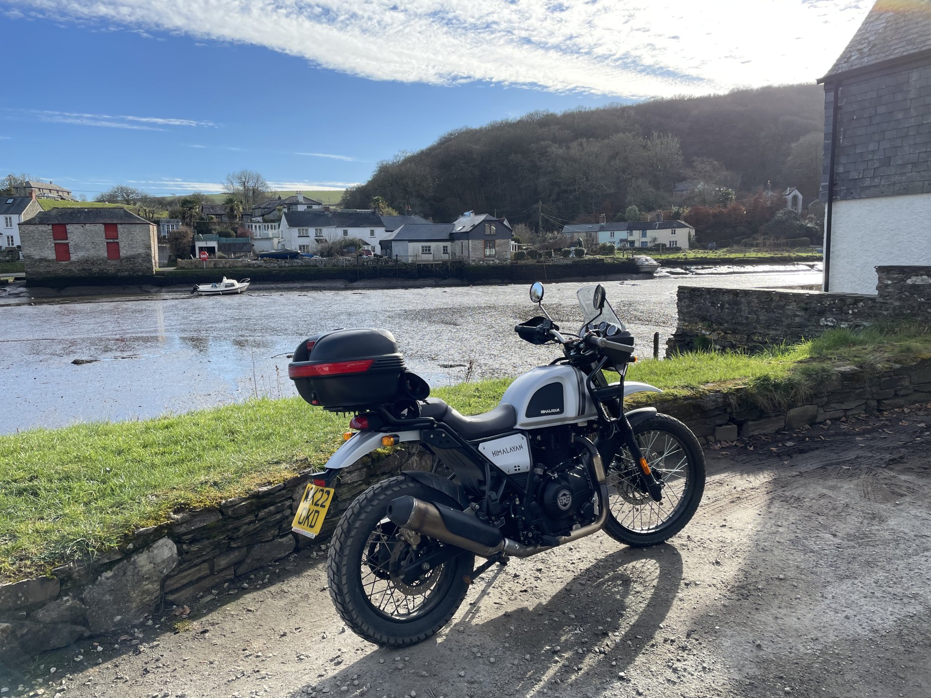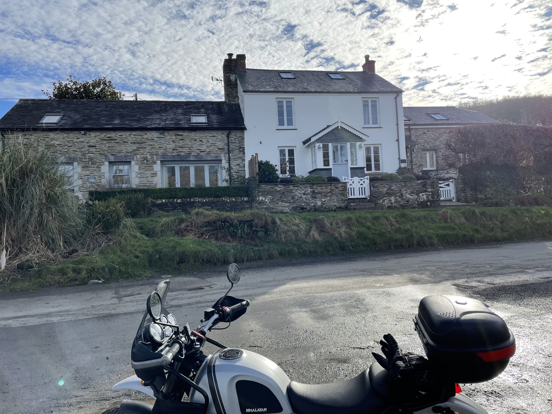 Seeing my Himalayan’s days with me are numbered I was keen to get out for maybe a last bimble about. I went to a village called Lerryn about two miles as the crow flys from my house. Problem is that it is the on the other side of the river so it is about 15 miles to ride around. Well not so much of a problem as the sort of roads for the majority of the way are very well suited to the Himalayan. Mostly back lanes and B roads way below the sort of speeds that it feels breathless. Lerryn itself is an old and very beautiful place that is dominated by the tidal river. I love it there but as is the case with many scenic Cornish village’s anybody from them is eventually priced out. There is a small estate, formally social housing, just up the hill but apart from that the property values are eye watering. Anyway the tide was out today so probably not at its prettiest but still lovely. There is a shot of the stepping stones across the river, not to be attempted after a drink, I am sure you can guess how I know about that fact. Further up river from Lerryn is the tiny hamlet of St Winnow. One house one farm, a boatyard and a medieval 14th century church. The church itself is the wedding venue of choice for those who can afford it, as it is only practically accessible from the river. Absolutely idyllic place for such festivities. St Winnow church is also the ancestral church for the Vivian family. Baronial Blue bloods, MP's and such, in fact the old Lord Baths mother was a Vivian. When I got home I cracked 3000 miles on the Himalayan.1 point