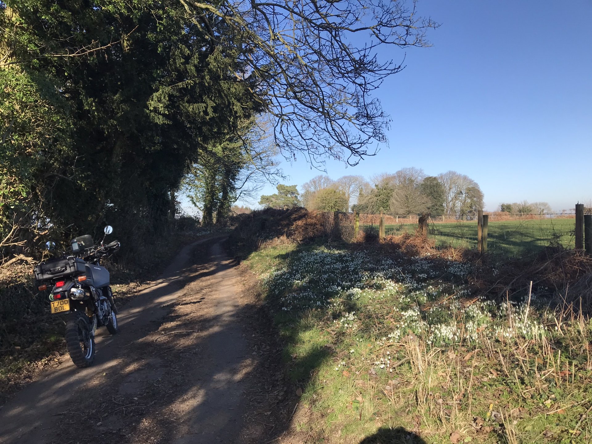 I rode on up towards Abergavenny and then south to get to the Baffle Haus and have some breakfast ................. I bet nobody's filled up here in a while ................. Down towards Chainbridge and up the other side of the valley......... Care was taken on the back roads as there was still frost on the ground at midday. Stopped to chat to some of @XTreme's mates and admire the snowdrops ............... No giraffe-neck deer around here, just the normal ones ............ Then down the Wye valley to head for home, stopped at the Old Station in Tintern hoping to get a coffee but it was all closed today ............1 point