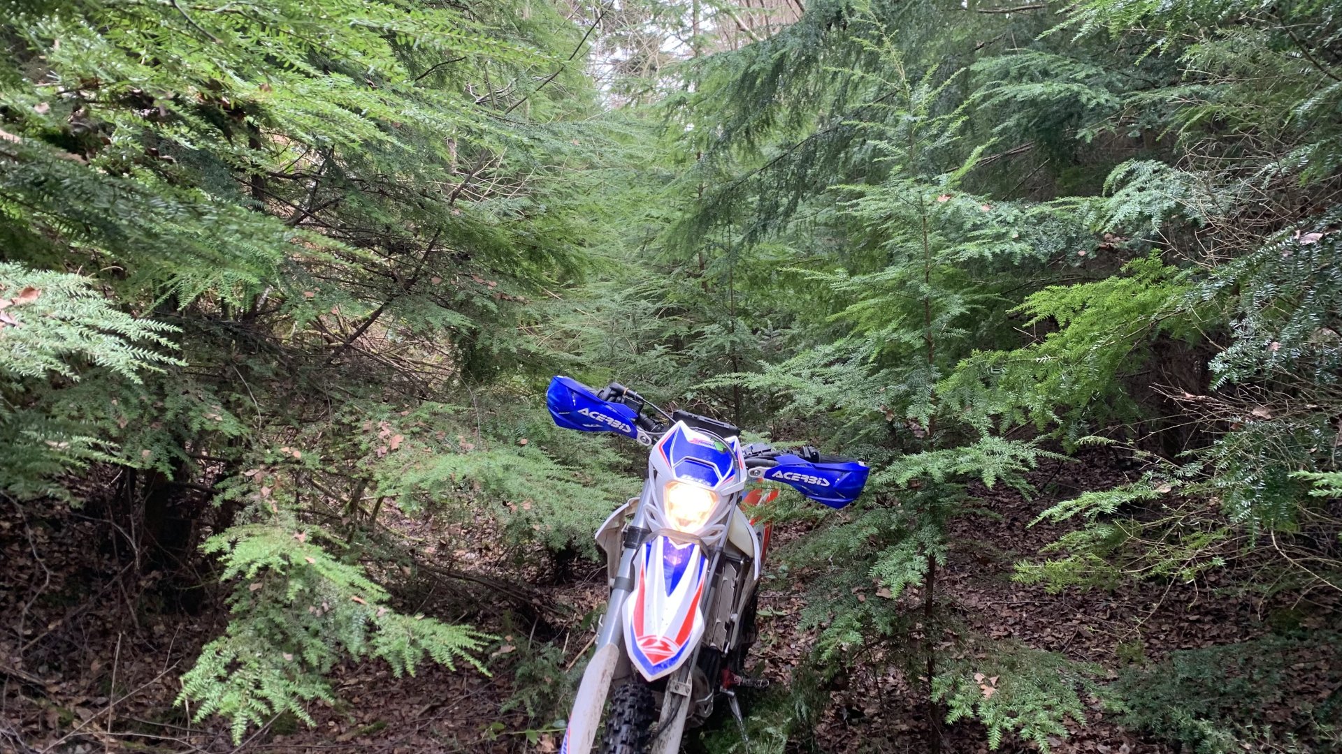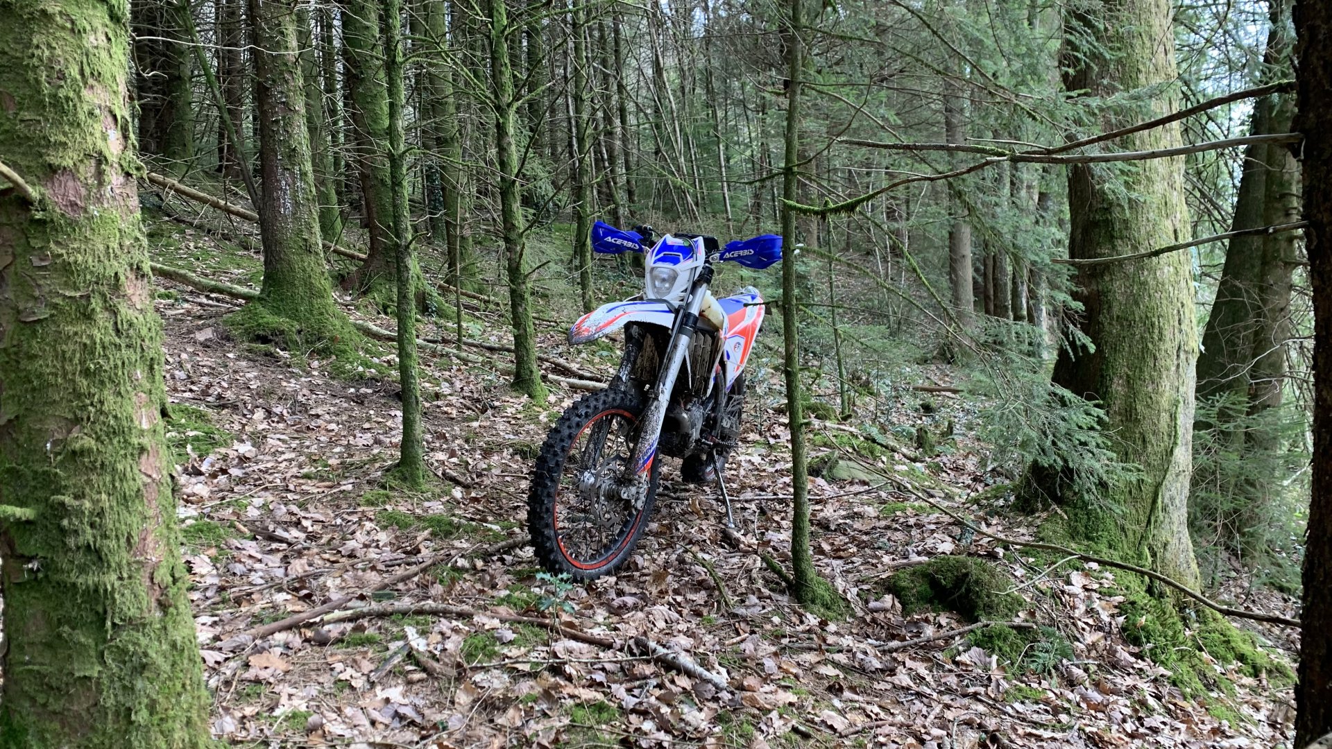 Had a little bimble today on the Beta. I haven't been on it since November so it needed a run. First thing i noticed when getting ready was my bike trousers have shrunk i'd blame the wife's washing but she hasn't washed them so not sure whats going on there LOL. The bike fired up no problem i let it warm a little and off i went to explore some woodland a few miles from me I went over the old parish road from my fathers house its hard to believe i drove my reliant robin up here in the late 80's and my father drove a bubble car up here in the late 60's Had a little look about in the woodland below thought i found a new trail but it was a dead end I rode over to the next valley from here for another look about, started heading down through the woodland following a trail and lost track of where i was and wasn't too keen on going back up what i just came down, stopped here for a quick wee and to get my bearings A guy passed on a trials bike on the track at the bottom of this bank so i rode down to ask him the best way out after he told me i had to come back up as i left my glasses here after my wee Obligatory photo of a stream crossing Back on a track i know heading over to the Rhondda valley Had to cut the ride short as the low oil light came on i hadn't topped it up from the last ride and didn't check it before i left which is not like me i'm usually paranoid about the two stroke oil level This is looking up the Rhondda valley taken from a different location to my usual one which is about in line with with the handlebars on the hill in the distance by Miriam's bench It was good to get out but i could really feel my lack of fitness i need to get out more to build it back up even my thumb was hurting i think from when i bent it back crashing the dog a few years ago7 points