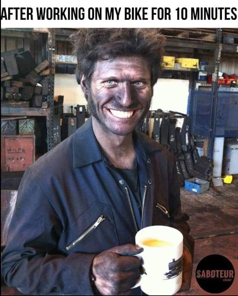Cold grey day today, am having a mug of coffee outside before cutting a couple of branches on my garden and pulling some weed. Then it’s out after lunch to catch up with a friend, and back. Maybe not even touching the bike today.3 points
