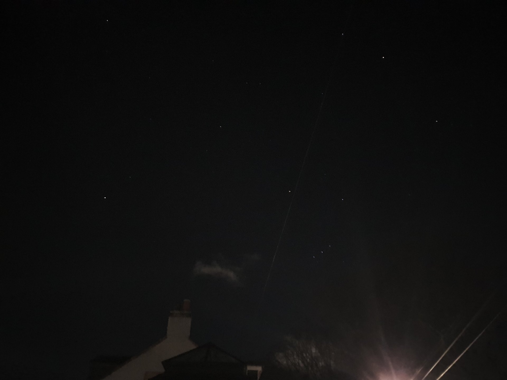 Betelguese waiting to go bang at the top there I think, if that's Orion's belt at the bottom.3 points