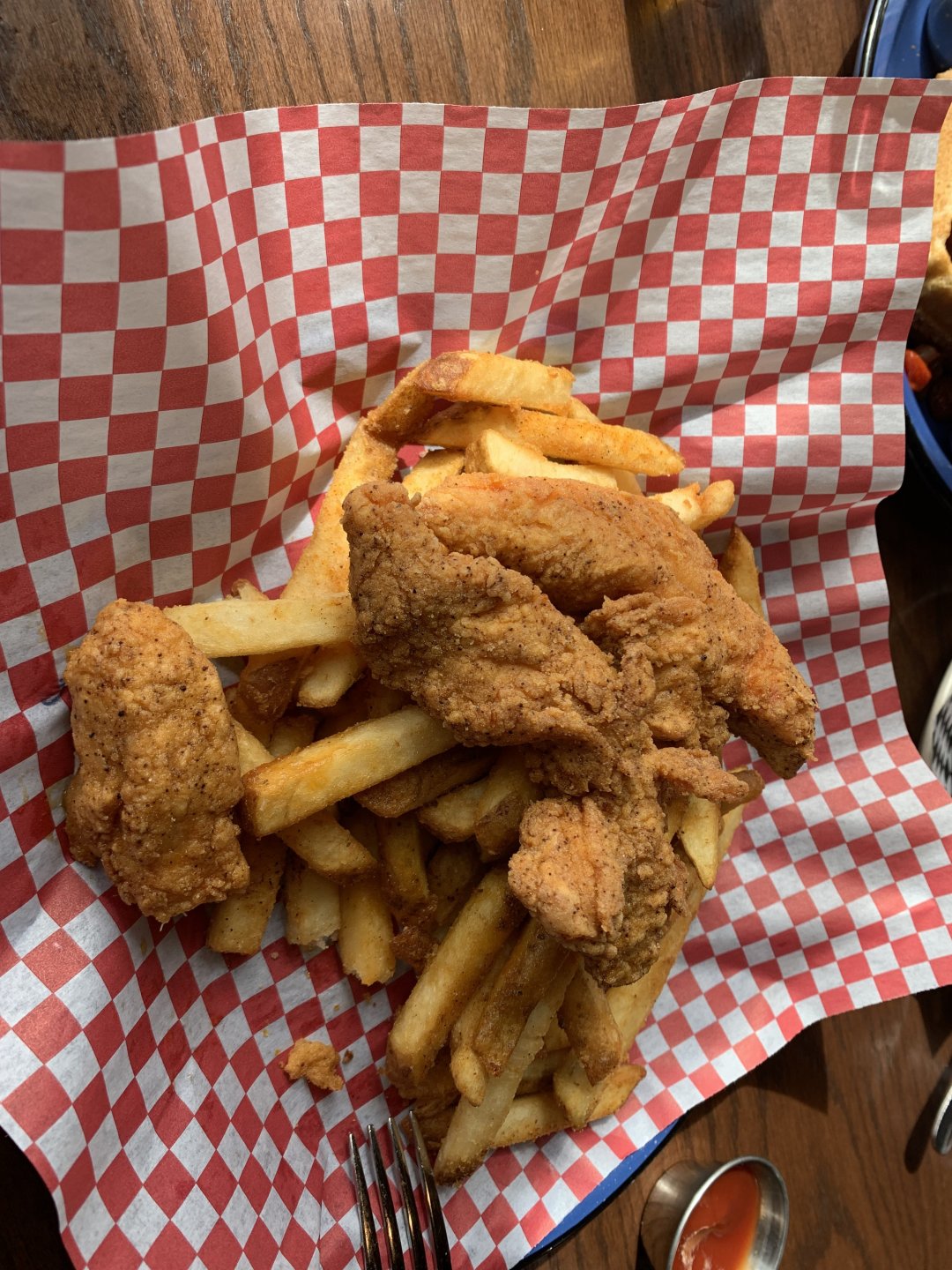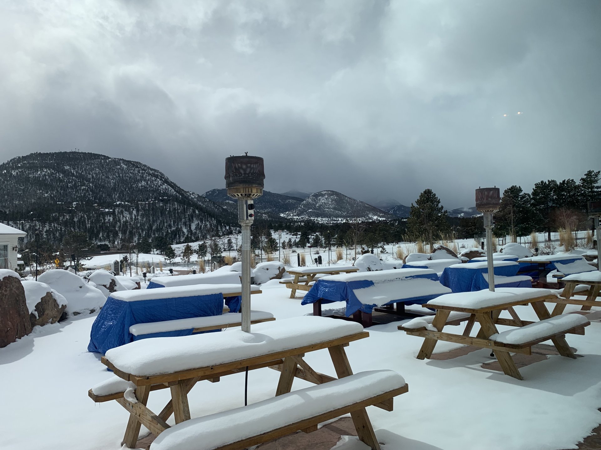 Cruised up the road a bit to Estes Park, Colorado to have lunch today with the wife. Looked cold outside so we ate inside today. I have the chicken tenders with chips (Nashville Hot style) while the wife had chicken and waffle with some chutney crap on top. Chicken and waffles is kind of a southern thing - kinda odd to see it this far west.5 points