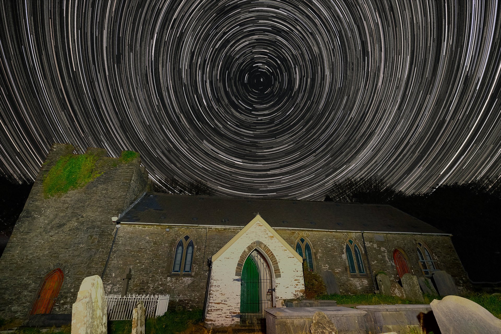 Here's a photo I took of Llangiwg Church during the 2020 lock down I set my camera up so Polaris was directly above the Church and set my camera off taking hundreds of shots then combining them all together As you can see the result clearly shows that the ground I was stood on clearly had rotated in space over the two hours I was there shooting, I even had the police attend to see what the fuck I was doing in a graveyard in the middle of, the night during lock down, so I have witnesses who don't work for NASA Now if you think the stars are just a projection and not real then how is it that the central rotation point appears to be way over by the horizon, if the Earth was flat and it is a projection then how could the stars "further away" than Polaris appear to be much lower down to the horizon?5 points