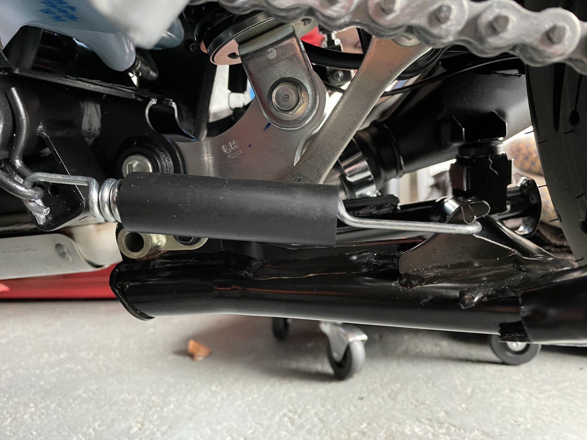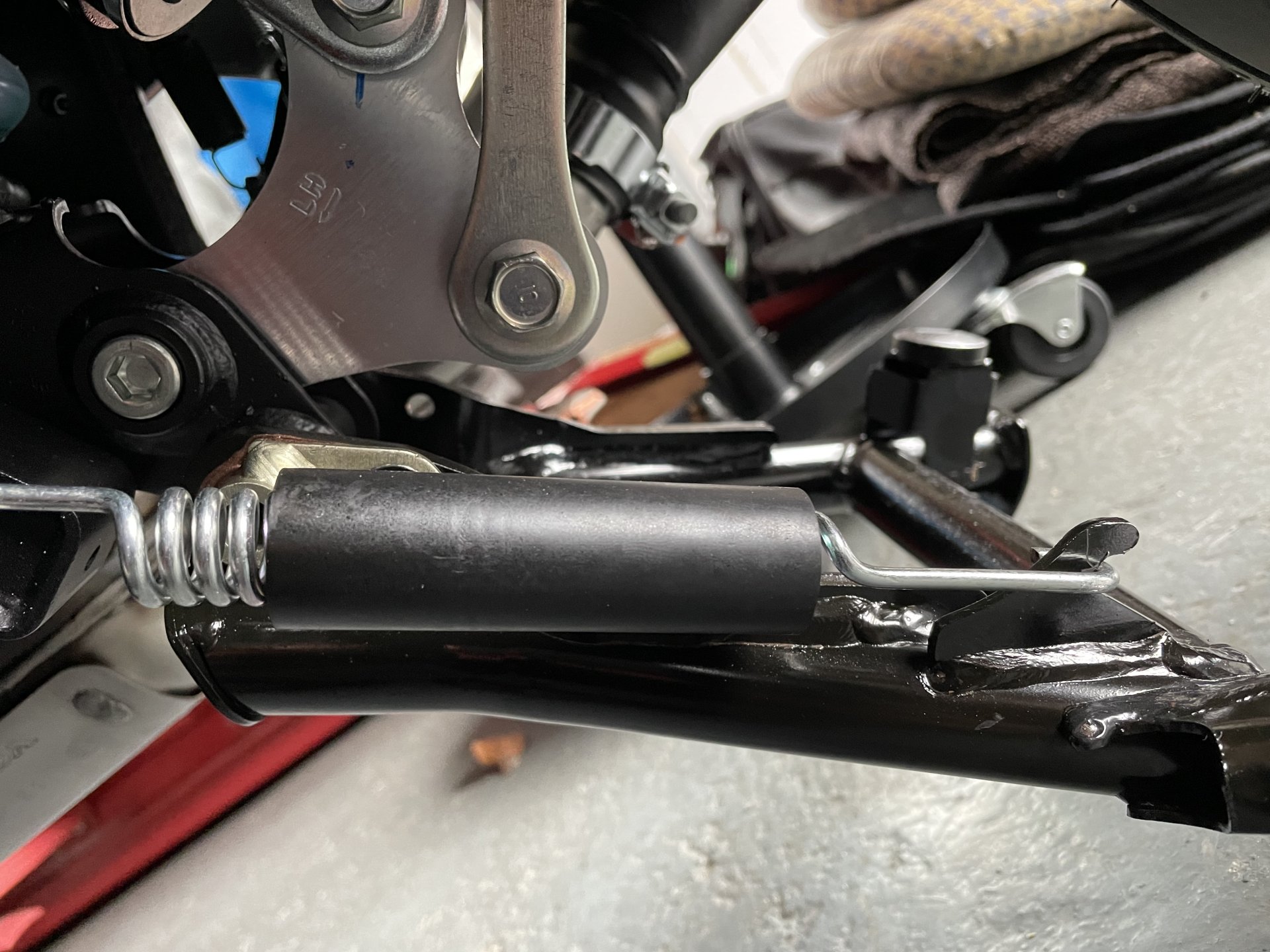 Went up to look at my mates CB with a Honda main stand. Took a couple of photos and measured the spring. 185mm with the stand up. 3mm wire used. But he did give me a spare spring he had, not specifically a Honda one but it may work, if it doesn’t I have found a website where I can order a stainless spring.6 points