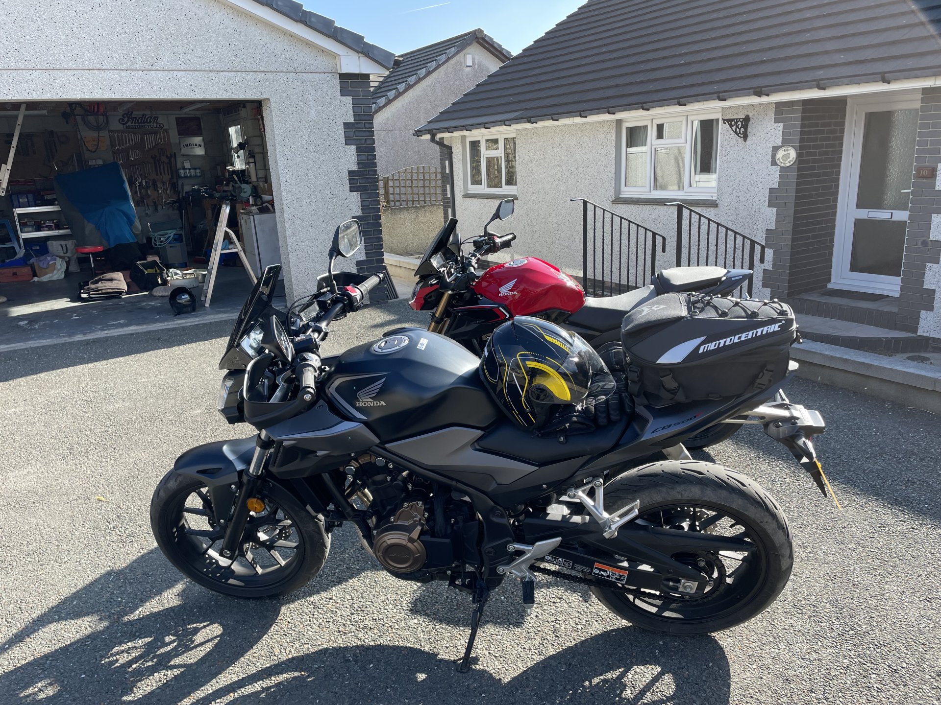 Not done that much this week as I have been decorating my Daughters room while she is away. I did pop up to my mates house, so managed just 30 miles this week. I am taking it to work tonight. MPG is hovering around 85 mpg, but I haven't commuted much with it yet, so that is just local, I reckon it will go up when I am. regularly commuting. I was having a laugh with my mate who has a Indian Scout, CB500F and Yamaha TY. He won't ride the Scout cause he wants to keep it spotless and the milage down, he bought the CB last November and hasn't done one mile yet as he doesn't want it to get salty and he won't ride the TY cause it's to slow for the road. He is telling me he needs to get an old beater to save the CB that he bought to save the Scout. The reason I mention it is he is always asking me how I am getting on with my CB as he won't ride his. He also told me his CB stands him £6800 after all the farkles he got for it. £400 for Honda heated grips .2 points