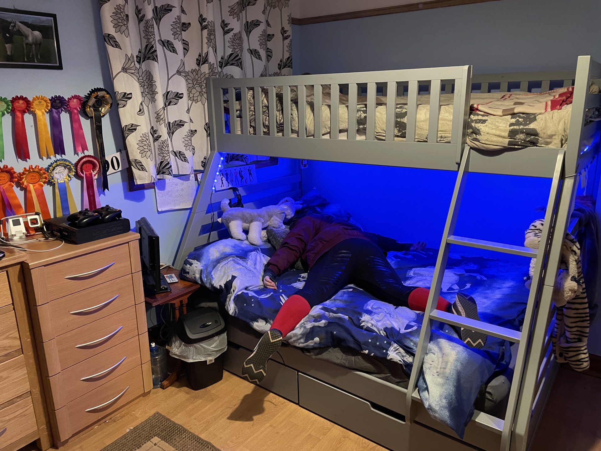 She wanted those blue LEDs instead, I know its a bit dark but the stage is set for her, she loves it like that. I think she would like to be a Goth but that doesn't chine with her horse obsession.2 points
