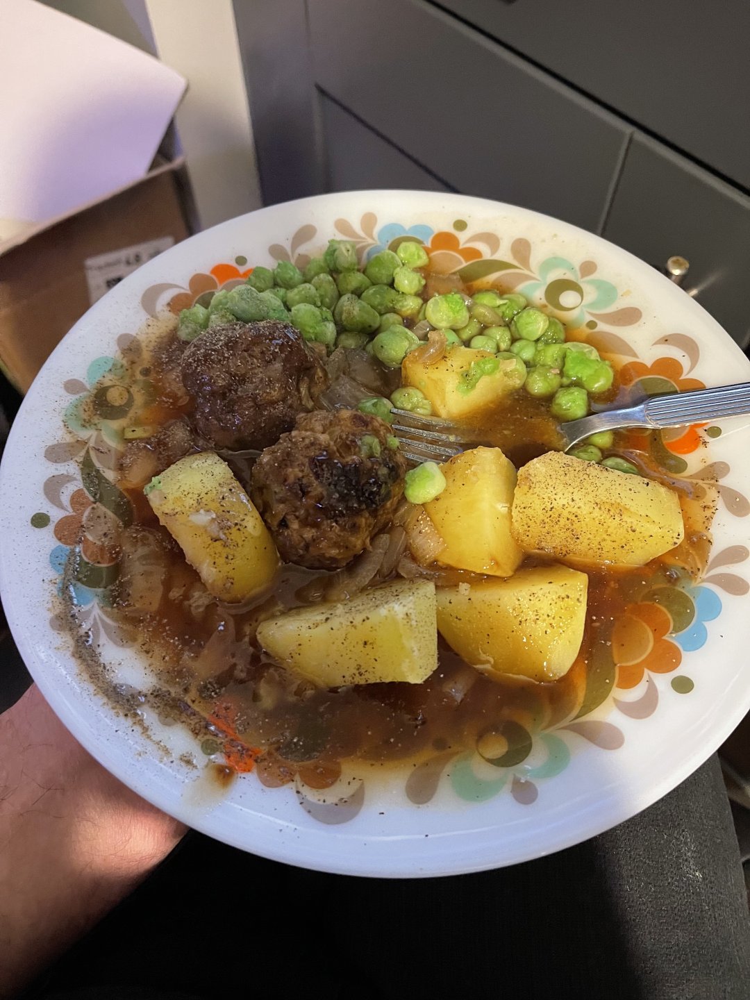 Chips, even frozen ones, some kind of meat, and cabbage, and you drink milk with that? What kind of weirdo does that?4 points