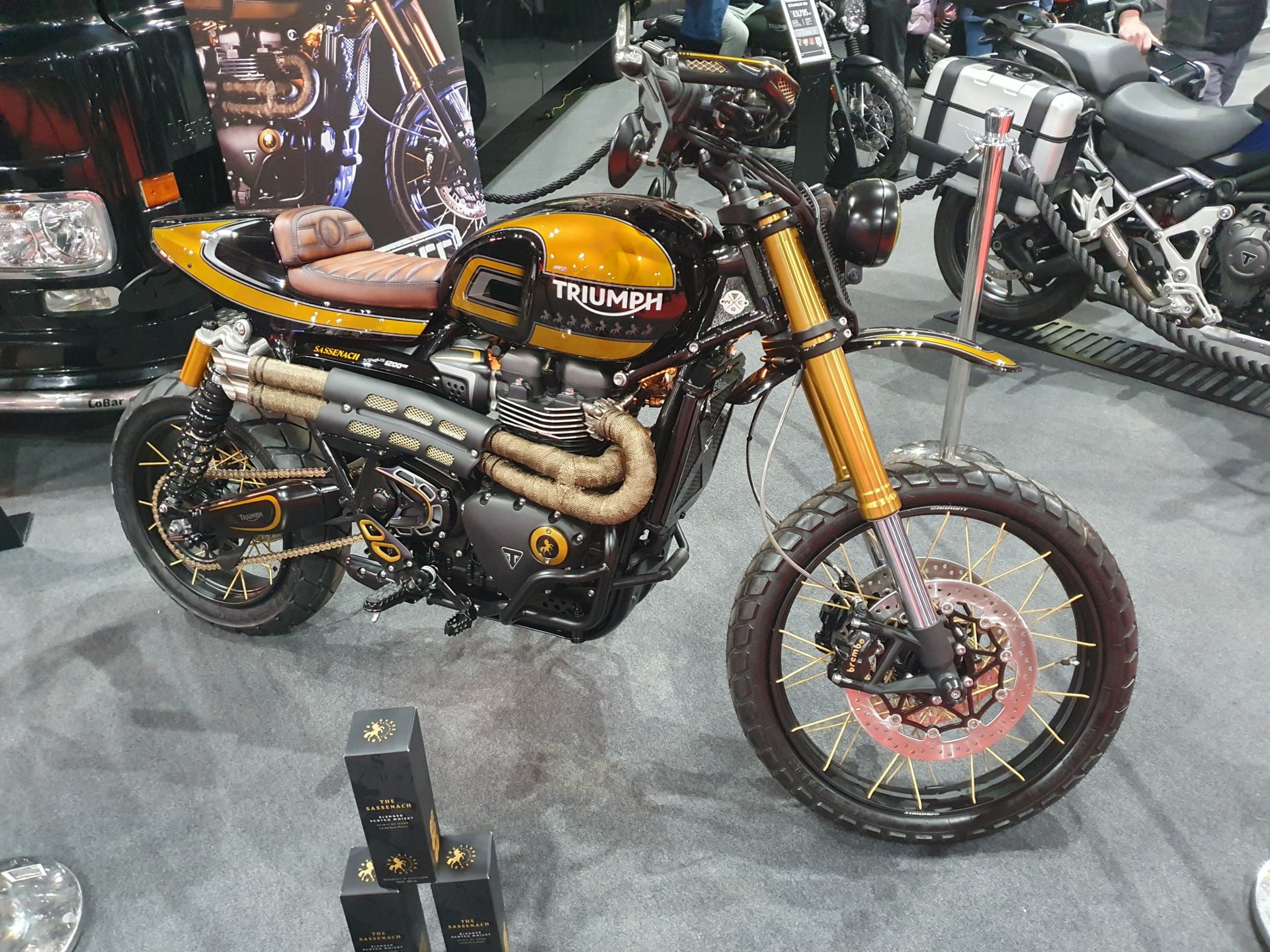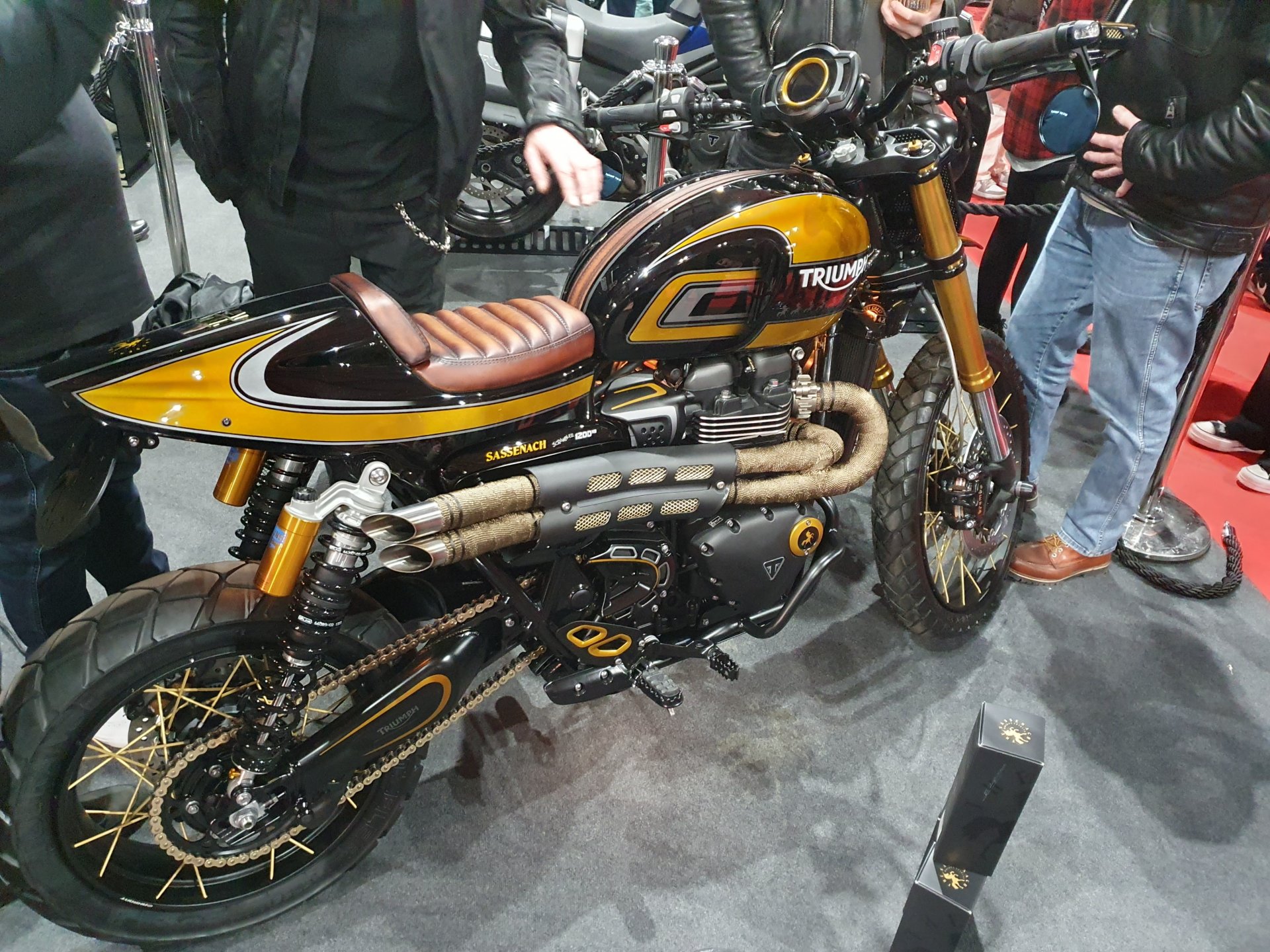 A few pictures. It was really busy so it was difficult getting good pictures, I actually went for a specific purpose and I didn't have enough time to see everything. They had a classic show in the Lowland Hall but it was ramming in their so I only had a quick look, apparently "classic" now means anyone's winter bike as the majority were crap. I was hoping to get a new leather jacket but the vendors were selling tat. I did however get ear moulds done and will have custom ear plugs in a few weeks time. Not keen on the current KTM offerings, they are too mainstream now. A few from the classics and custom. One for Six's van, it sure as shit shouldn't be out in the open. A Busa that isn't owned by a feckless pussy. I liked the CCM's Some chinky shite for Pete, either this Moto Morini or a Benelli. Shame to see those names on these things. Harley Davidson were there of course. There were sad twats getting a stationary test ride. Here is a bike leaning further than Pete has ever managed without falling off. i quite liked this customised Triumph Scrambler. I spoke to the designer, he was a knobend. He didn't like getting told he was a knobend but there you go, I still like the bike.3 points