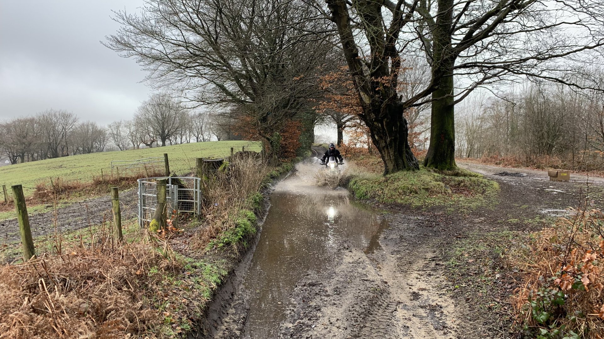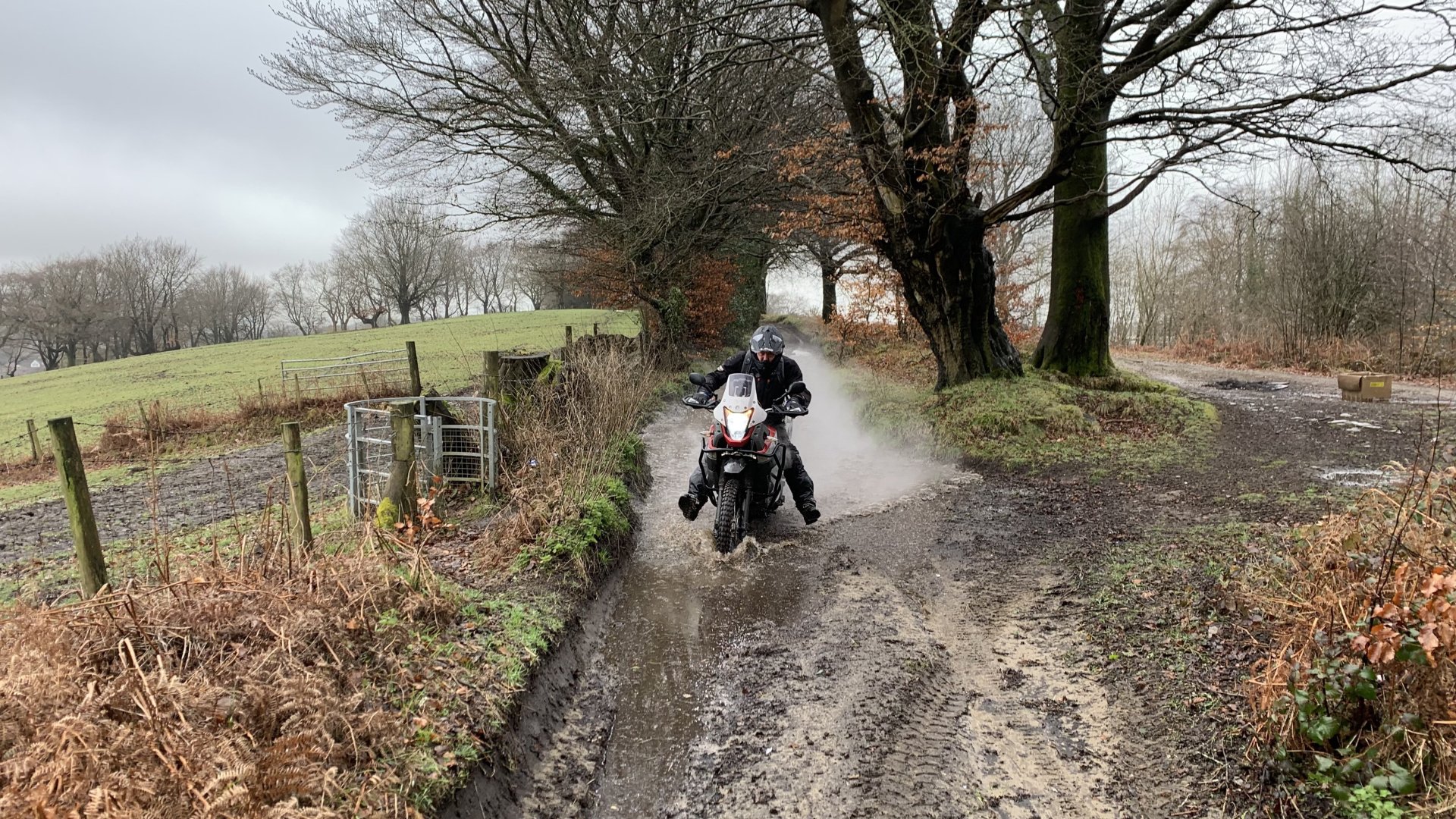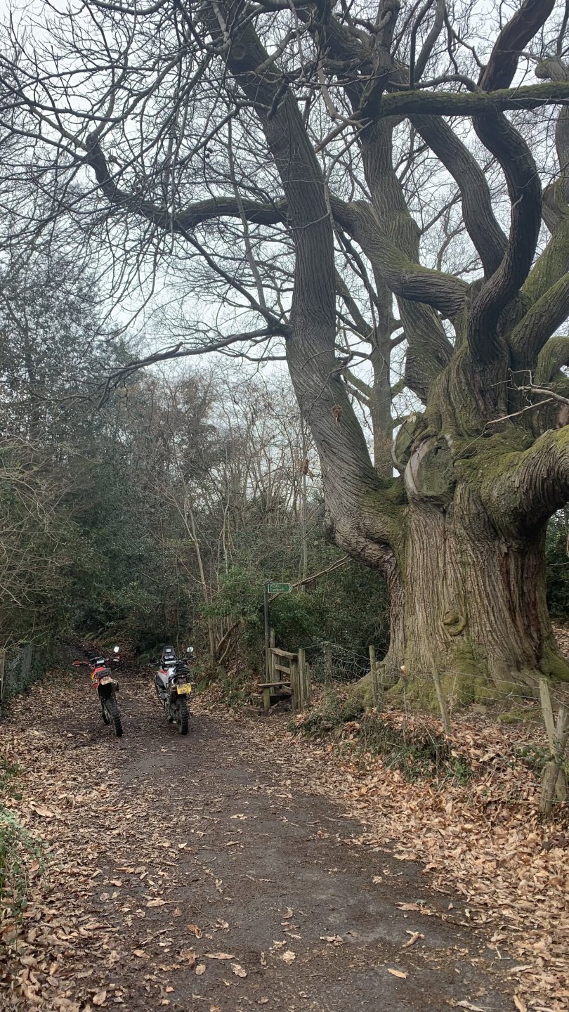 Had a gentle run on the XR today, out with a lad testing his bike out for a trip to Morocco later this year. we covered all the terrain he could encounter on his trip except warm and dry but he's an expert in wet muddy and cold now though He was close to loosing it exiting this puddle One big f off old sweet chestnut tree Damn disappointed i didn't get the whole tree in here, oh well i'll just have to go back there for a ride again.5 points