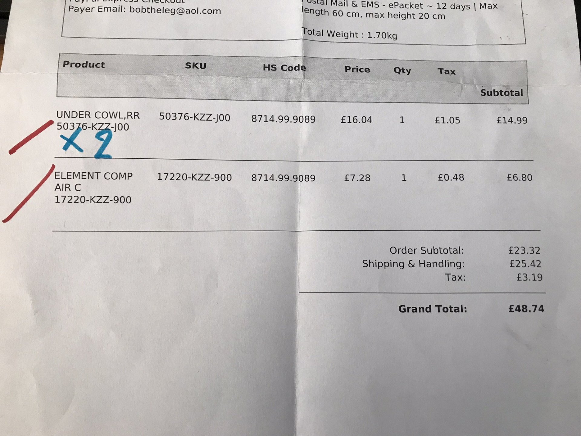Interesting you say that. My Honda is built in Thailand and I have just received (this morning) a sumpguard and air filter from Thailand , genuine Honda parts exactly the same as you would buy from any dealer in UK. Admittedly they took 12 days to get here and the shipping was £25.42 but here's the rub............. The sumpguard cost £16.04 and the air filter was £7.28, now I'll give you the prices for exactly the same parts with Honda part numbers from any Honda UK dealer, £107.74 and £26.743 points