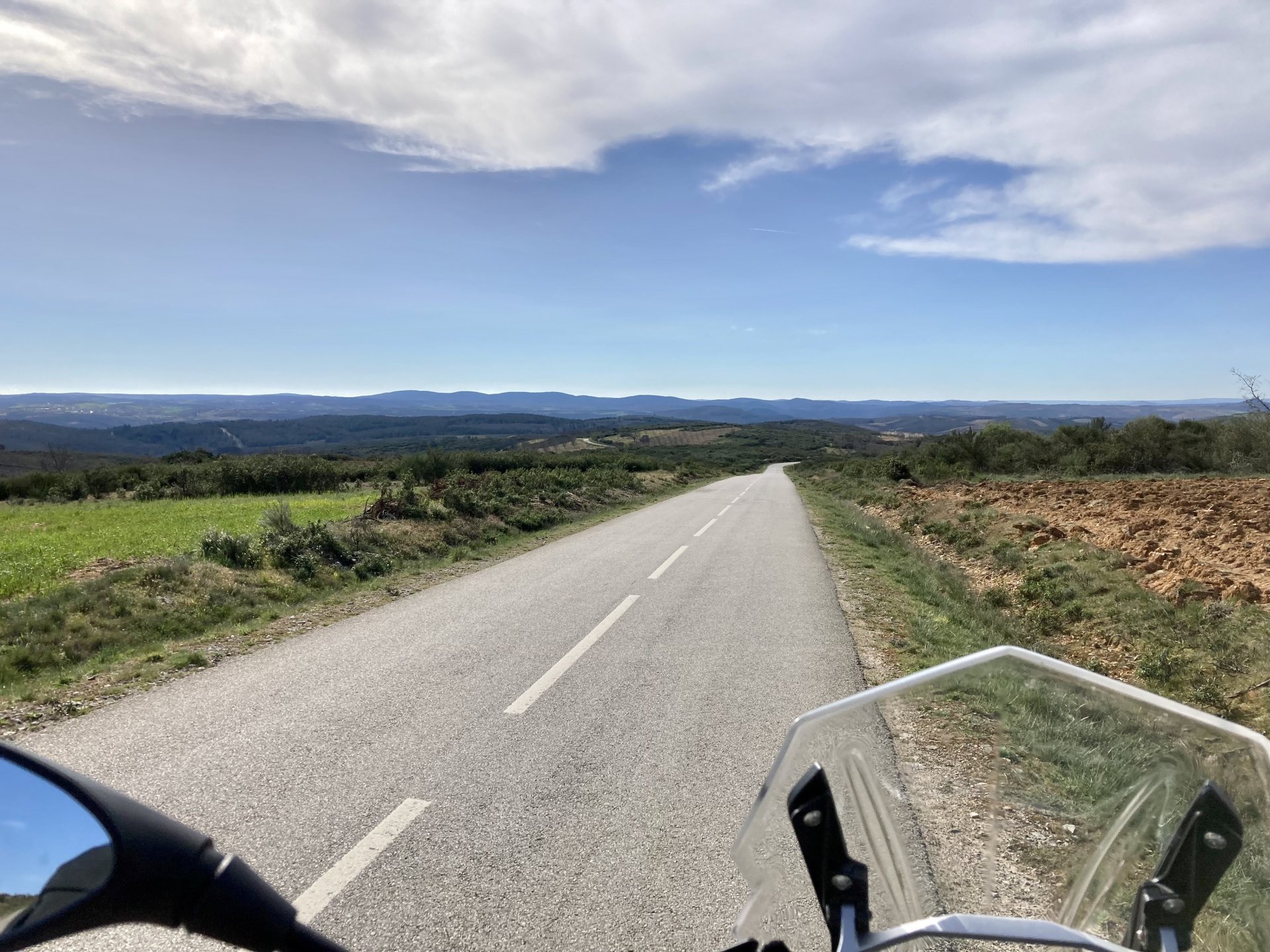 If you look at a map of Portugal and look at the north border with Spain, and follow the half of it most inland, that's where this ride will take place. I had a short meeting in a bank in Vila Nova de Gaia, and only ended up leaving well after 9:30, got on the motorway north to Braga and from there got on the small roads, took the N103 firstly heading northeast to go past the edge of the Gerês natural park with it's charming old villages, it's landscape so bucolic it feels like it's manicured by god. It's very pretty place but not one for today. This was still on monday but the start of the holly week, and Spaniards must not have saints in Spain as they all flock to Portugal, Braga being a very important catholic town is invaded by tourists so I wanted none of that. Stopped at a big shop to buy a charging cable for my phone right after Braga, and had some breakfast before setting off properly inland. A few kms after, and although the N103 is very nicely surfaced, constantly presenting series of bends that allow you to enjoy any motorcycle from the most modest to a proper fast sports bike, I got away from it and onto smaller, narrower, and twistier roads off over the hills. A brief stop near the small village of Xertelo presented me with a very typical Gerês landscape. I was surprised that I couldn't ride through the village and carry on the other side as they only allow local vehicles inside, being a protected landscape they obviously mean for you to enjoy the place with no cars driving around, so I took a short stroll around before returning the one or two kms back to the main secondary road : Back on and shortly after I needed a pee, so got 50 meters off the road and came upon this place: A brief phone conversation had me stop to check some stuff on my phone and call someone back, while I talk the cows arrived back at their field and maybe one car drove past, this is quiet living here: The weather wasn't warm, but it wasn't cold either, the sky was very much overcast which ruins some of the pictures as everything looks like it should when it has a blue sky above. Arrived at Montalegre (translated to HappyHill), and stopped by the castle for a visit, I had never been here before and it is worthy of a stop. This place also marks the end of the typical Minho landscape and suddenly it feels more Tras os Montes, it's a place of harsh weather, lots of cold and ice, high winds, stone houses and hard people with tough lives, it feels epic and ancient too, and VERY different to the south. Montalegre has a beautifully fixed up castle worthy of a stop. It's on the border of Portugal and obviously served an important purpose in defending territory back in 1273, when it was firstly built. The tower came later, and sadly it was closed on my visit so had to stick to climbing one of the walls. Some of the castles I've visited don't really mind safety and you climb up and down walls along narrow uneven stone steps with a drop to one side and a wall to the other, here and probably being visited by lots of spaniards they made it tourist friendly with proper steps and rails. I could do with a stop for a snack but most of the restaurants were closed, I didn't feel like properly sitting down in a restaurant and having a proper lunch and couldn't find a place with seating outside, so moved on. Exiting Montalegre, I like the mix of very well kept old stone houses and the modern underground recycling bins: Traffic jam in Montalegre At around 2PM, I stopped at a small village, and got into a cafe to ask for a sandwich. Took a picture while the kind sir thinly sliced some presunto (raw bacon to you all), and made me a deliciously simple small sandwich. The cafe owner was very surprised I didn't go for his recommendation of going to the local restaurant and "eating properly", a proper Trasmontano lunch would invalidate riding in the afternoon I ate outside while chatting to an older gentleman, no pictures as the camera would have ruined the moment. For @yen_powell, a church and a cemetery I rode on heading East always quite close to the border, and mostly away from main roads. Another stop for a call: I intended on not stopping for pictures except in places where I actually stopped for whatever reason, but this made me stop and get off the bike for a picture of the road ahead, just to have the location saved when looking for it in the future, the surface could maybe do with a refresh but it had character, and if you look at the picture below you'll surely see what I like about this Another stop for urination, on an amazing location: I intended to stay for a while to enjoy the place and the river sounds but started to get swarmed with mosquitoes so went away. Instead stopped in Vinhais to have an espresso and figure out where to sleep. It was past 16:30 when I stopped in Vinhais, while enjoying my coffee I looked on google maps and found a few locations close by, all that interested me were either booked or didn't rent for just one night stay. Doesn't matter, I decided to carry on small roads and stop later at Bragança. The roads though the Montesinho (little hill) Natural Park (https://goo.gl/maps/nDo8TfSDmuXbK8Lz7) are gorgeous. Most of it is old chestnut tree forests, and it feels amazingly old like you could expect to see a night riding though on horseback, it feels like 3 or 500 years ago, but I feel like pictures didn't make the place justice, you loose a lot of the naked trees with the grey sky we had. I'll have to come back in prettier light, and I'm sure it's a great place to visit when the leaves are changing and in chestnut season. Bragança is the capital city of Tras os Montes, it's got a castle, an historic center, but I got a little fed up with it. Rode up to a hotel with underground parking for the bike, and stood in a line after 3 or 4 spaniards in front, the guy at the check in desk didn't seem to get a move on, that clearly wasn't for me so I walked out, phoned a small rural place in a villag