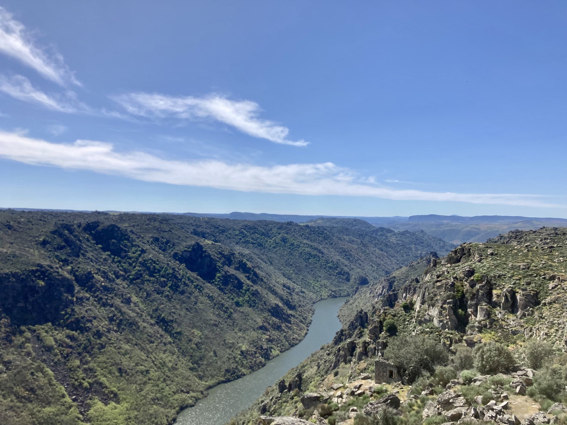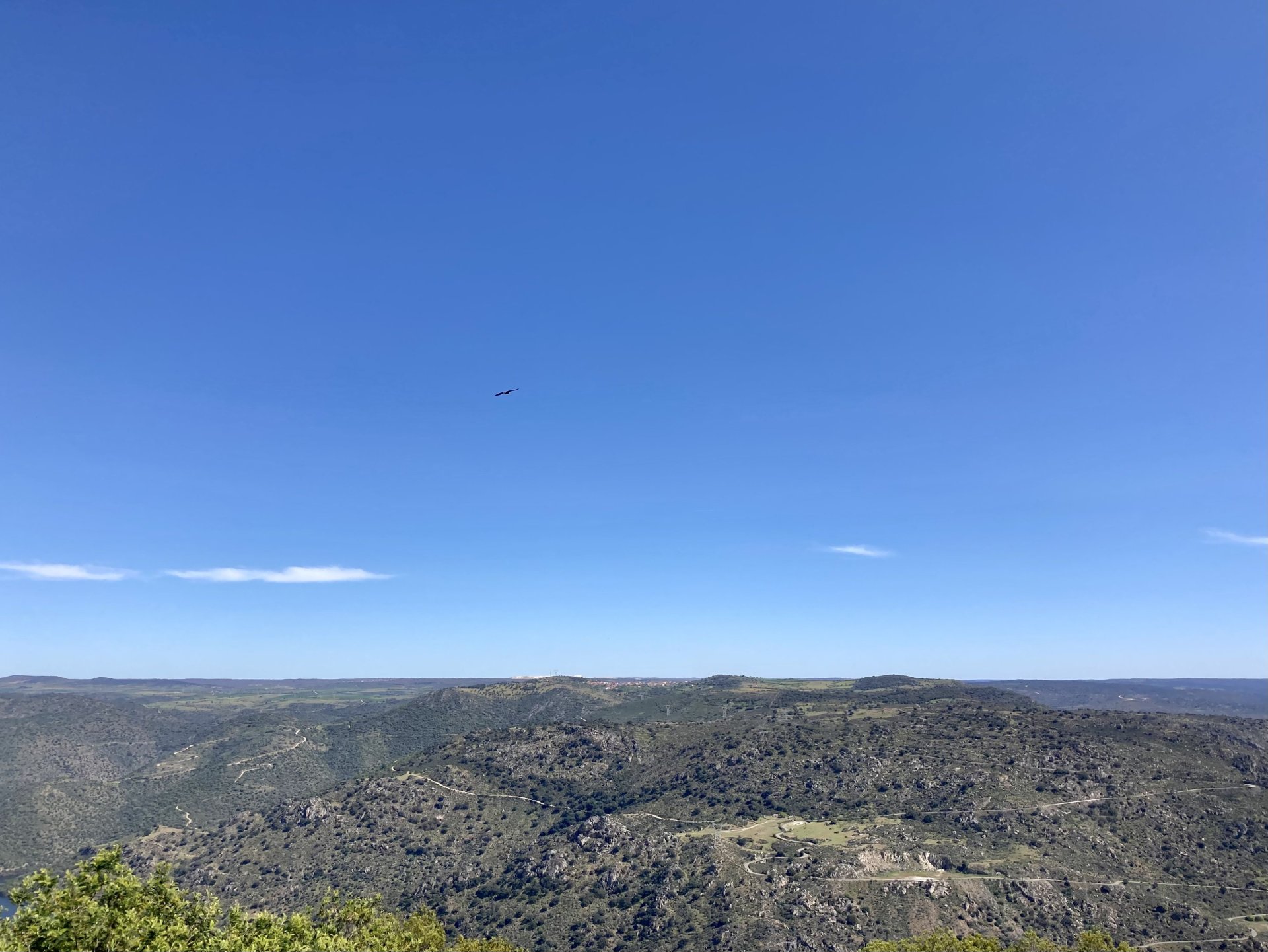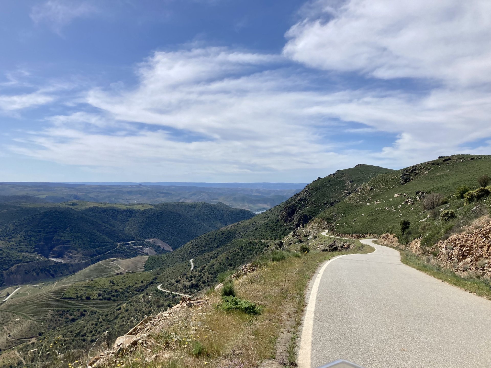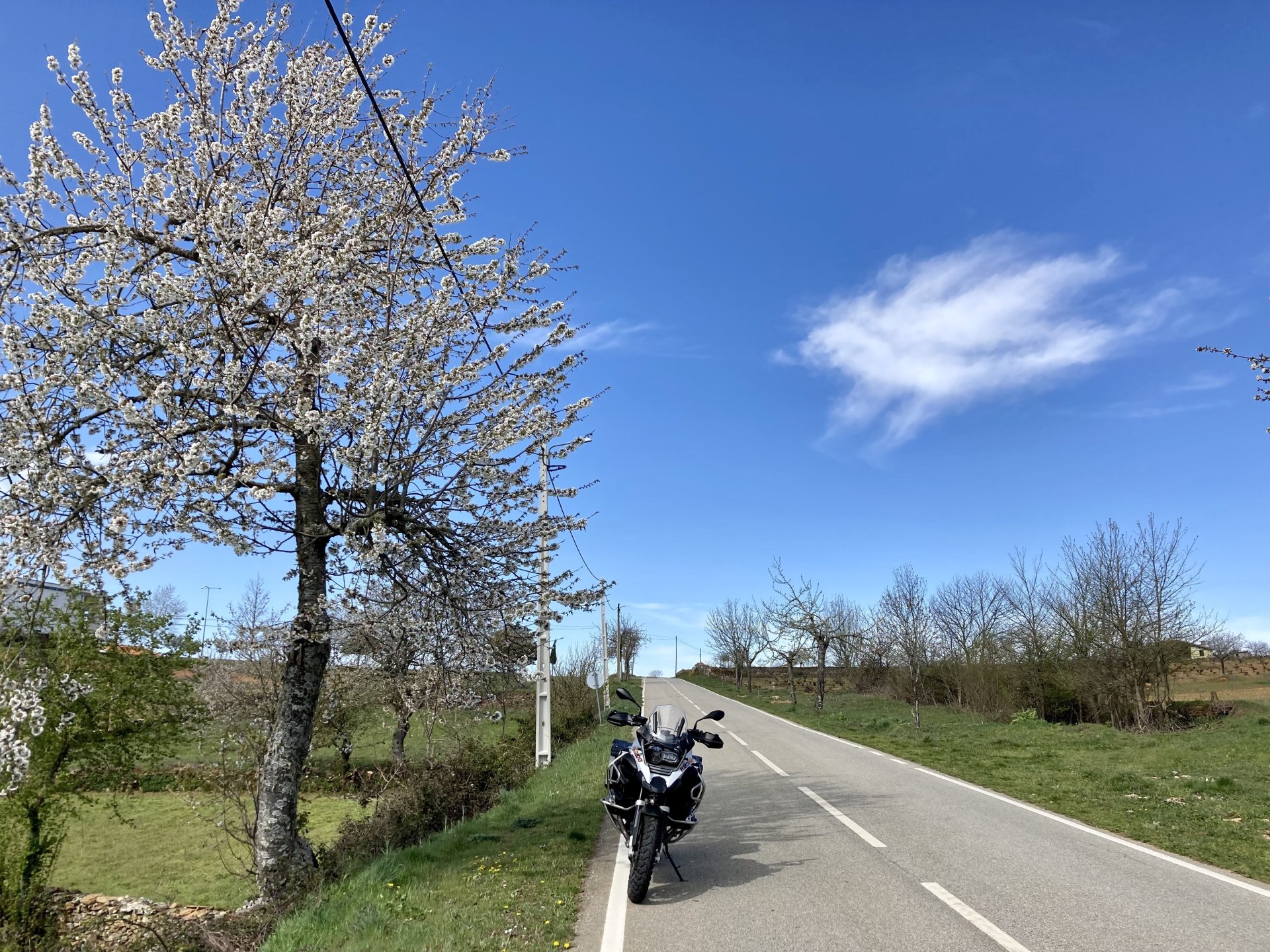 I woke up a little hungover, but quickly made progress, not wanting to waste the morning and with a big motorcycle day ahead. Finished my emails, had a nice shower, and enjoyed breakfast, the work then called me back and turns out it was about 09:30 by the time I was leaving. It was a coldish morning, temperatures were maybe around 7 or 8ºC until about 10AM, maybe later, but it felt way colder than that. Felt like even when stopped the wind was freezing cold. The roads were perfect, and I followed the border Lots of trees in bloom, the camera on my phone doesn't do them justice. I didn't even stop in Miranda do Douro, although it is a charming town ideal for a stroll around and a coffee it had quite a few cars and I didn't feel like putting up with a crowd. Even saw a few british plated bikes, clearly making the best of the beautiful day. I rode south, back south and heading all the way to Ericeira to meet up with Sofia, which is very far away and feels world's apart. Stopped in one of the coolest Douro viewpoints for a few minutes, before lunch: I thought my head was hurting from the previous day's excess drinking, but it was getting worse regardless of water drinking, and then I started getting this painful feeling in my sinus, it finally hit me that it was all the trees in bloom causing my hay fever to go wild. Quick stop by the pharmacy in Freixo de Espada à Cinta, got a few pills for that specifically as my nasal spray wasn't cutting it, and after a lunch sandwich I took a couple. Rode up to spend a while enjoying the views at Penedo Durão, so got there, took a few pictures and sat down for a while. The clean air and pills made their magic and I was already feeling a lot better. The vultures and griffons are amazing to watch, in person you can really see how big they are. Time to go, and head down to the river, but first via possibly the dirt road with the best view in Portugal that I know off: Last time I was here this road was more like a wide trail, seems like someone brough a proper machine and widened and flattened it. I hope they don't tarmac it, it would be a shame. It leads to this: Further south and after a few kms of a really nice twisty part of the N221, I take my final stop before pointing the GS south and jump on a motorway. Got to love my country where you're on a nice small tarmac road, follow a detour along a dirt road indicating "national monument" and end up riding down this. As always, it feels flat on a picture: The national monument was an old stone bridge with the ruins of a water mill next to it. It's an idilic location It was now 15:15, and the GS made it to Ericeira, a 4,5 hour trip according to google maps, by 19:00, including a small detour to buy the dogs a toy. Google maps indicates 470km between Freixo de Espada à Cinta (where I fueled up), and Ericeira, I took a little detour to go see the views, the dirt road, etc, and still made it to Ericeira without the fuel reserve light lighting, I love this bike.6 points