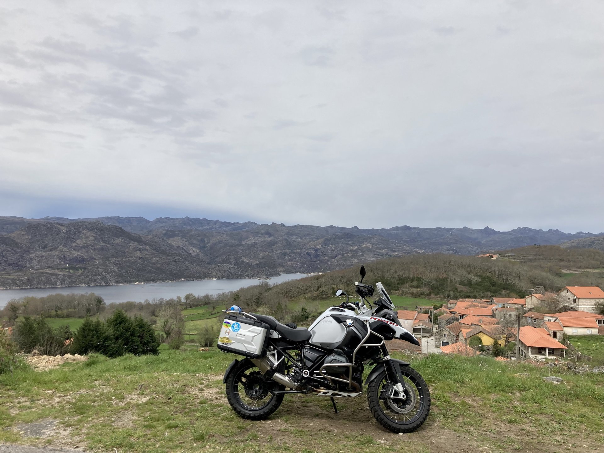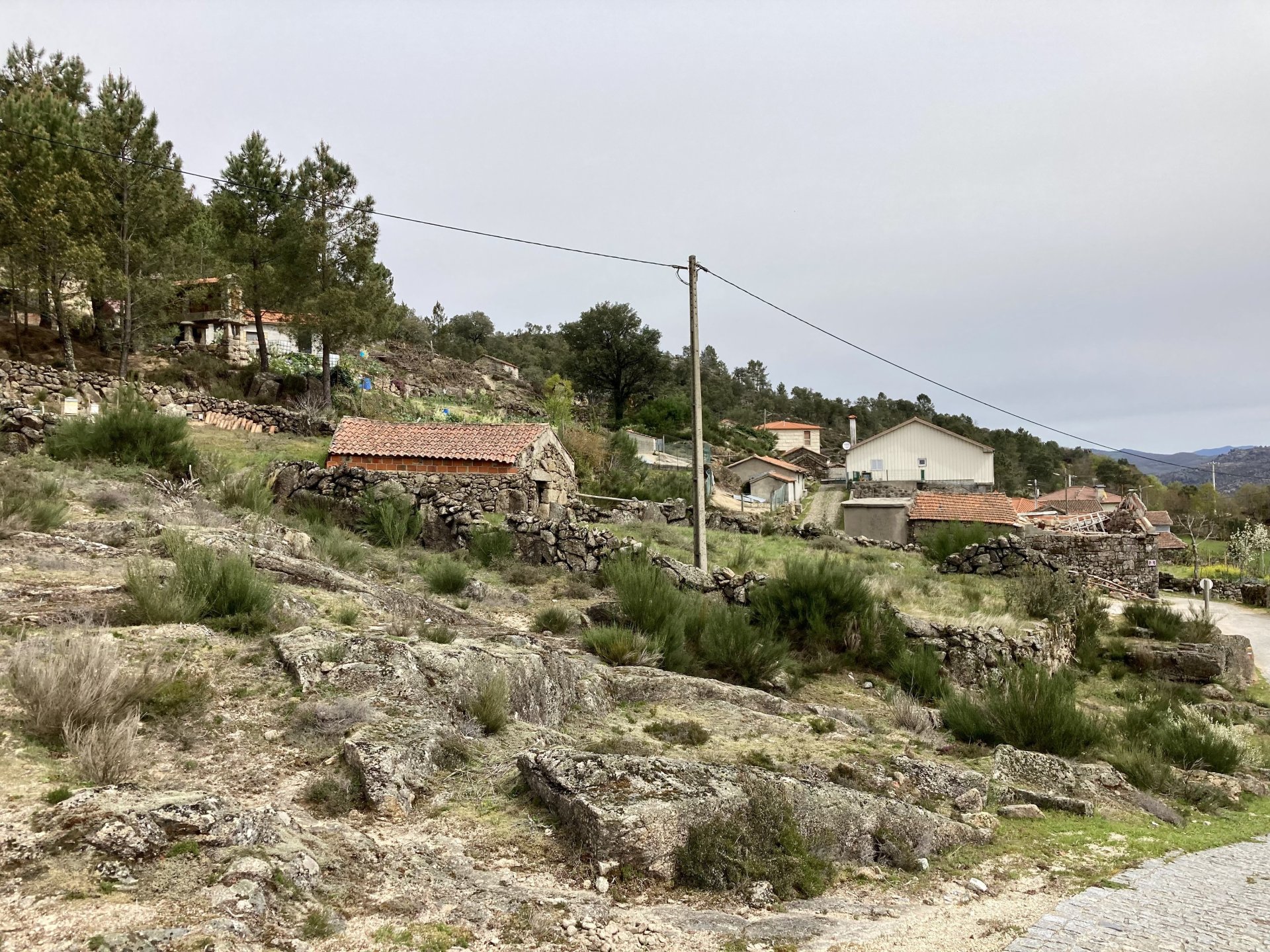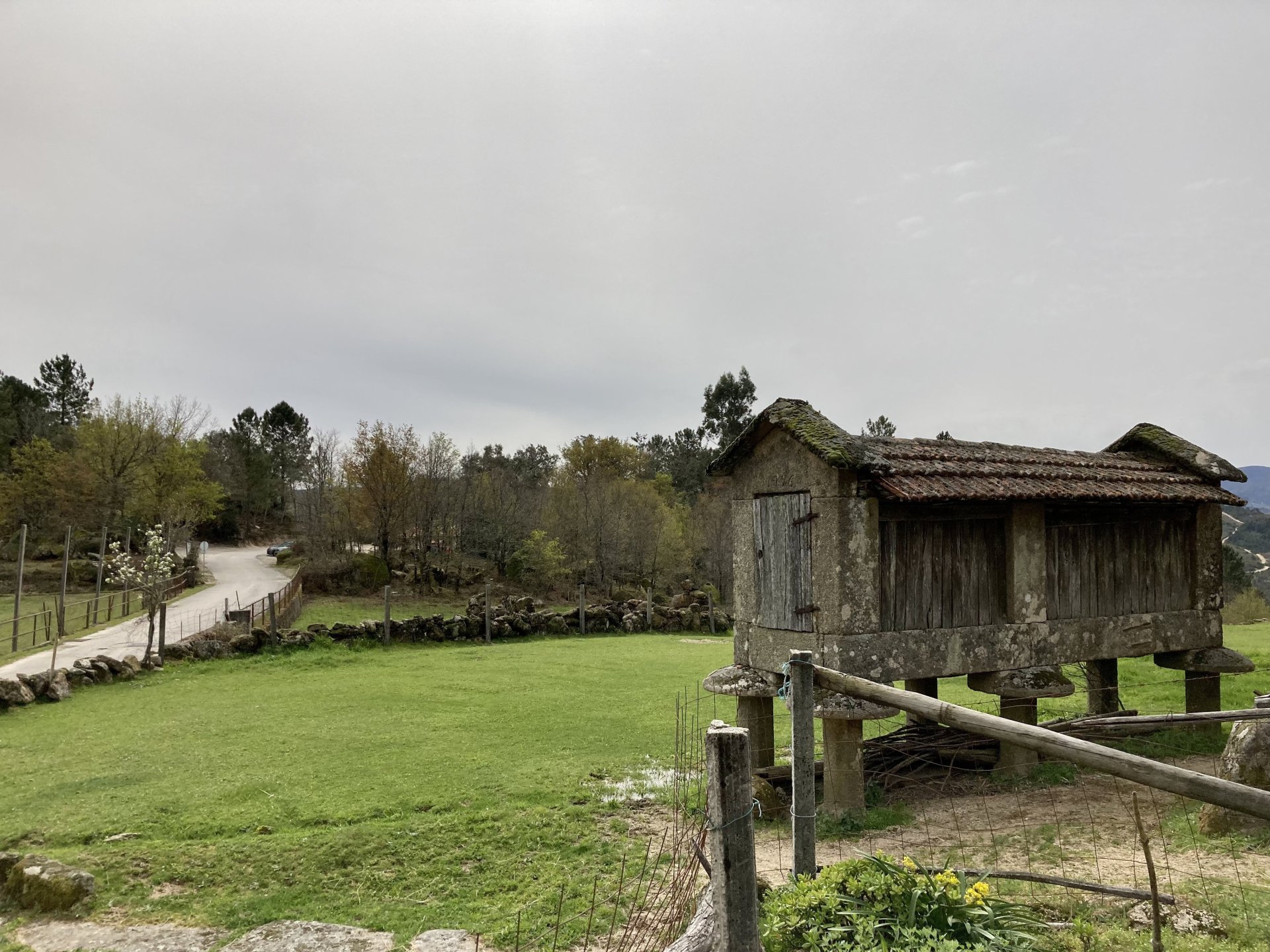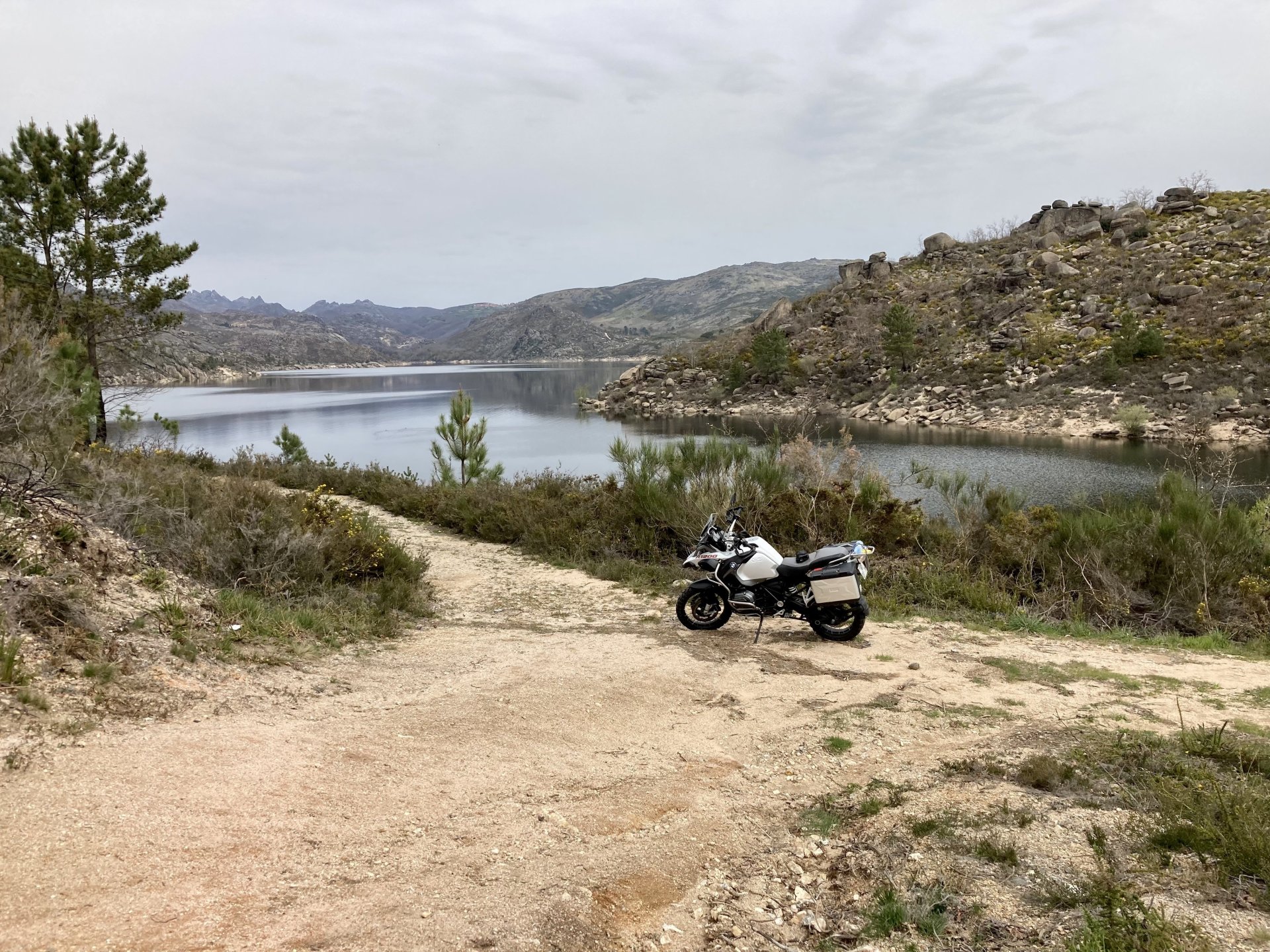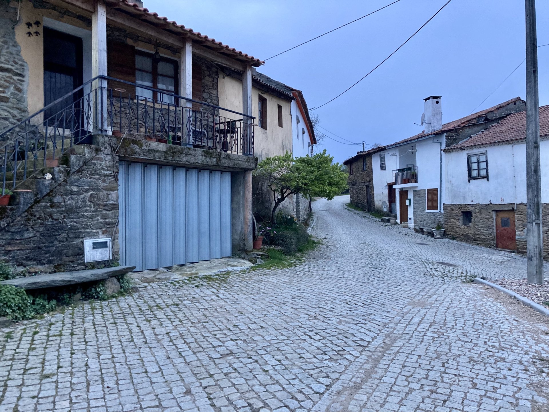If you look at a map of Portugal and look at the north border with Spain, and follow the half of it most inland, that's where this ride will take place. I had a short meeting in a bank in Vila Nova de Gaia, and only ended up leaving well after 9:30, got on the motorway north to Braga and from there got on the small roads, took the N103 firstly heading northeast to go past the edge of the Gerês natural park with it's charming old villages, it's landscape so bucolic it feels like it's manicured by god. It's very pretty place but not one for today. This was still on monday but the start of the holly week, and Spaniards must not have saints in Spain as they all flock to Portugal, Braga being a very important catholic town is invaded by tourists so I wanted none of that. Stopped at a big shop to buy a charging cable for my phone right after Braga, and had some breakfast before setting off properly inland. A few kms after, and although the N103 is very nicely surfaced, constantly presenting series of bends that allow you to enjoy any motorcycle from the most modest to a proper fast sports bike, I got away from it and onto smaller, narrower, and twistier roads off over the hills. A brief stop near the small village of Xertelo presented me with a very typical Gerês landscape. I was surprised that I couldn't ride through the village and carry on the other side as they only allow local vehicles inside, being a protected landscape they obviously mean for you to enjoy the place with no cars driving around, so I took a short stroll around before returning the one or two kms back to the main secondary road : Back on and shortly after I needed a pee, so got 50 meters off the road and came upon this place: A brief phone conversation had me stop to check some stuff on my phone and call someone back, while I talk the cows arrived back at their field and maybe one car drove past, this is quiet living here: The weather wasn't warm, but it wasn't cold either, the sky was very much overcast which ruins some of the pictures as everything looks like it should when it has a blue sky above. Arrived at Montalegre (translated to HappyHill), and stopped by the castle for a visit, I had never been here before and it is worthy of a stop. This place also marks the end of the typical Minho landscape and suddenly it feels more Tras os Montes, it's a place of harsh weather, lots of cold and ice, high winds, stone houses and hard people with tough lives, it feels epic and ancient too, and VERY different to the south. Montalegre has a beautifully fixed up castle worthy of a stop. It's on the border of Portugal and obviously served an important purpose in defending territory back in 1273, when it was firstly built. The tower came later, and sadly it was closed on my visit so had to stick to climbing one of the walls. Some of the castles I've visited don't really mind safety and you climb up and down walls along narrow uneven stone steps with a drop to one side and a wall to the other, here and probably being visited by lots of spaniards they made it tourist friendly with proper steps and rails. I could do with a stop for a snack but most of the restaurants were closed, I didn't feel like properly sitting down in a restaurant and having a proper lunch and couldn't find a place with seating outside, so moved on. Exiting Montalegre, I like the mix of very well kept old stone houses and the modern underground recycling bins: Traffic jam in Montalegre At around 2PM, I stopped at a small village, and got into a cafe to ask for a sandwich. Took a picture while the kind sir thinly sliced some presunto (raw bacon to you all), and made me a deliciously simple small sandwich. The cafe owner was very surprised I didn't go for his recommendation of going to the local restaurant and "eating properly", a proper Trasmontano lunch would invalidate riding in the afternoon I ate outside while chatting to an older gentleman, no pictures as the camera would have ruined the moment. For @yen_powell, a church and a cemetery I rode on heading East always quite close to the border, and mostly away from main roads. Another stop for a call: I intended on not stopping for pictures except in places where I actually stopped for whatever reason, but this made me stop and get off the bike for a picture of the road ahead, just to have the location saved when looking for it in the future, the surface could maybe do with a refresh but it had character, and if you look at the picture below you'll surely see what I like about this Another stop for urination, on an amazing location: I intended to stay for a while to enjoy the place and the river sounds but started to get swarmed with mosquitoes so went away. Instead stopped in Vinhais to have an espresso and figure out where to sleep. It was past 16:30 when I stopped in Vinhais, while enjoying my coffee I looked on google maps and found a few locations close by, all that interested me were either booked or didn't rent for just one night stay. Doesn't matter, I decided to carry on small roads and stop later at Bragança. The roads though the Montesinho (little hill) Natural Park (https://goo.gl/maps/nDo8TfSDmuXbK8Lz7) are gorgeous. Most of it is old chestnut tree forests, and it feels amazingly old like you could expect to see a night riding though on horseback, it feels like 3 or 500 years ago, but I feel like pictures didn't make the place justice, you loose a lot of the naked trees with the grey sky we had. I'll have to come back in prettier light, and I'm sure it's a great place to visit when the leaves are changing and in chestnut season. Bragança is the capital city of Tras os Montes, it's got a castle, an historic center, but I got a little fed up with it. Rode up to a hotel with underground parking for the bike, and stood in a line after 3 or 4 spaniards in front, the guy at the check in desk didn't seem to get a move on, that clearly wasn't for me so I walked out, phoned a small rural place in a villag
