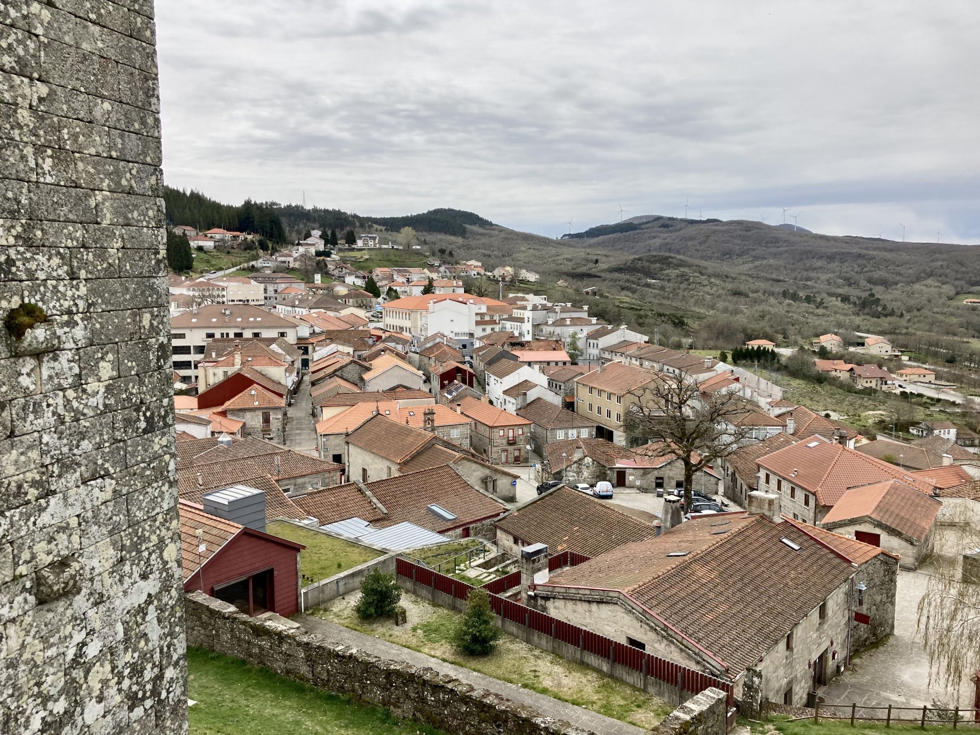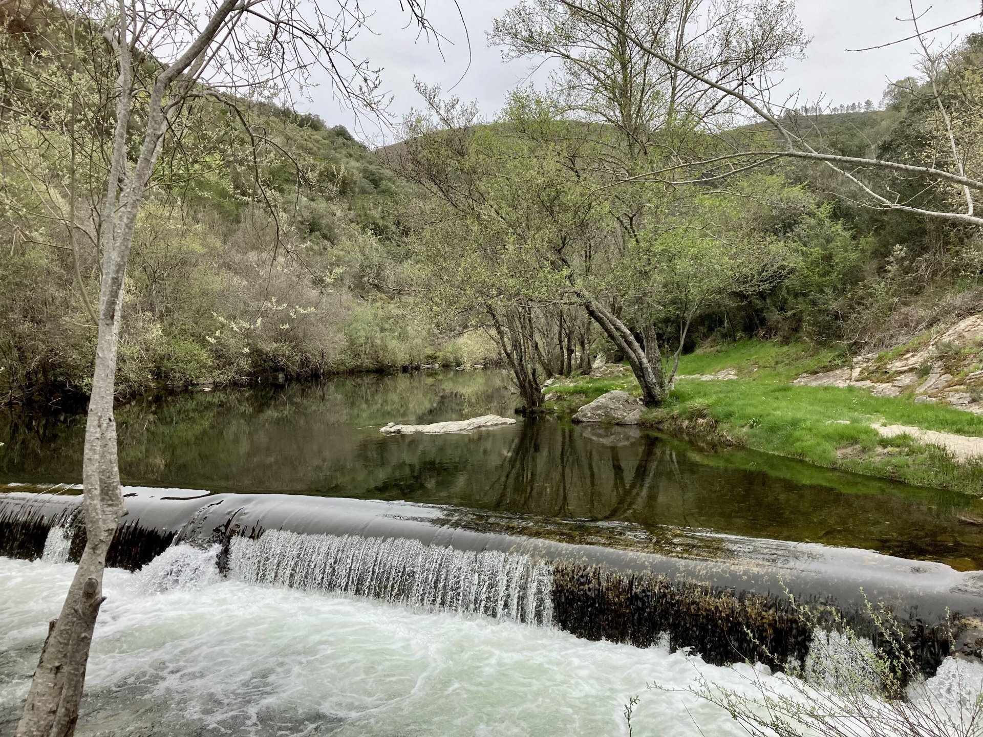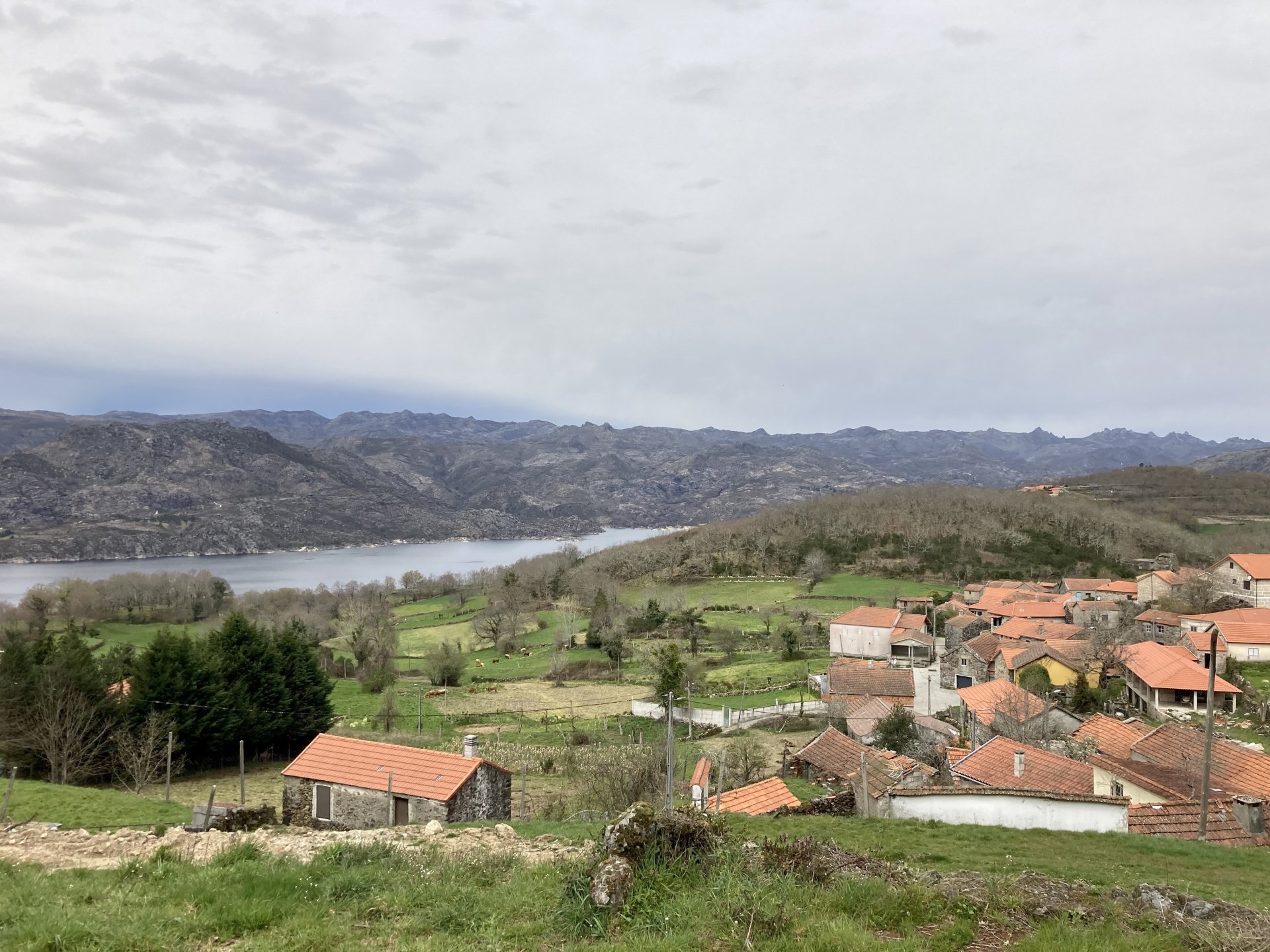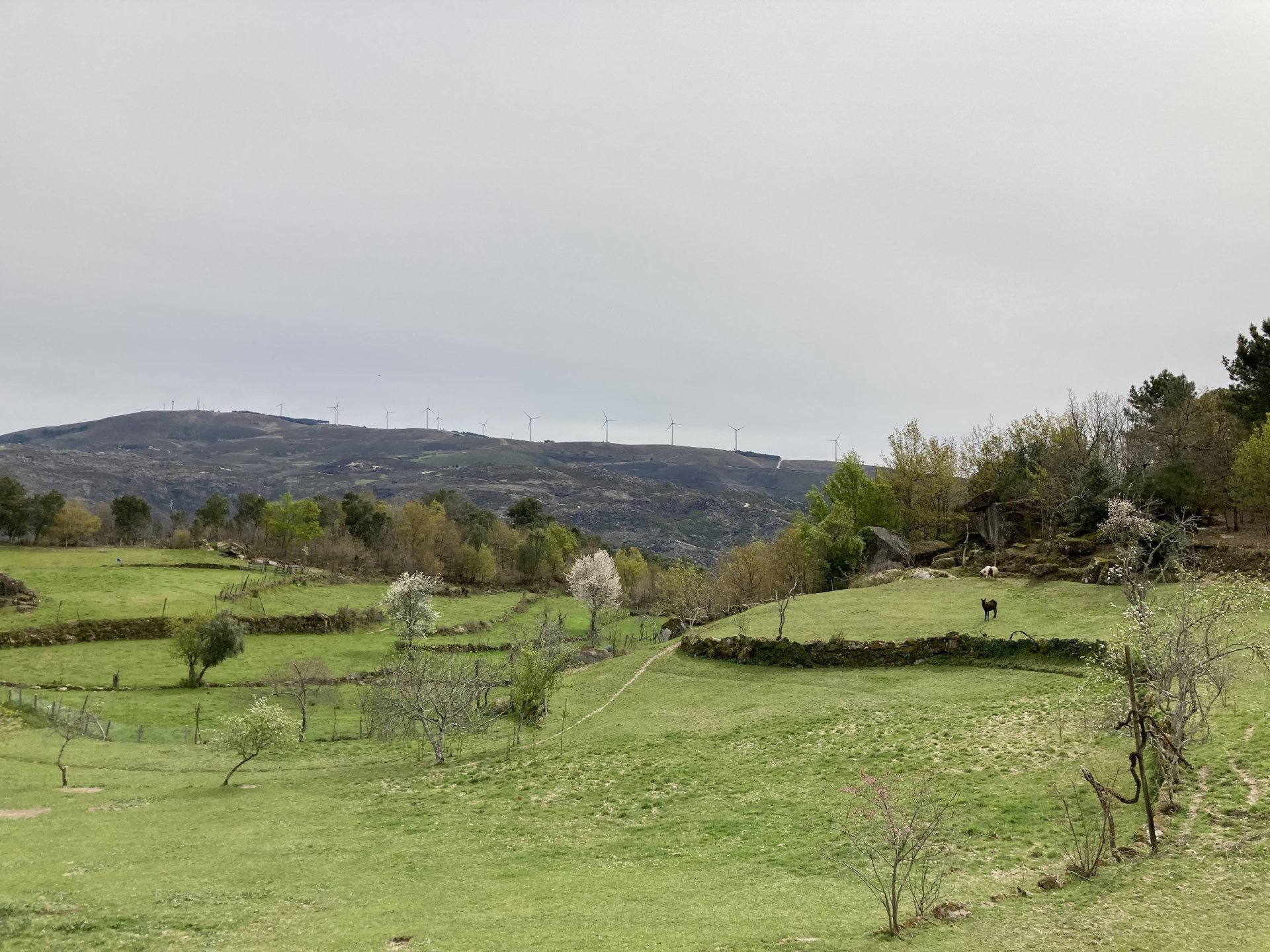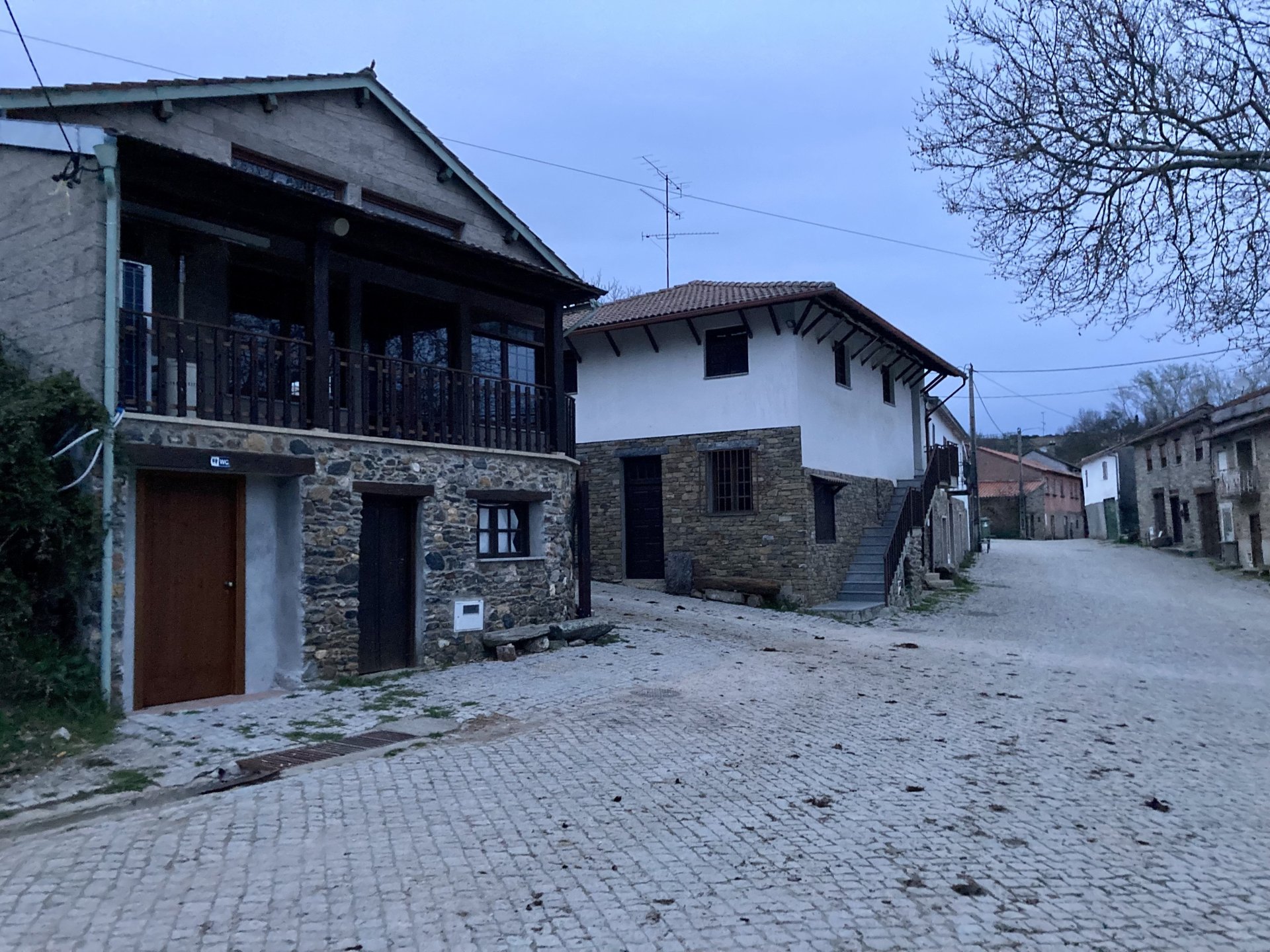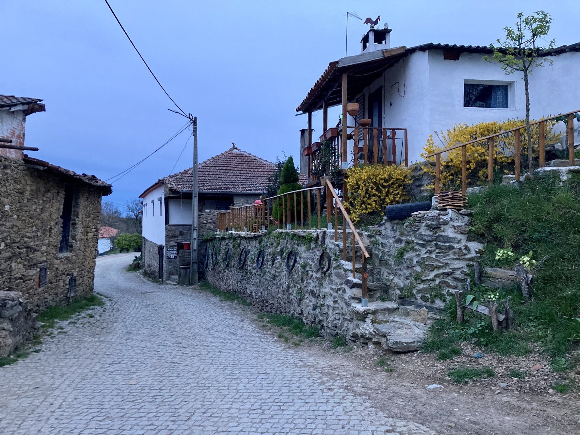 If you look at a map of Portugal and look at the north border with Spain, and follow the half of it most inland, that's where this ride will take place. I had a short meeting in a bank in Vila Nova de Gaia, and only ended up leaving well after 9:30, got on the motorway north to Braga and from there got on the small roads, took the N103 firstly heading northeast to go past the edge of the Gerês natural park with it's charming old villages, it's landscape so bucolic it feels like it's manicured by god. It's very pretty place but not one for today. This was still on monday but the start of the holly week, and Spaniards must not have saints in Spain as they all flock to Portugal, Braga being a very important catholic town is invaded by tourists so I wanted none of that. Stopped at a big shop to buy a charging cable for my phone right after Braga, and had some breakfast before setting off properly inland. A few kms after, and although the N103 is very nicely surfaced, constantly presenting series of bends that allow you to enjoy any motorcycle from the most modest to a proper fast sports bike, I got away from it and onto smaller, narrower, and twistier roads off over the hills. A brief stop near the small village of Xertelo presented me with a very typical Gerês landscape. I was surprised that I couldn't ride through the village and carry on the other side as they only allow local vehicles inside, being a protected landscape they obviously mean for you to enjoy the place with no cars driving around, so I took a short stroll around before returning the one or two kms back to the main secondary road : Back on and shortly after I needed a pee, so got 50 meters off the road and came upon this place: A brief phone conversation had me stop to check some stuff on my phone and call someone back, while I talk the cows arrived back at their field and maybe one car drove past, this is quiet living here: The weather wasn't warm, but it wasn't cold either, the sky was very much overcast which ruins some of the pictures as everything looks like it should when it has a blue sky above. Arrived at Montalegre (translated to HappyHill), and stopped by the castle for a visit, I had never been here before and it is worthy of a stop. This place also marks the end of the typical Minho landscape and suddenly it feels more Tras os Montes, it's a place of harsh weather, lots of cold and ice, high winds, stone houses and hard people with tough lives, it feels epic and ancient too, and VERY different to the south. Montalegre has a beautifully fixed up castle worthy of a stop. It's on the border of Portugal and obviously served an important purpose in defending territory back in 1273, when it was firstly built. The tower came later, and sadly it was closed on my visit so had to stick to climbing one of the walls. Some of the castles I've visited don't really mind safety and you climb up and down walls along narrow uneven stone steps with a drop to one side and a wall to the other, here and probably being visited by lots of spaniards they made it tourist friendly with proper steps and rails. I could do with a stop for a snack but most of the restaurants were closed, I didn't feel like properly sitting down in a restaurant and having a proper lunch and couldn't find a place with seating outside, so moved on. Exiting Montalegre, I like the mix of very well kept old stone houses and the modern underground recycling bins: Traffic jam in Montalegre At around 2PM, I stopped at a small village, and got into a cafe to ask for a sandwich. Took a picture while the kind sir thinly sliced some presunto (raw bacon to you all), and made me a deliciously simple small sandwich. The cafe owner was very surprised I didn't go for his recommendation of going to the local restaurant and "eating properly", a proper Trasmontano lunch would invalidate riding in the afternoon I ate outside while chatting to an older gentleman, no pictures as the camera would have ruined the moment. For @yen_powell, a church and a cemetery I rode on heading East always quite close to the border, and mostly away from main roads. Another stop for a call: I intended on not stopping for pictures except in places where I actually stopped for whatever reason, but this made me stop and get off the bike for a picture of the road ahead, just to have the location saved when looking for it in the future, the surface could maybe do with a refresh but it had character, and if you look at the picture below you'll surely see what I like about this Another stop for urination, on an amazing location: I intended to stay for a while to enjoy the place and the river sounds but started to get swarmed with mosquitoes so went away. Instead stopped in Vinhais to have an espresso and figure out where to sleep. It was past 16:30 when I stopped in Vinhais, while enjoying my coffee I looked on google maps and found a few locations close by, all that interested me were either booked or didn't rent for just one night stay. Doesn't matter, I decided to carry on small roads and stop later at Bragança. The roads though the Montesinho (little hill) Natural Park (https://goo.gl/maps/nDo8TfSDmuXbK8Lz7) are gorgeous. Most of it is old chestnut tree forests, and it feels amazingly old like you could expect to see a night riding though on horseback, it feels like 3 or 500 years ago, but I feel like pictures didn't make the place justice, you loose a lot of the naked trees with the grey sky we had. I'll have to come back in prettier light, and I'm sure it's a great place to visit when the leaves are changing and in chestnut season. Bragança is the capital city of Tras os Montes, it's got a castle, an historic center, but I got a little fed up with it. Rode up to a hotel with underground parking for the bike, and stood in a line after 3 or 4 spaniards in front, the guy at the check in desk didn't seem to get a move on, that clearly wasn't for me so I walked out, phoned a small rural place in a villag