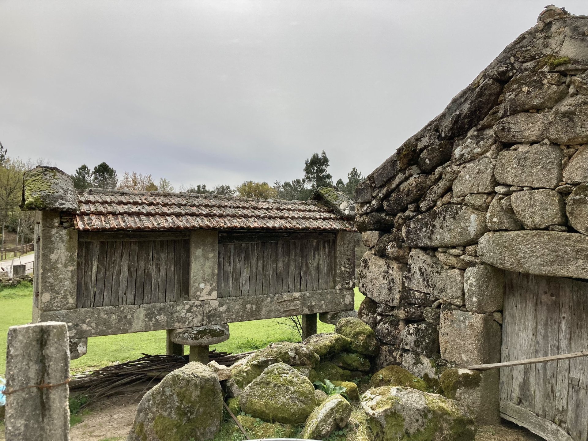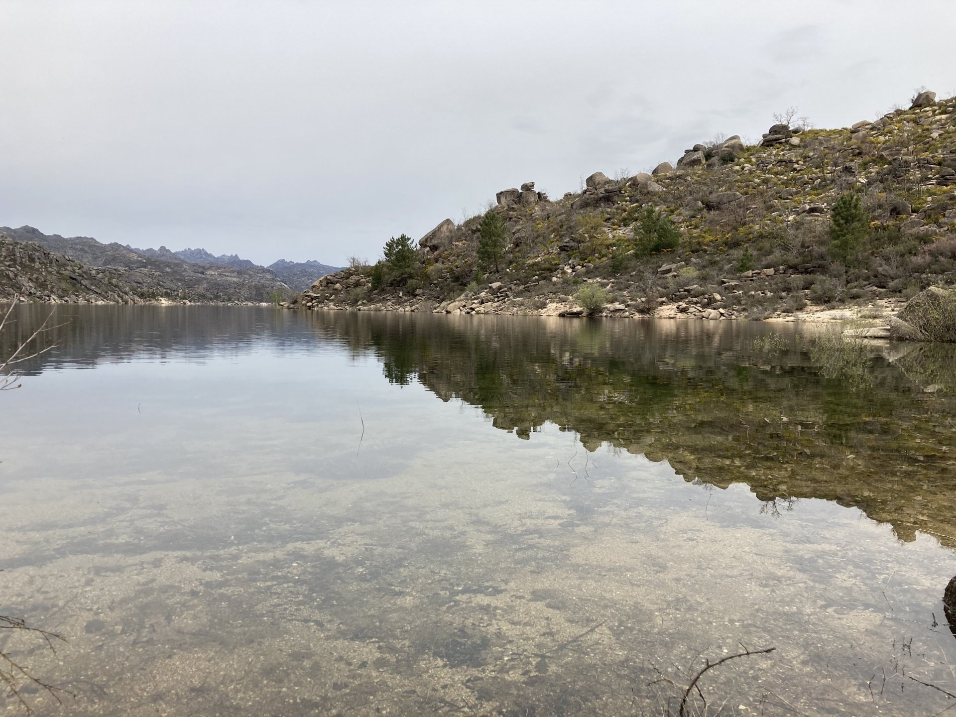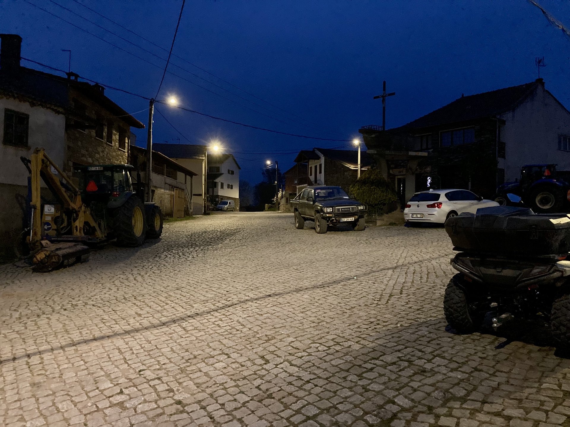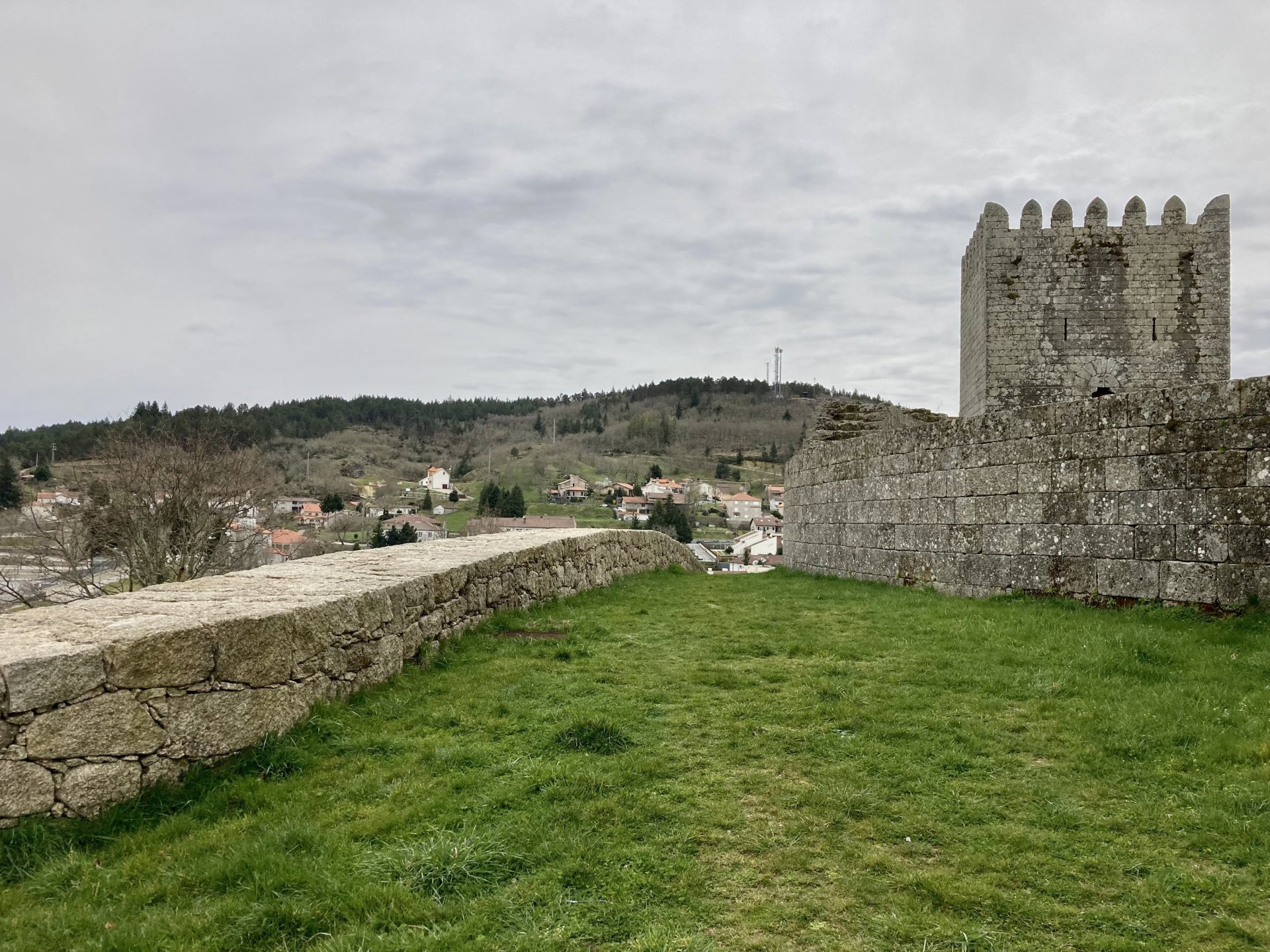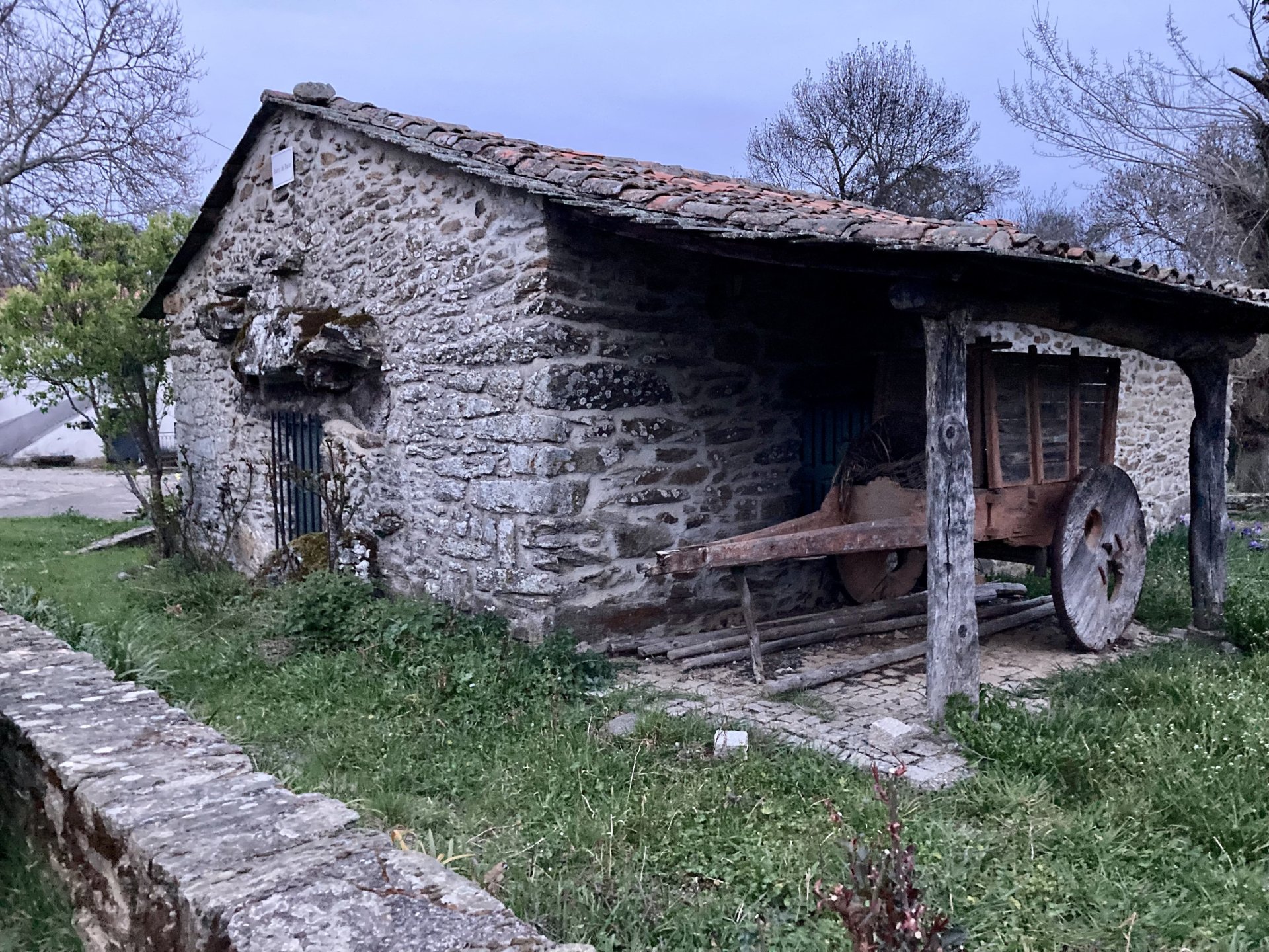 If you look at a map of Portugal and look at the north border with Spain, and follow the half of it most inland, that's where this ride will take place. I had a short meeting in a bank in Vila Nova de Gaia, and only ended up leaving well after 9:30, got on the motorway north to Braga and from there got on the small roads, took the N103 firstly heading northeast to go past the edge of the Gerês natural park with it's charming old villages, it's landscape so bucolic it feels like it's manicured by god. It's very pretty place but not one for today. This was still on monday but the start of the holly week, and Spaniards must not have saints in Spain as they all flock to Portugal, Braga being a very important catholic town is invaded by tourists so I wanted none of that. Stopped at a big shop to buy a charging cable for my phone right after Braga, and had some breakfast before setting off properly inland. A few kms after, and although the N103 is very nicely surfaced, constantly presenting series of bends that allow you to enjoy any motorcycle from the most modest to a proper fast sports bike, I got away from it and onto smaller, narrower, and twistier roads off over the hills. A brief stop near the small village of Xertelo presented me with a very typical Gerês landscape. I was surprised that I couldn't ride through the village and carry on the other side as they only allow local vehicles inside, being a protected landscape they obviously mean for you to enjoy the place with no cars driving around, so I took a short stroll around before returning the one or two kms back to the main secondary road : Back on and shortly after I needed a pee, so got 50 meters off the road and came upon this place: A brief phone conversation had me stop to check some stuff on my phone and call someone back, while I talk the cows arrived back at their field and maybe one car drove past, this is quiet living here: The weather wasn't warm, but it wasn't cold either, the sky was very much overcast which ruins some of the pictures as everything looks like it should when it has a blue sky above. Arrived at Montalegre (translated to HappyHill), and stopped by the castle for a visit, I had never been here before and it is worthy of a stop. This place also marks the end of the typical Minho landscape and suddenly it feels more Tras os Montes, it's a place of harsh weather, lots of cold and ice, high winds, stone houses and hard people with tough lives, it feels epic and ancient too, and VERY different to the south. Montalegre has a beautifully fixed up castle worthy of a stop. It's on the border of Portugal and obviously served an important purpose in defending territory back in 1273, when it was firstly built. The tower came later, and sadly it was closed on my visit so had to stick to climbing one of the walls. Some of the castles I've visited don't really mind safety and you climb up and down walls along narrow uneven stone steps with a drop to one side and a wall to the other, here and probably being visited by lots of spaniards they made it tourist friendly with proper steps and rails. I could do with a stop for a snack but most of the restaurants were closed, I didn't feel like properly sitting down in a restaurant and having a proper lunch and couldn't find a place with seating outside, so moved on. Exiting Montalegre, I like the mix of very well kept old stone houses and the modern underground recycling bins: Traffic jam in Montalegre At around 2PM, I stopped at a small village, and got into a cafe to ask for a sandwich. Took a picture while the kind sir thinly sliced some presunto (raw bacon to you all), and made me a deliciously simple small sandwich. The cafe owner was very surprised I didn't go for his recommendation of going to the local restaurant and "eating properly", a proper Trasmontano lunch would invalidate riding in the afternoon I ate outside while chatting to an older gentleman, no pictures as the camera would have ruined the moment. For @yen_powell, a church and a cemetery I rode on heading East always quite close to the border, and mostly away from main roads. Another stop for a call: I intended on not stopping for pictures except in places where I actually stopped for whatever reason, but this made me stop and get off the bike for a picture of the road ahead, just to have the location saved when looking for it in the future, the surface could maybe do with a refresh but it had character, and if you look at the picture below you'll surely see what I like about this Another stop for urination, on an amazing location: I intended to stay for a while to enjoy the place and the river sounds but started to get swarmed with mosquitoes so went away. Instead stopped in Vinhais to have an espresso and figure out where to sleep. It was past 16:30 when I stopped in Vinhais, while enjoying my coffee I looked on google maps and found a few locations close by, all that interested me were either booked or didn't rent for just one night stay. Doesn't matter, I decided to carry on small roads and stop later at Bragança. The roads though the Montesinho (little hill) Natural Park (https://goo.gl/maps/nDo8TfSDmuXbK8Lz7) are gorgeous. Most of it is old chestnut tree forests, and it feels amazingly old like you could expect to see a night riding though on horseback, it feels like 3 or 500 years ago, but I feel like pictures didn't make the place justice, you loose a lot of the naked trees with the grey sky we had. I'll have to come back in prettier light, and I'm sure it's a great place to visit when the leaves are changing and in chestnut season. Bragança is the capital city of Tras os Montes, it's got a castle, an historic center, but I got a little fed up with it. Rode up to a hotel with underground parking for the bike, and stood in a line after 3 or 4 spaniards in front, the guy at the check in desk didn't seem to get a move on, that clearly wasn't for me so I walked out, phoned a small rural place in a villag
