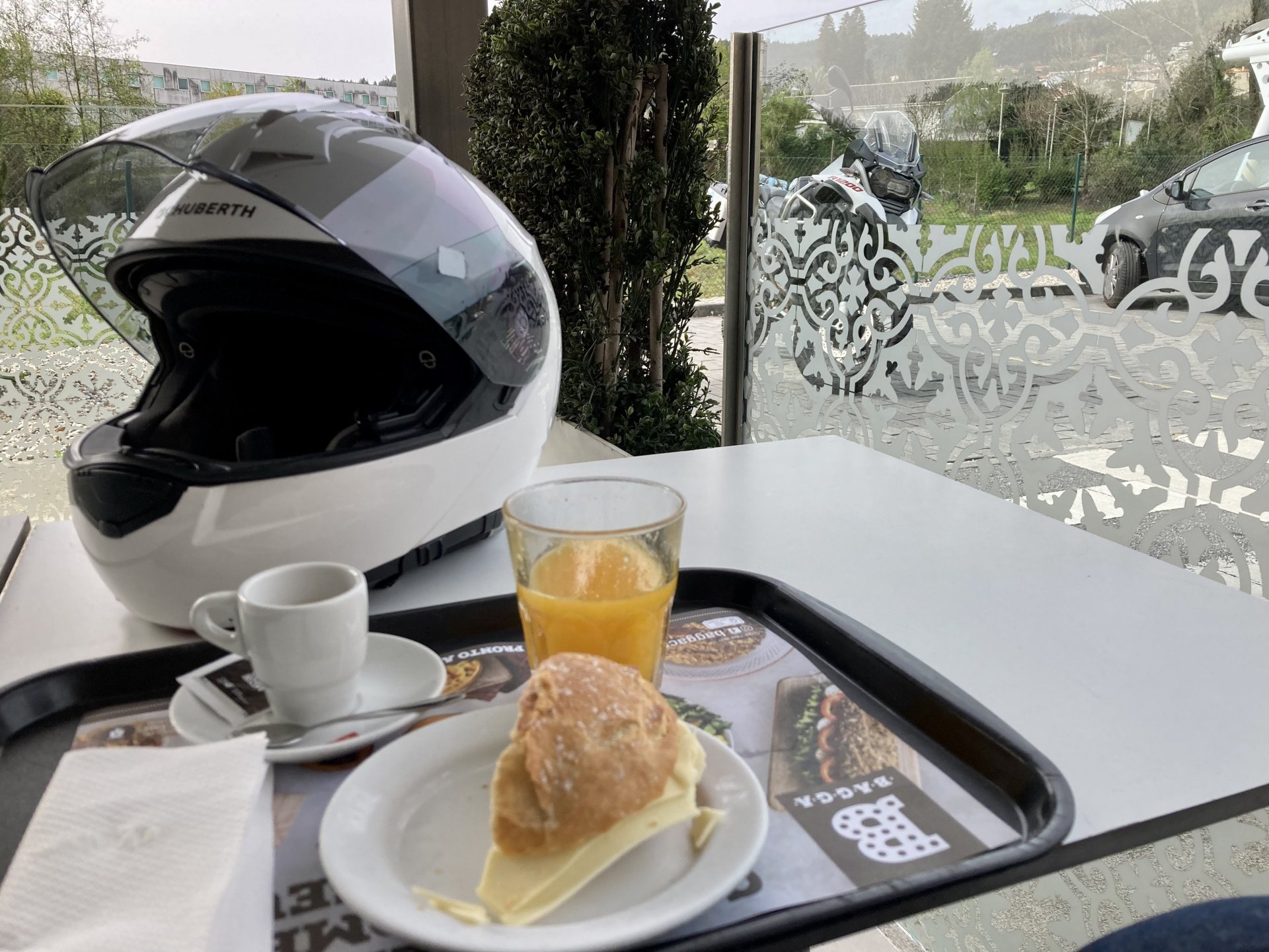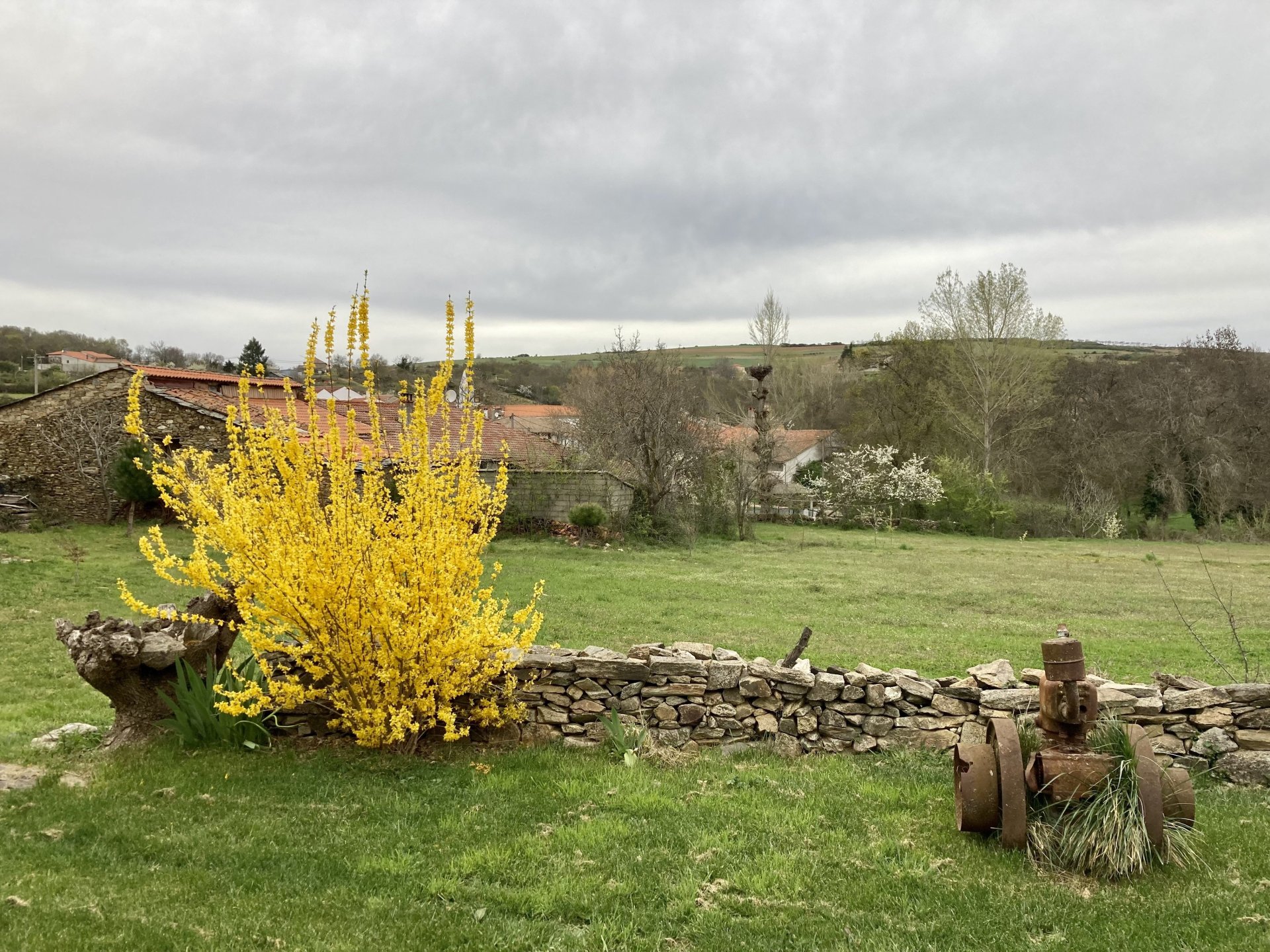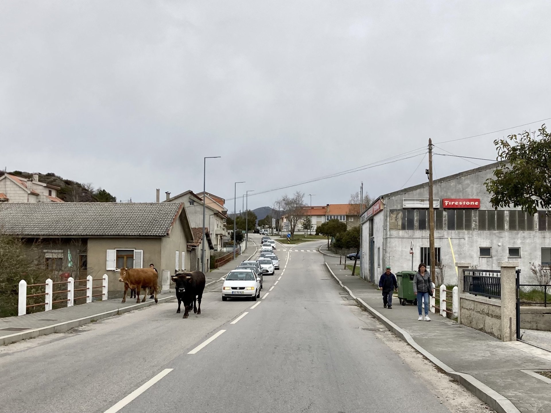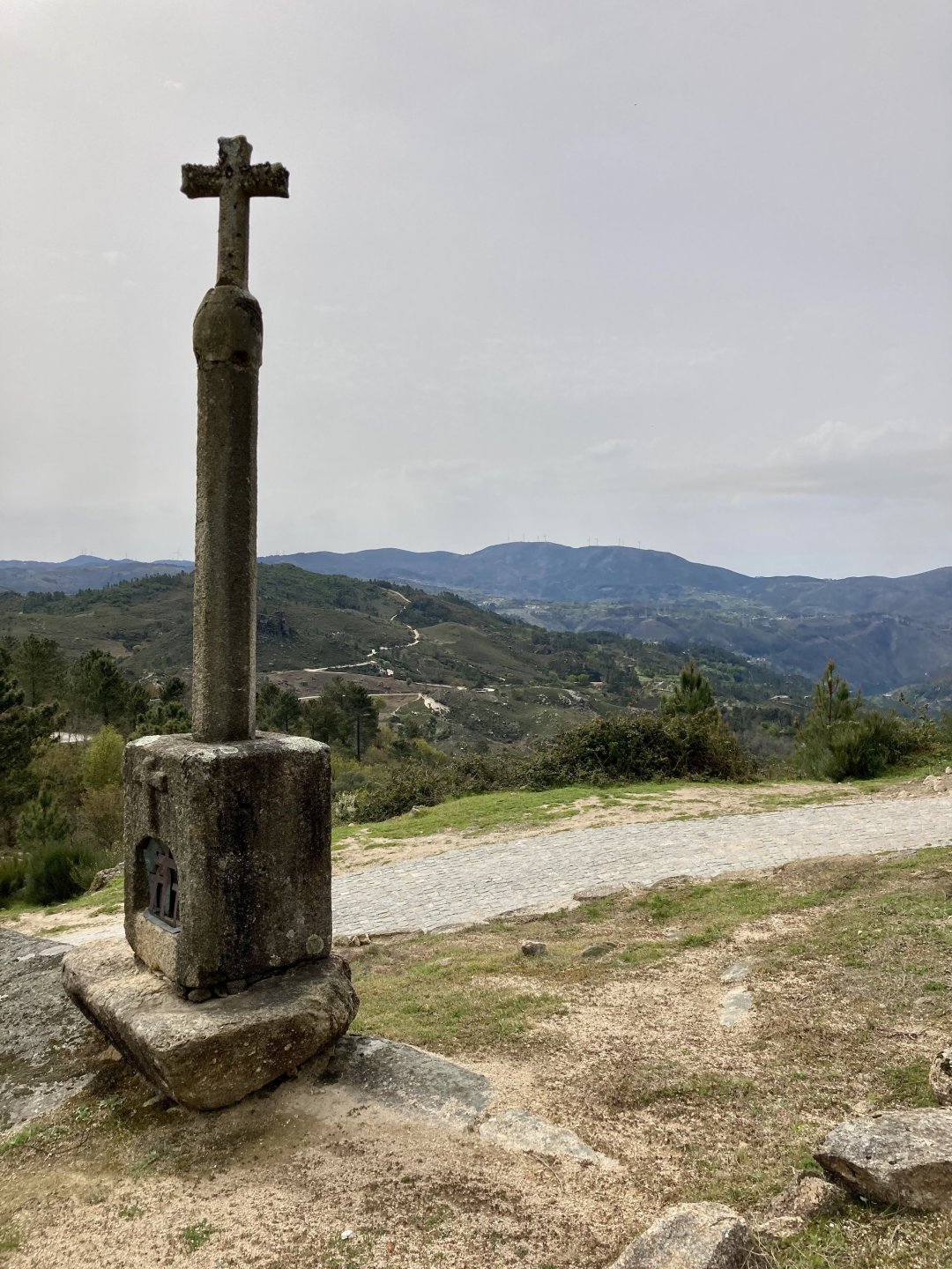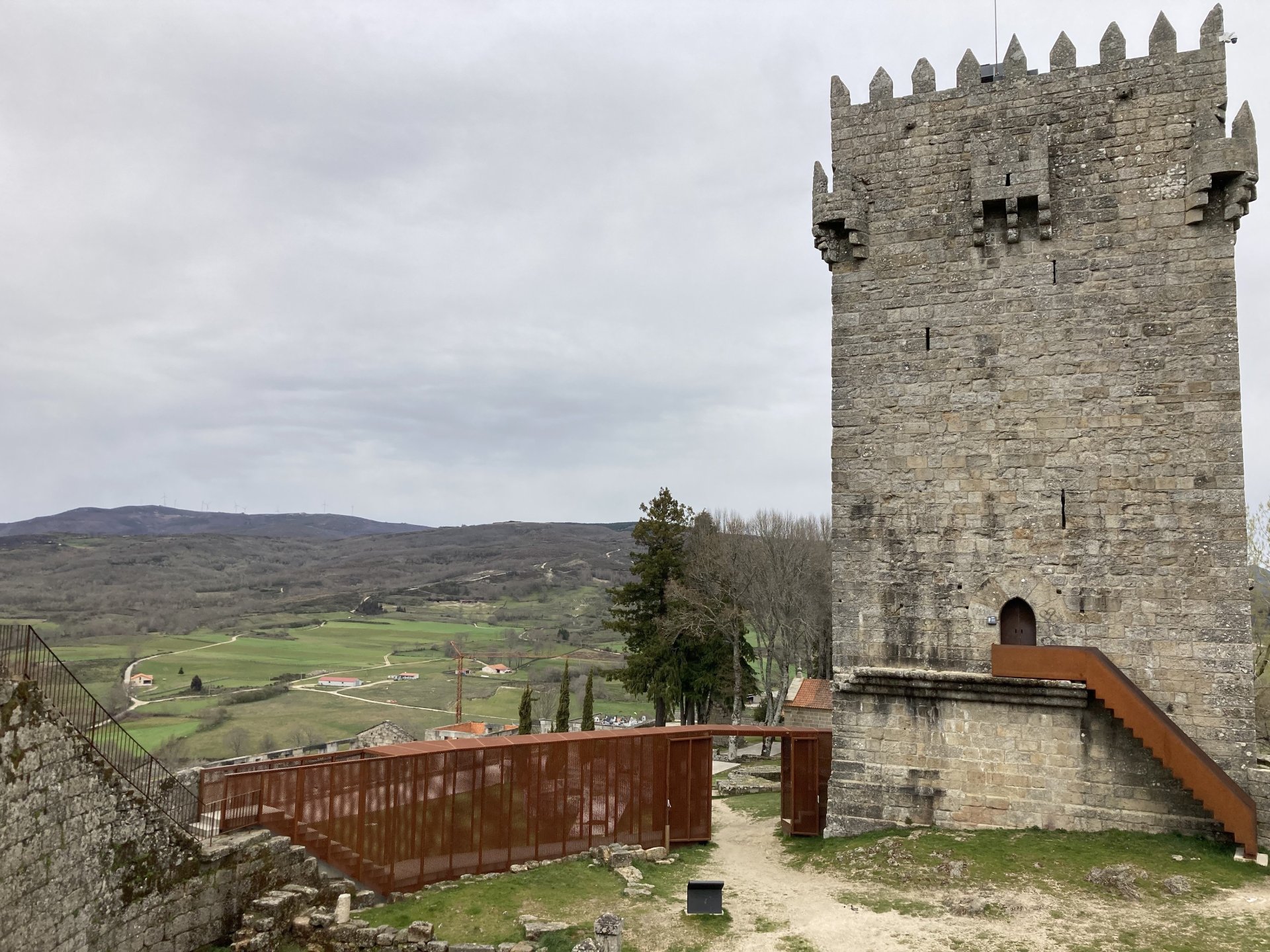 If you look at a map of Portugal and look at the north border with Spain, and follow the half of it most inland, that's where this ride will take place. I had a short meeting in a bank in Vila Nova de Gaia, and only ended up leaving well after 9:30, got on the motorway north to Braga and from there got on the small roads, took the N103 firstly heading northeast to go past the edge of the Gerês natural park with it's charming old villages, it's landscape so bucolic it feels like it's manicured by god. It's very pretty place but not one for today. This was still on monday but the start of the holly week, and Spaniards must not have saints in Spain as they all flock to Portugal, Braga being a very important catholic town is invaded by tourists so I wanted none of that. Stopped at a big shop to buy a charging cable for my phone right after Braga, and had some breakfast before setting off properly inland. A few kms after, and although the N103 is very nicely surfaced, constantly presenting series of bends that allow you to enjoy any motorcycle from the most modest to a proper fast sports bike, I got away from it and onto smaller, narrower, and twistier roads off over the hills. A brief stop near the small village of Xertelo presented me with a very typical Gerês landscape. I was surprised that I couldn't ride through the village and carry on the other side as they only allow local vehicles inside, being a protected landscape they obviously mean for you to enjoy the place with no cars driving around, so I took a short stroll around before returning the one or two kms back to the main secondary road : Back on and shortly after I needed a pee, so got 50 meters off the road and came upon this place: A brief phone conversation had me stop to check some stuff on my phone and call someone back, while I talk the cows arrived back at their field and maybe one car drove past, this is quiet living here: The weather wasn't warm, but it wasn't cold either, the sky was very much overcast which ruins some of the pictures as everything looks like it should when it has a blue sky above. Arrived at Montalegre (translated to HappyHill), and stopped by the castle for a visit, I had never been here before and it is worthy of a stop. This place also marks the end of the typical Minho landscape and suddenly it feels more Tras os Montes, it's a place of harsh weather, lots of cold and ice, high winds, stone houses and hard people with tough lives, it feels epic and ancient too, and VERY different to the south. Montalegre has a beautifully fixed up castle worthy of a stop. It's on the border of Portugal and obviously served an important purpose in defending territory back in 1273, when it was firstly built. The tower came later, and sadly it was closed on my visit so had to stick to climbing one of the walls. Some of the castles I've visited don't really mind safety and you climb up and down walls along narrow uneven stone steps with a drop to one side and a wall to the other, here and probably being visited by lots of spaniards they made it tourist friendly with proper steps and rails. I could do with a stop for a snack but most of the restaurants were closed, I didn't feel like properly sitting down in a restaurant and having a proper lunch and couldn't find a place with seating outside, so moved on. Exiting Montalegre, I like the mix of very well kept old stone houses and the modern underground recycling bins: Traffic jam in Montalegre At around 2PM, I stopped at a small village, and got into a cafe to ask for a sandwich. Took a picture while the kind sir thinly sliced some presunto (raw bacon to you all), and made me a deliciously simple small sandwich. The cafe owner was very surprised I didn't go for his recommendation of going to the local restaurant and "eating properly", a proper Trasmontano lunch would invalidate riding in the afternoon I ate outside while chatting to an older gentleman, no pictures as the camera would have ruined the moment. For @yen_powell, a church and a cemetery I rode on heading East always quite close to the border, and mostly away from main roads. Another stop for a call: I intended on not stopping for pictures except in places where I actually stopped for whatever reason, but this made me stop and get off the bike for a picture of the road ahead, just to have the location saved when looking for it in the future, the surface could maybe do with a refresh but it had character, and if you look at the picture below you'll surely see what I like about this Another stop for urination, on an amazing location: I intended to stay for a while to enjoy the place and the river sounds but started to get swarmed with mosquitoes so went away. Instead stopped in Vinhais to have an espresso and figure out where to sleep. It was past 16:30 when I stopped in Vinhais, while enjoying my coffee I looked on google maps and found a few locations close by, all that interested me were either booked or didn't rent for just one night stay. Doesn't matter, I decided to carry on small roads and stop later at Bragança. The roads though the Montesinho (little hill) Natural Park (https://goo.gl/maps/nDo8TfSDmuXbK8Lz7) are gorgeous. Most of it is old chestnut tree forests, and it feels amazingly old like you could expect to see a night riding though on horseback, it feels like 3 or 500 years ago, but I feel like pictures didn't make the place justice, you loose a lot of the naked trees with the grey sky we had. I'll have to come back in prettier light, and I'm sure it's a great place to visit when the leaves are changing and in chestnut season. Bragança is the capital city of Tras os Montes, it's got a castle, an historic center, but I got a little fed up with it. Rode up to a hotel with underground parking for the bike, and stood in a line after 3 or 4 spaniards in front, the guy at the check in desk didn't seem to get a move on, that clearly wasn't for me so I walked out, phoned a small rural place in a villag