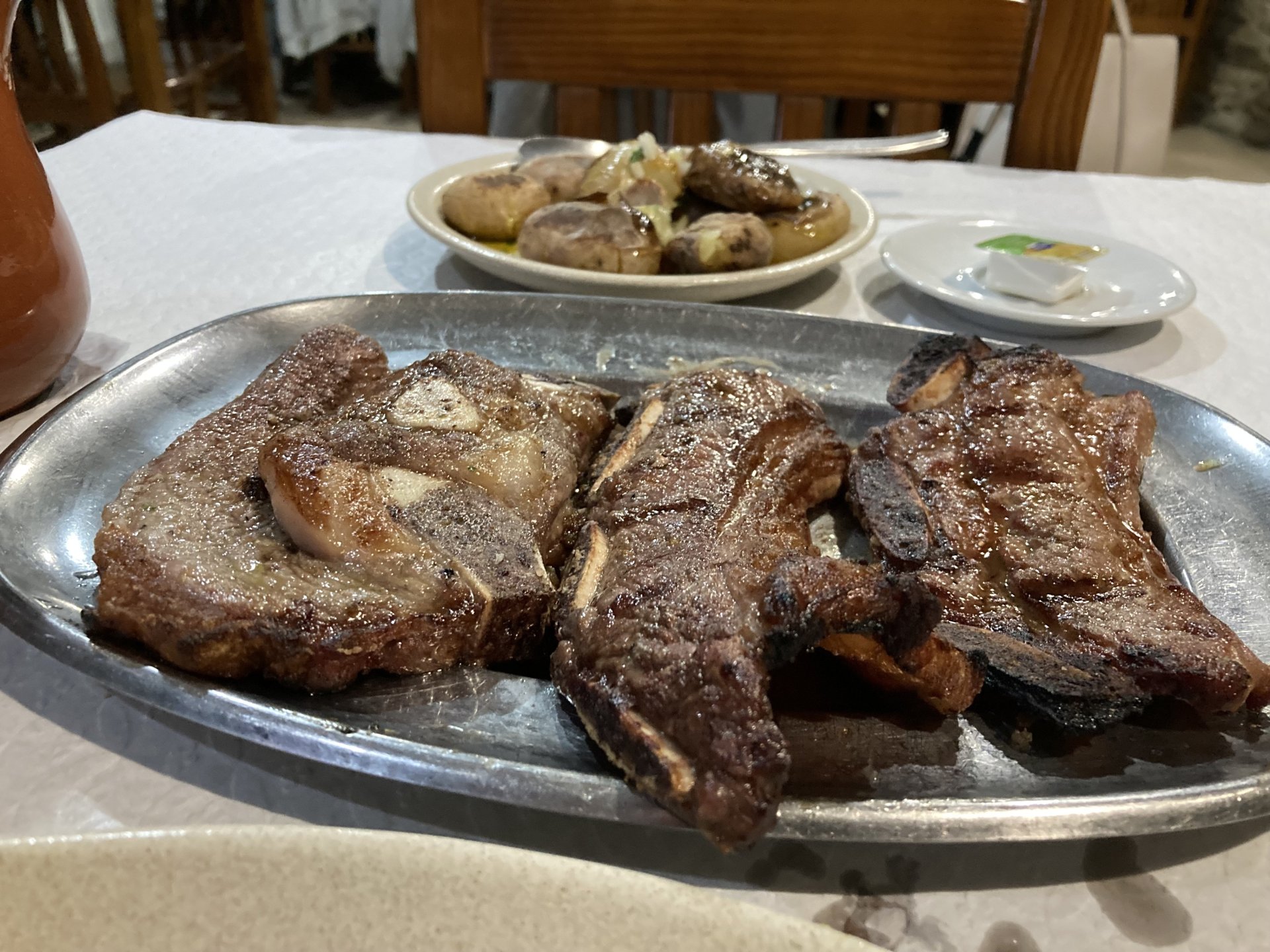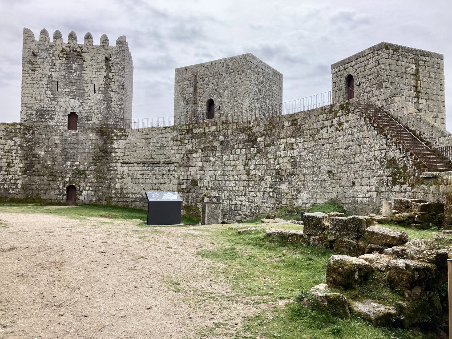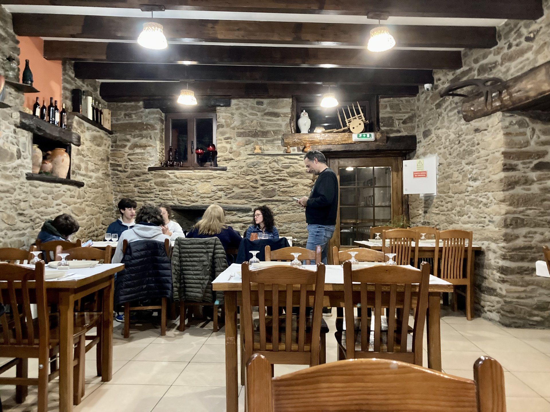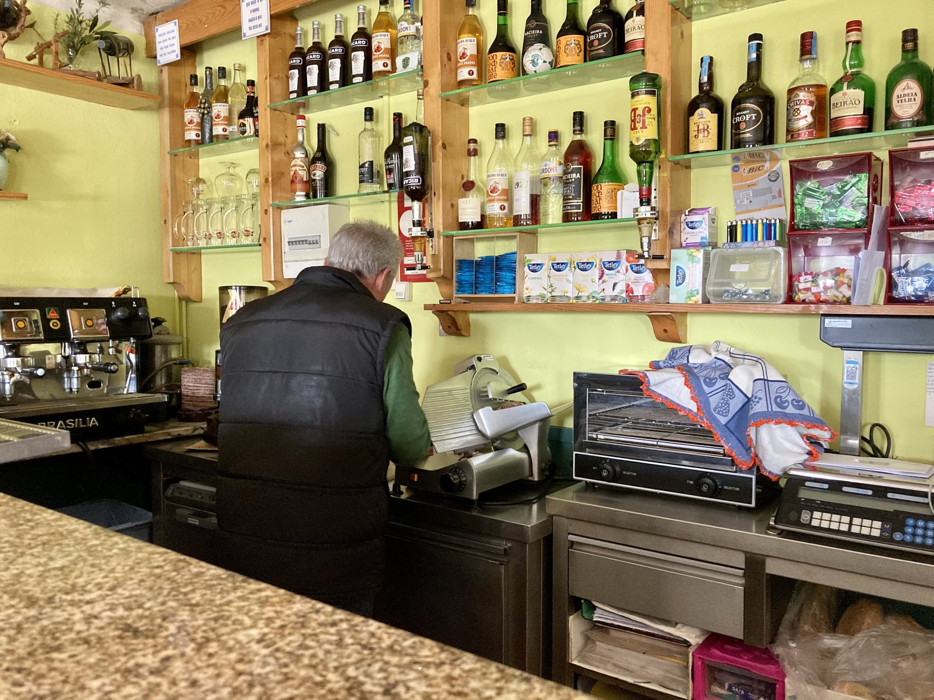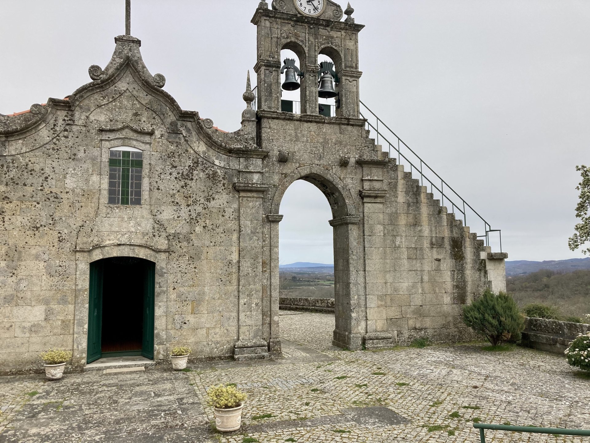 If you look at a map of Portugal and look at the north border with Spain, and follow the half of it most inland, that's where this ride will take place. I had a short meeting in a bank in Vila Nova de Gaia, and only ended up leaving well after 9:30, got on the motorway north to Braga and from there got on the small roads, took the N103 firstly heading northeast to go past the edge of the Gerês natural park with it's charming old villages, it's landscape so bucolic it feels like it's manicured by god. It's very pretty place but not one for today. This was still on monday but the start of the holly week, and Spaniards must not have saints in Spain as they all flock to Portugal, Braga being a very important catholic town is invaded by tourists so I wanted none of that. Stopped at a big shop to buy a charging cable for my phone right after Braga, and had some breakfast before setting off properly inland. A few kms after, and although the N103 is very nicely surfaced, constantly presenting series of bends that allow you to enjoy any motorcycle from the most modest to a proper fast sports bike, I got away from it and onto smaller, narrower, and twistier roads off over the hills. A brief stop near the small village of Xertelo presented me with a very typical Gerês landscape. I was surprised that I couldn't ride through the village and carry on the other side as they only allow local vehicles inside, being a protected landscape they obviously mean for you to enjoy the place with no cars driving around, so I took a short stroll around before returning the one or two kms back to the main secondary road : Back on and shortly after I needed a pee, so got 50 meters off the road and came upon this place: A brief phone conversation had me stop to check some stuff on my phone and call someone back, while I talk the cows arrived back at their field and maybe one car drove past, this is quiet living here: The weather wasn't warm, but it wasn't cold either, the sky was very much overcast which ruins some of the pictures as everything looks like it should when it has a blue sky above. Arrived at Montalegre (translated to HappyHill), and stopped by the castle for a visit, I had never been here before and it is worthy of a stop. This place also marks the end of the typical Minho landscape and suddenly it feels more Tras os Montes, it's a place of harsh weather, lots of cold and ice, high winds, stone houses and hard people with tough lives, it feels epic and ancient too, and VERY different to the south. Montalegre has a beautifully fixed up castle worthy of a stop. It's on the border of Portugal and obviously served an important purpose in defending territory back in 1273, when it was firstly built. The tower came later, and sadly it was closed on my visit so had to stick to climbing one of the walls. Some of the castles I've visited don't really mind safety and you climb up and down walls along narrow uneven stone steps with a drop to one side and a wall to the other, here and probably being visited by lots of spaniards they made it tourist friendly with proper steps and rails. I could do with a stop for a snack but most of the restaurants were closed, I didn't feel like properly sitting down in a restaurant and having a proper lunch and couldn't find a place with seating outside, so moved on. Exiting Montalegre, I like the mix of very well kept old stone houses and the modern underground recycling bins: Traffic jam in Montalegre At around 2PM, I stopped at a small village, and got into a cafe to ask for a sandwich. Took a picture while the kind sir thinly sliced some presunto (raw bacon to you all), and made me a deliciously simple small sandwich. The cafe owner was very surprised I didn't go for his recommendation of going to the local restaurant and "eating properly", a proper Trasmontano lunch would invalidate riding in the afternoon I ate outside while chatting to an older gentleman, no pictures as the camera would have ruined the moment. For @yen_powell, a church and a cemetery I rode on heading East always quite close to the border, and mostly away from main roads. Another stop for a call: I intended on not stopping for pictures except in places where I actually stopped for whatever reason, but this made me stop and get off the bike for a picture of the road ahead, just to have the location saved when looking for it in the future, the surface could maybe do with a refresh but it had character, and if you look at the picture below you'll surely see what I like about this Another stop for urination, on an amazing location: I intended to stay for a while to enjoy the place and the river sounds but started to get swarmed with mosquitoes so went away. Instead stopped in Vinhais to have an espresso and figure out where to sleep. It was past 16:30 when I stopped in Vinhais, while enjoying my coffee I looked on google maps and found a few locations close by, all that interested me were either booked or didn't rent for just one night stay. Doesn't matter, I decided to carry on small roads and stop later at Bragança. The roads though the Montesinho (little hill) Natural Park (https://goo.gl/maps/nDo8TfSDmuXbK8Lz7) are gorgeous. Most of it is old chestnut tree forests, and it feels amazingly old like you could expect to see a night riding though on horseback, it feels like 3 or 500 years ago, but I feel like pictures didn't make the place justice, you loose a lot of the naked trees with the grey sky we had. I'll have to come back in prettier light, and I'm sure it's a great place to visit when the leaves are changing and in chestnut season. Bragança is the capital city of Tras os Montes, it's got a castle, an historic center, but I got a little fed up with it. Rode up to a hotel with underground parking for the bike, and stood in a line after 3 or 4 spaniards in front, the guy at the check in desk didn't seem to get a move on, that clearly wasn't for me so I walked out, phoned a small rural place in a villag