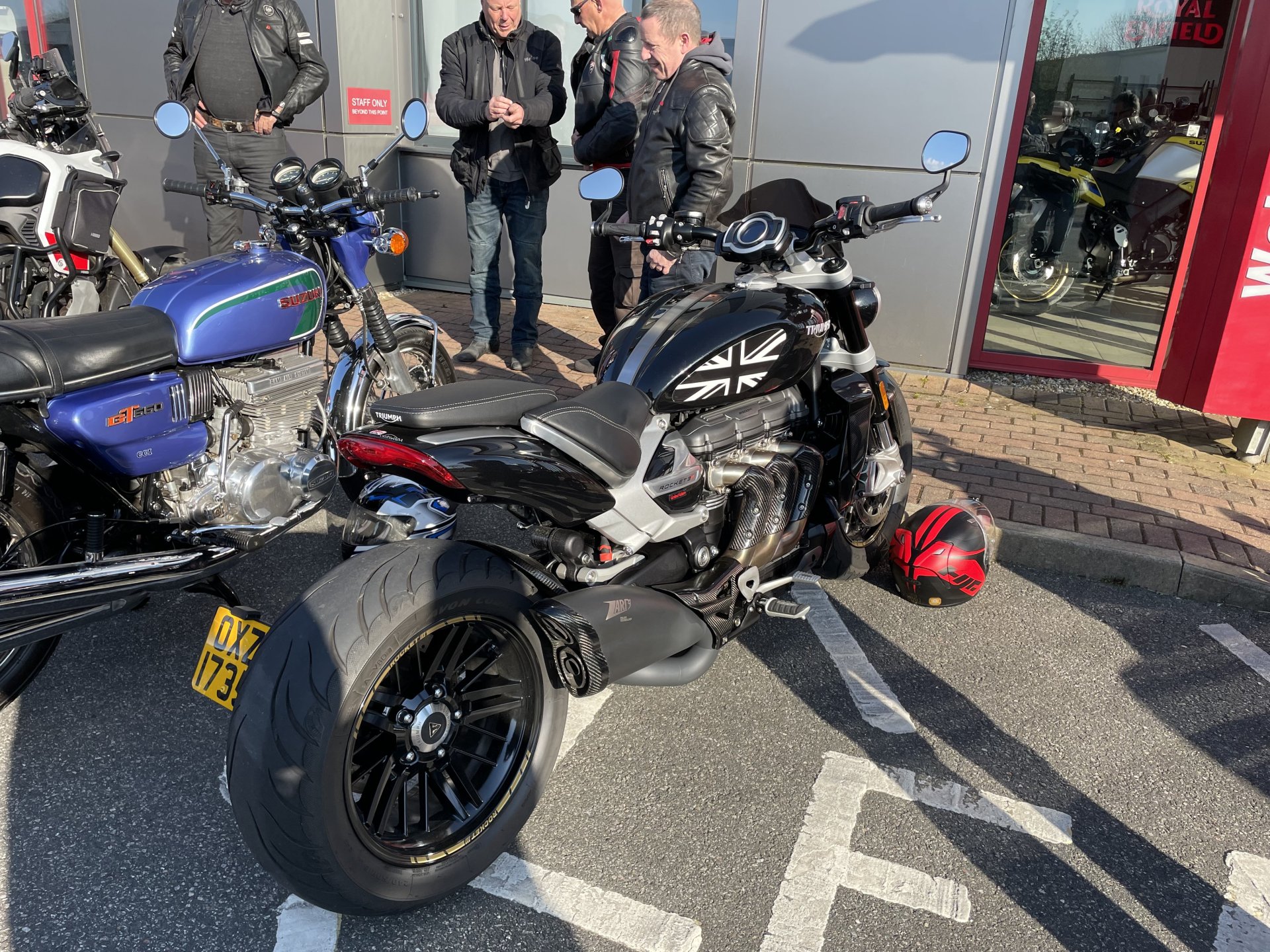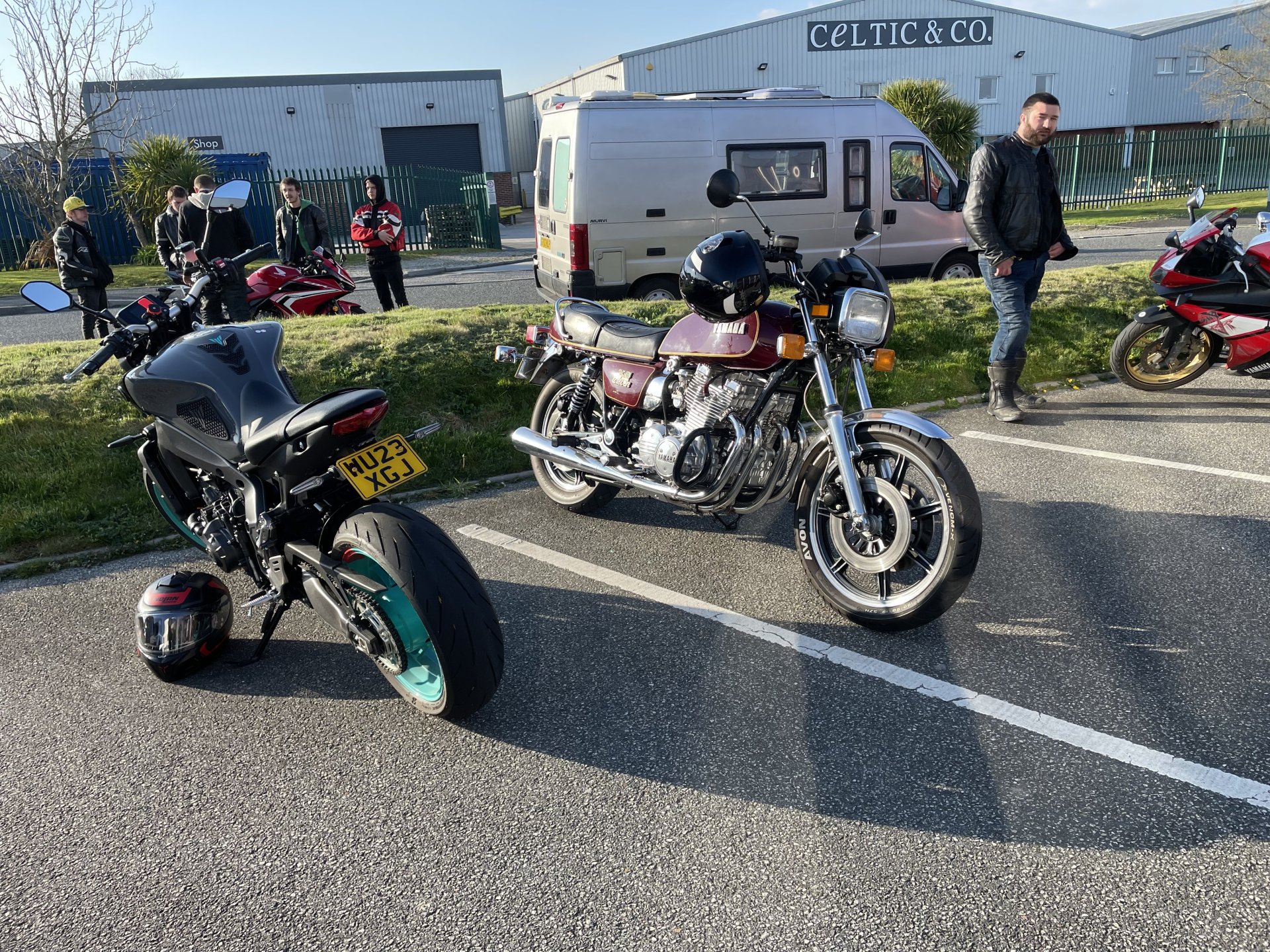 I went to Dameralls bike night last night as I finally got my mate who never rides on his CB to come out. Dry and warm so lured him out. Anyway over the course of 2 hours I guess that there were around 200 bikes that came and went. Some beautiful stuff but also loads of L plate specials with fart cans. I only took a few photos of what interested me but an enjoyable evening all the same. Also hooked up with some mates who I hadn’t seen for years which was good. Strangely enough a guy turned up in the cleanest Lotus Sunbeam I have ever seen.4 points