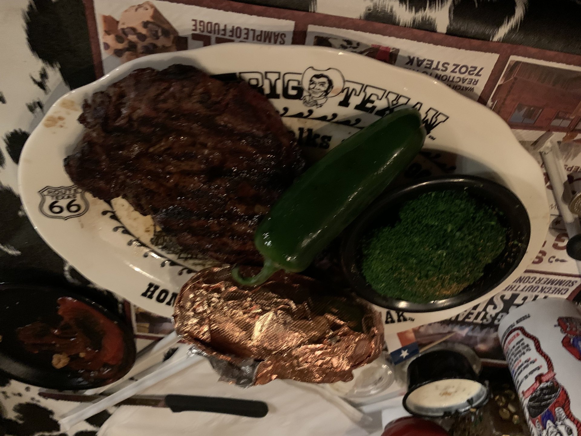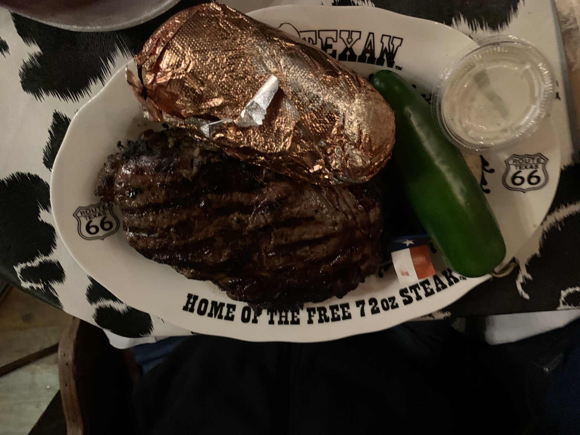 They don't let you go away hungry there - fuckin' huge assed slabs of meat. Even the baked potato was the biggest I've ever seen.2 points