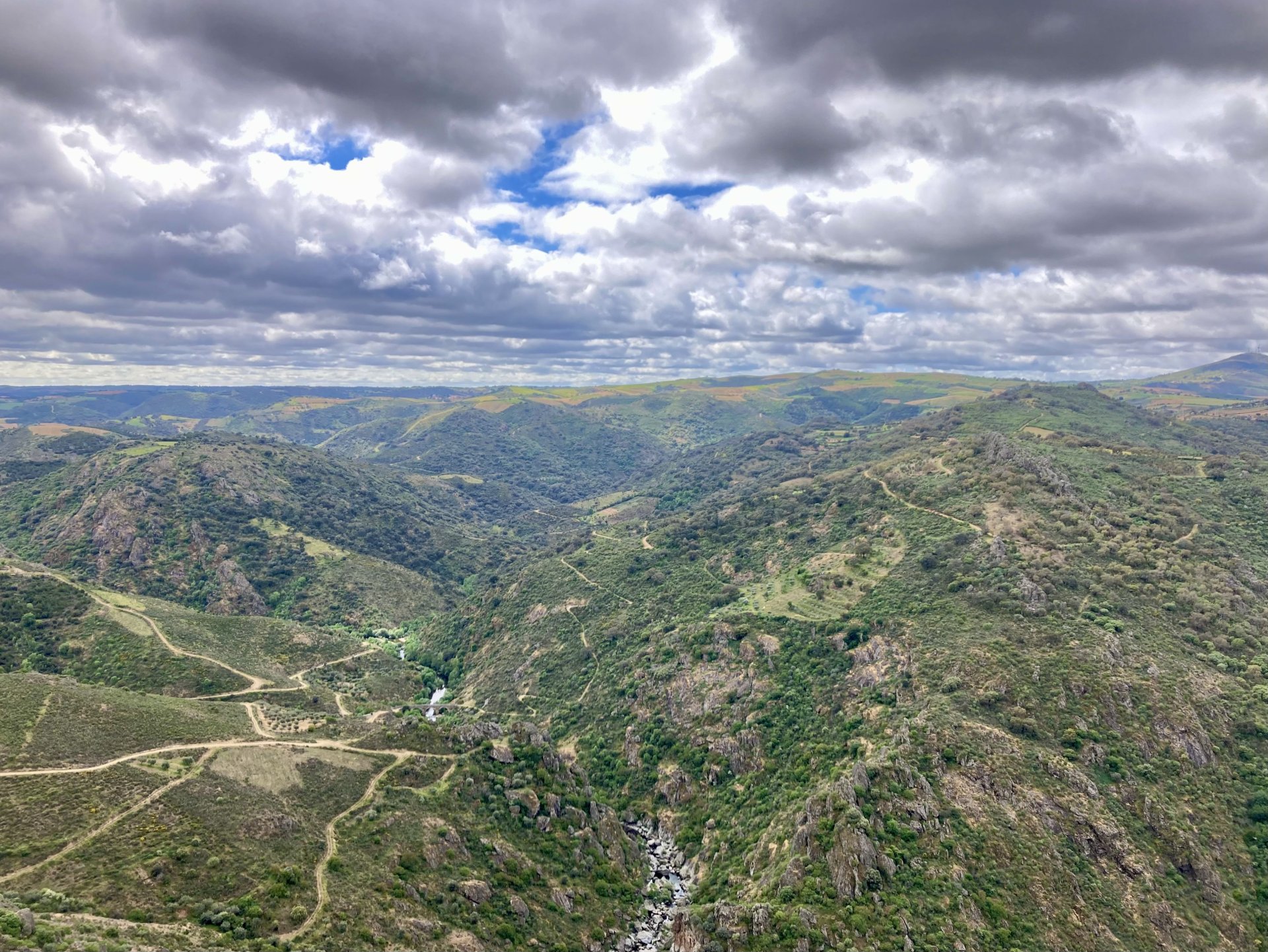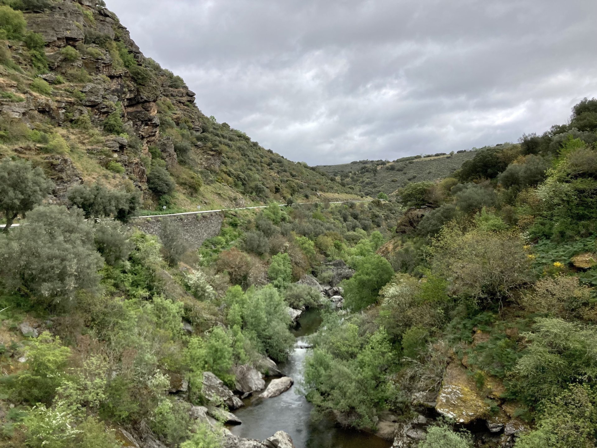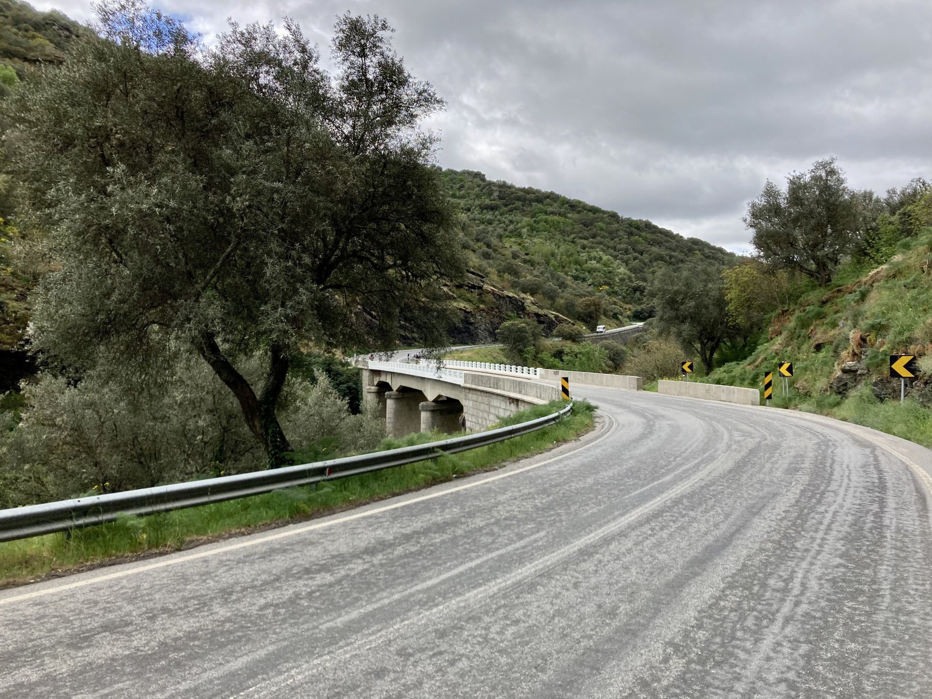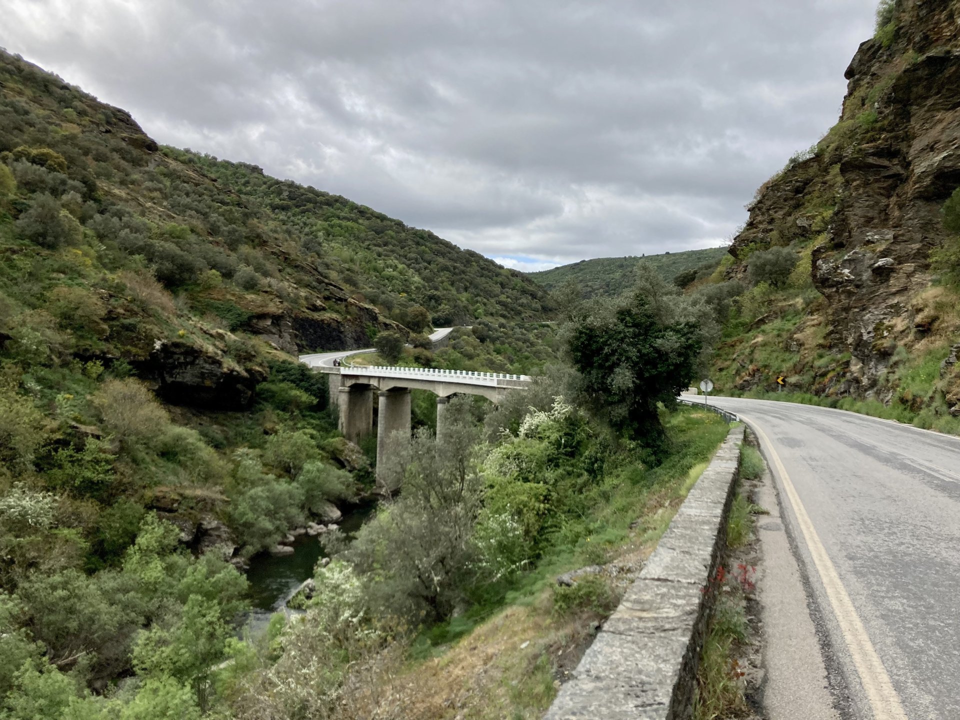 After my previous solo ride to Tras os Montes, Sofia had a few days to get away from being a vet and felt like going and checking the place out too, so that's what we did. Tras os Montes is sadly ignored by most tourists and even most portuguese tourists don't know the place. On one side this is bad, on the other it's very cool because it's a land of harsh climates, harsh landscape (that I've been told sometimes looks like Scotland), and authentic people and places, a lot of this is usually lost with bigger volume tourism. The aim was to go north, spend a couple of days at my parent's to keep my dog company, and then head north and inland in search of amazing old landscapes and good rustic meals. Tras os Montes reminds me of a time of kings, with it's abundant sweet chestnut trees, old castles, and stone walls that endure time. First, starting from the south / center of Portugal: I set of from my home near Lisbon on a monday morning, the sun was out and the day was to be sunny and plenty warm. I was early getting out, had already cleaned my place the day before so after taking out the trash the blinds were shut and the place left until my next stay. When I see that house closed I better leave quick or my emotional side takes over and I end up staying a few days more. I take only small roads, after a while I stop by a dam for breakfast at a cafe and a few work calls to get a few issues done for the day: Quickly made a friend, that abandoned her owner and came to check out my last bit of toast: Arrived at Constancia, quaint small town by the Tejo river with the claim of fame that very important historic poet Luis de Camões once lived here for a while. I stopped, had an espresso, and proceeded to wait for @Sofia, at the time setting off from Ericeira via motorways to catch up, she made it in illegally quick fashion but still gave me an hour to sit around watching country town life unfold. Posto de Turismo is where you get information about museums, tour guides, etc, and it's set up in the old jail house. Cool stuff, I did go up there to see the inside but it was closed. The sky was amazingly blue, and the warmth was arriving, it was supposed to be 30º that day. A contrast to the following days. At almost midday, Sofia arrived after her motorway blast, ready to take off a layer or two of warm clothing, and head into smaller slower roads heading up through the center of Portugal. We managed to eat a cheese and ham toast for lunch, which was a pleasant surprise, and continued north through dense forrests, here starting to look back from the first noticeable hills Not many pictures were taken, here's another friend that popped up while stopped for refreshments: Pampilhosa da Serra, roads around here are just underrated, this is hill and forrest country and the roads just seem to be well maintained, and fun enough to enjoy in all sorts of bikes. We stopped at a lookout over the town for a breath, and for me to think of the following roads. We had already settled on a historic hotel for the night so the general destination was set, just not the specific road to get there. I struck a pose: Brief stop at Gois, where I frequently get lost and exit on the wrong direction. Gois hosts Portugal's second biggest bike rally, after Faro. This is more of a portuguese thing, deep in the center of the country and away from touristy Algarve beaches. As we approach our hotel, which is deep in a forrest nature park, I stop for a bucolic pee and to enjoy the coolness the dense forest provides after a warm day on the bike. We park the bikes for the night, and quickly have a shower in time for a stroll around the property. Hour hotel is Palacio do Bussaco, a proper palace built for a real king. Rooms are run down and severely overvalued, but the building itself is amazingly characterful and the gardens and special forest around it are breathtaking. I never heard so many bees around, flowers are in bloom but we were later on having a glass of wine outside and you could hear the millions of bees in the background, like if a distant natural white noise. Sofia knows all about the story of the place, I am a little bit more of a simpleton and just enjoy the trees and birds and some (overpriced) wine. After a lovely dinner, we enjoy a walk around the gardens (like you do), before turning in. Tomorrow I have mountains and twisty roads planned! Before checking out, we walk a little around the forrest / garden surrounding the hotel, I learn that we have a special kind of cedar that only exists in this place. Cool stuff! ced Adequate parking location for the GS, although to be fair if I had my choice I would have left it under cover. I think the artisans that sculpted those pillars wouldn't have minded. From Bussaco and Luso, we set of to Serra do Caramulo for a coffee, some amazingly twisty roads up the hill have Sofia in a good mood after a little more than an hour to get there. Again, we set off, down the other side of Serra do Caramulo, and up Serra da Arada, we ride up a road I used to be very familiar with back when I used to race up here on the Transalp almost every weekend. The road twists up the hill with gravel and dirt thrown in on some bends, luckily for the Speed Triple it was better kept now but still a little out of spec for the sports bike like chassis of that bike. I forgot how harsh that road was, but it does make up for it with amazing views once you make it up there. BOTM: We ride through a few Serras, heading north, and I really put the Speed Triple and Sofia through some harsh roads, temperatures also reach 29º which doesn't bother me much but we were going slowly and it taxes you. A brief stop with a view After a longish day we reach the Douro river, which is just 40 minutes away from my parents' place. We take a breath of fresh riverside air. My dad was called in for a surprise visit to the doctor in Lisbon, so we made a two day stop in Espinho to hang out with Costa while they went away. It was a c