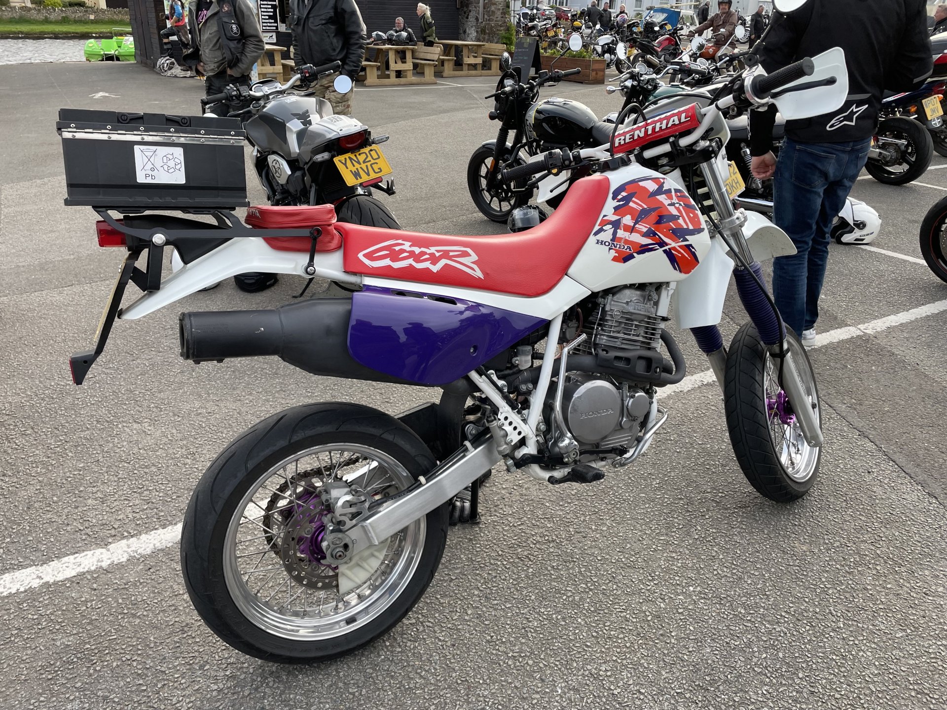Just got in from some trail riding in the pissing rain, someone i know was asking about the XTrainer a few nights ago and he has a CRF300L, so i said we could meet up and swap so we both get a good feel for the bikes. He obviously loved the Beta and after we covered a good variation of terrain in shit conditions i have decided i can live with the 300L. It's not a very inspiring bike to ride but it just does everything well and cheaply which is something that sort of goes against the way i normally choose bikes, everything about it just makes sense but i don't by with my head LOL, This 300L rode a lot better than the one i rode in Barmouth last year, I've had in the back of my head there was something not right about the set up of that one be it tyres or suspension i don't know but the one i rode today i was a lot more confident on. So all i need is some space now, and there's the problem i ain't selling a bike to make room so i cant see me getting one3 points