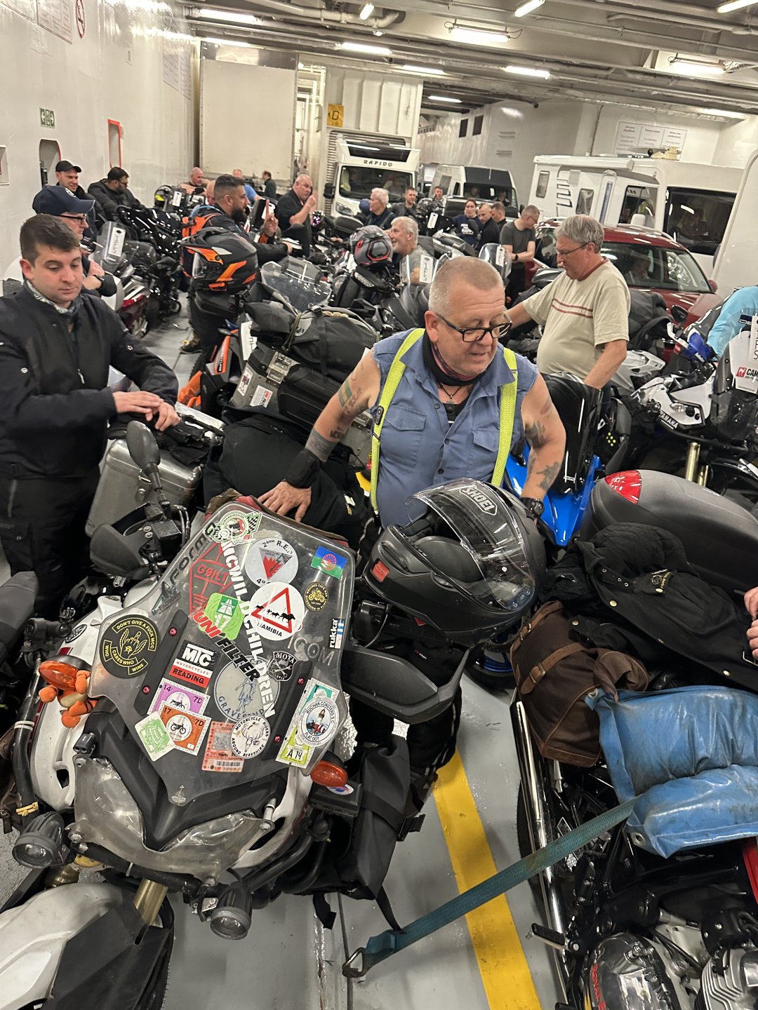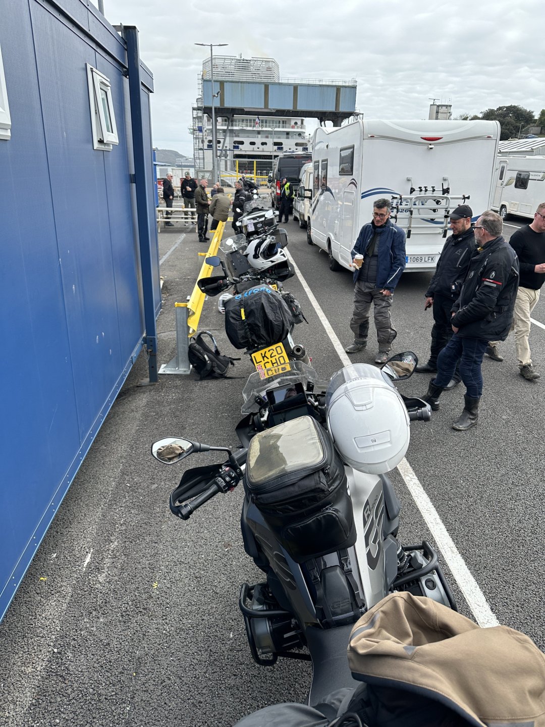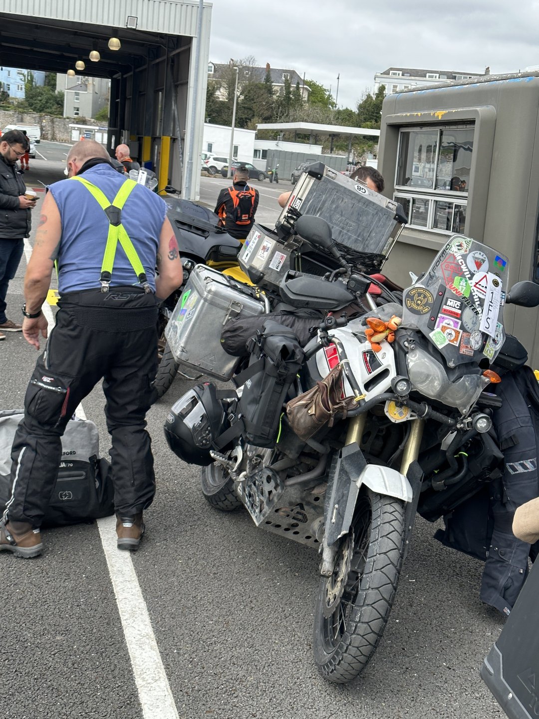 My mate Titus and I had decided that as we weren't able to do a circumnavigation due to the odd conflict here and there that a trip to Dakar would have to do as a poor substitute. Beer was involved in arriving at this decision. On the morning of 16th March, in drizzle and 11degC, I set off for Plymouth where I was to meet Titus and his son Omar, who'd decided to come along for some father son bonding, and sharing his father's love of travel. Loaded up ready to leave. Sainsbury's Plymouth for breakfast, meet-up and fuel. Then on to Millbay for the ferry. It took an eternity to get through checkin as Omar, late to the party, had booked as a foot passenger, whilst Titus and I plus bikes were on another booking. Computer couldn't cope and there must have been about fifty people involved in sorting it out. Then it was the same again at the customs check. Nightmare. Then I got mugged in the bar. Just leaving Millbay.The bogs where I used to sleep when I missed the liberty boat back to the ship has long gone. I think it was about £6 for a Murphy's. I'd booked a cabin for the night as I knew I'd be knackered but the other two decided to sleep on the deck somewhere. Apparently not very well as they were knackered in the morning. Waiting to escape at Santander. Loads of bikes on there. Then it was on the bikes heading south for Palencia. A bit further than we'd liked to have done, but it was cheap. At one point Titus veered to the left then caught it and carried on pulling over for a coffee break - he'd fallen asleep. Bloody scary. Nice enough through the mountains but not what I'd have liked to have done. Needs must I suppose. Parked up for the night. We wandered off up the road to try and find beer and food and ended up in a small tapas bar. They weren't hungry having devoured about six chickens between them that they'd got in Sainsbury's.4 points