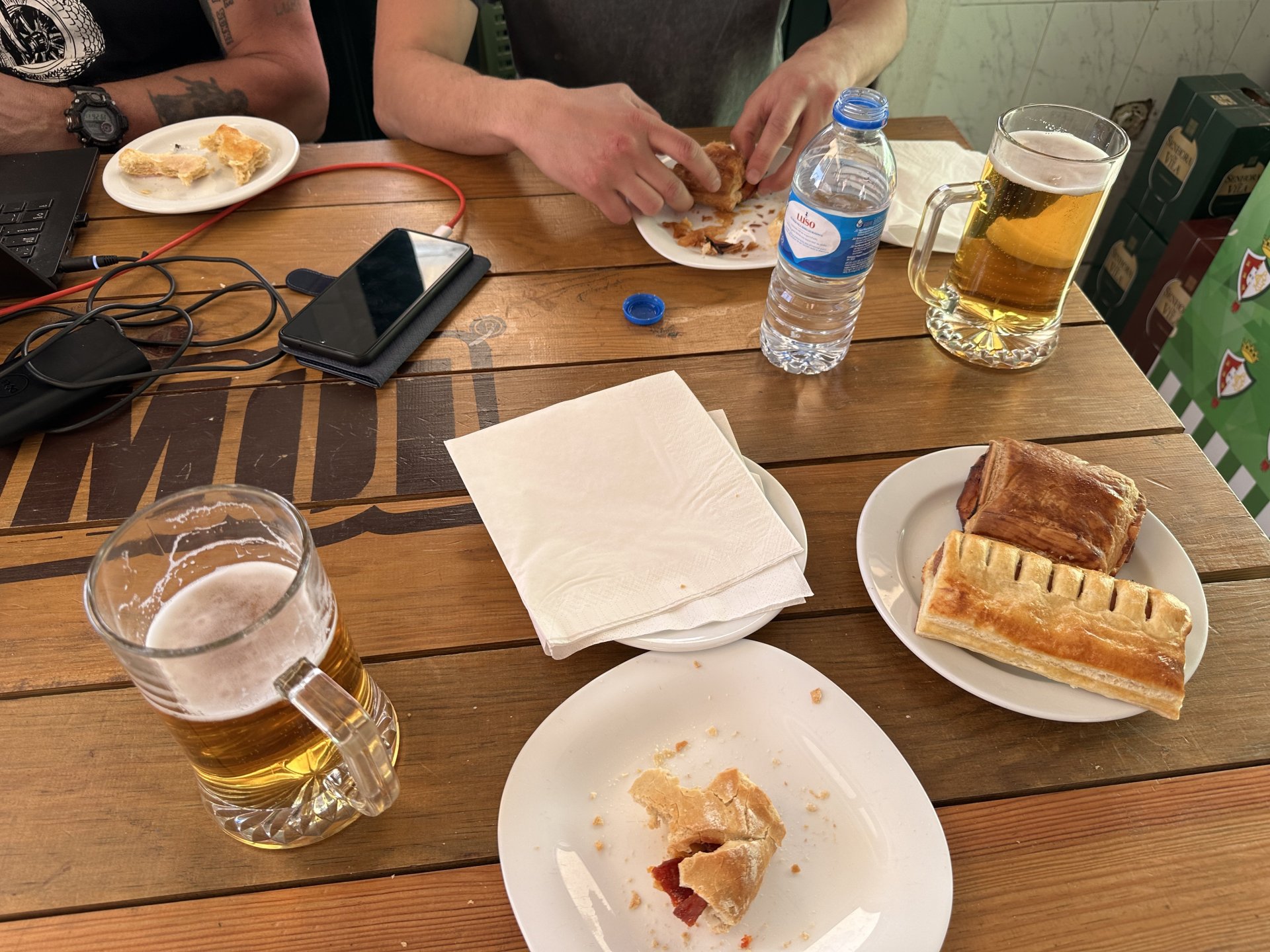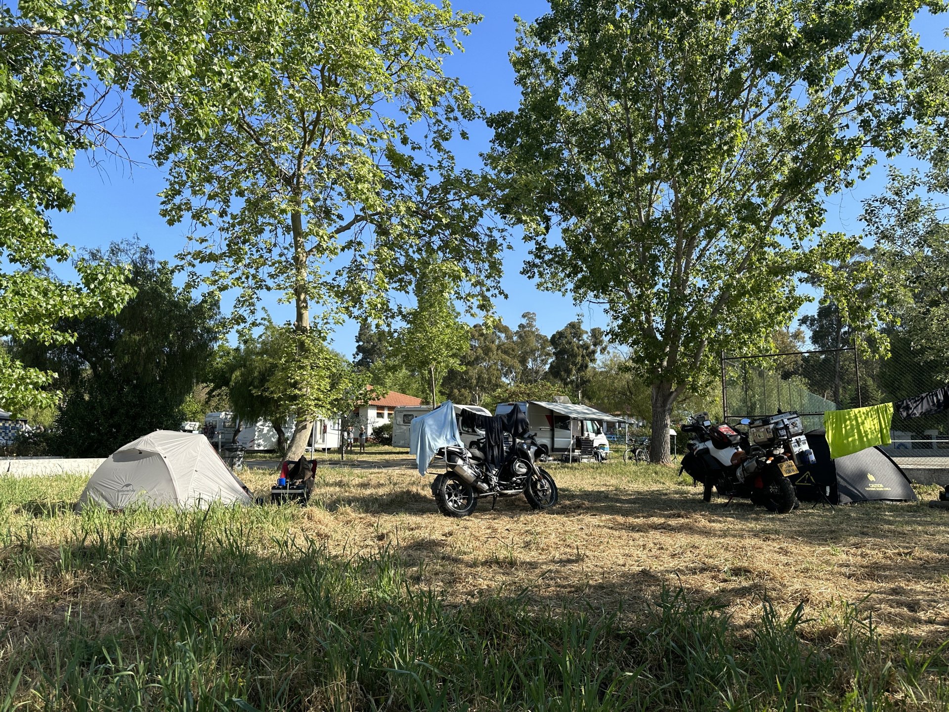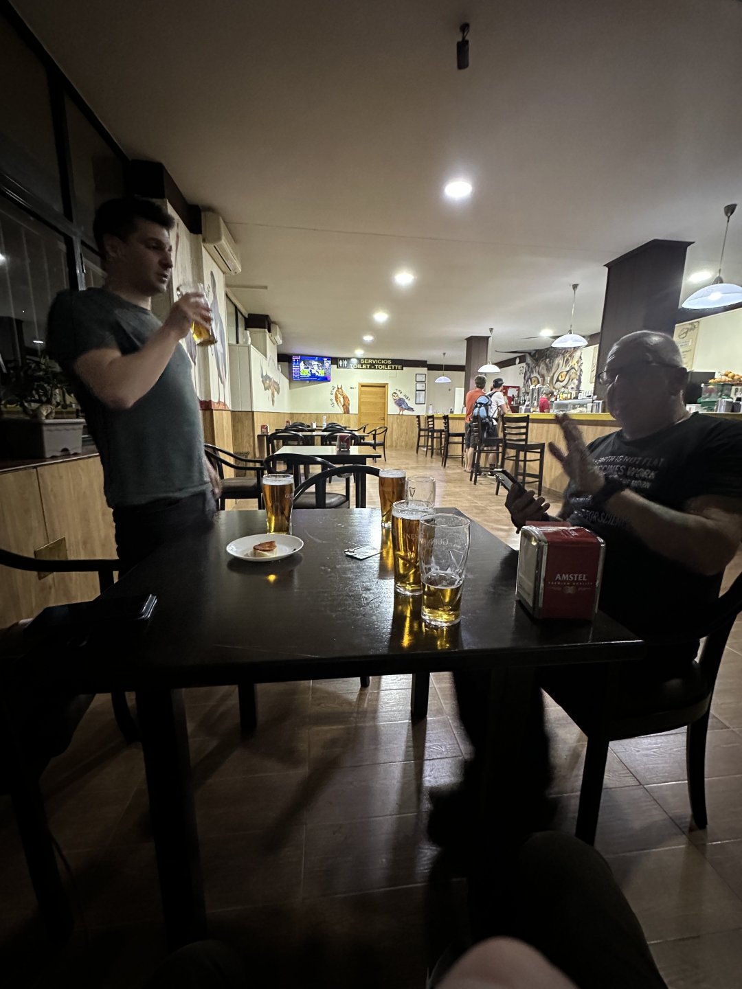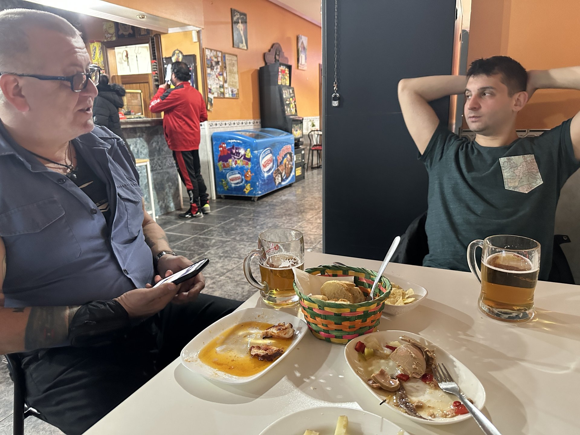 The next day I realised why I'd heard a few sirens during the night. Hotel was opposite the fire station. Then it was south again, on the motorways. We stopped for coffee and fuel, and for Titus to look for insects. Another bit of motorway to Plasencia where I had read of an aqueduct that was supposed to be worth seeing. By the time that we got there my brain was nicely cooked so after grabbing some photos and slurping water it was back onto the motorway heading for Caceres where we were to camp for the night. We arrived, with my brain cooked a bit more, at the campsite and before even going to the pitch it was beer time. Back on the bikes and up to the pitch. All a bit strange having out own toilet and shower! A guy rocked up, barney who was a few pitches down from us. He was in the queue in Millay behind us. Small world. Anyway it was time for more beer and tapas so that was it for the night. A very pleasant evening after all the motorway riding.6 points