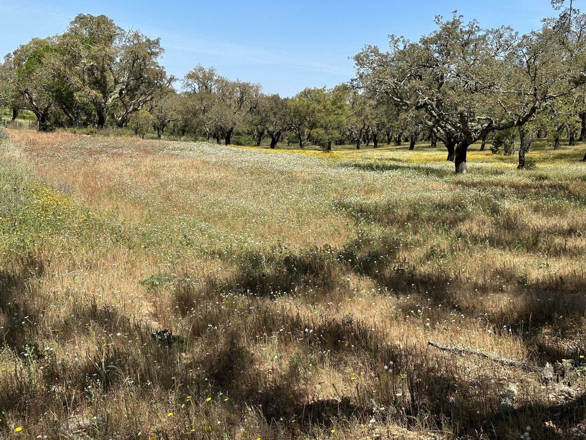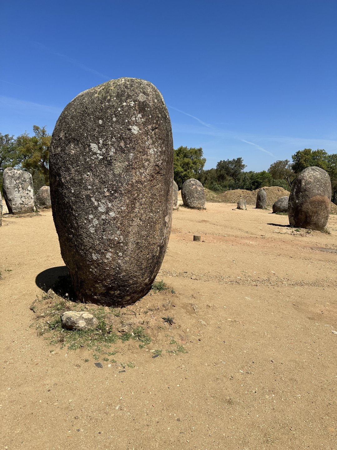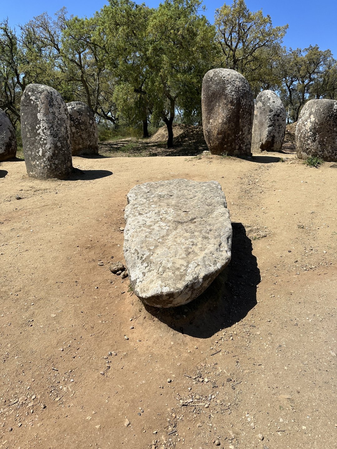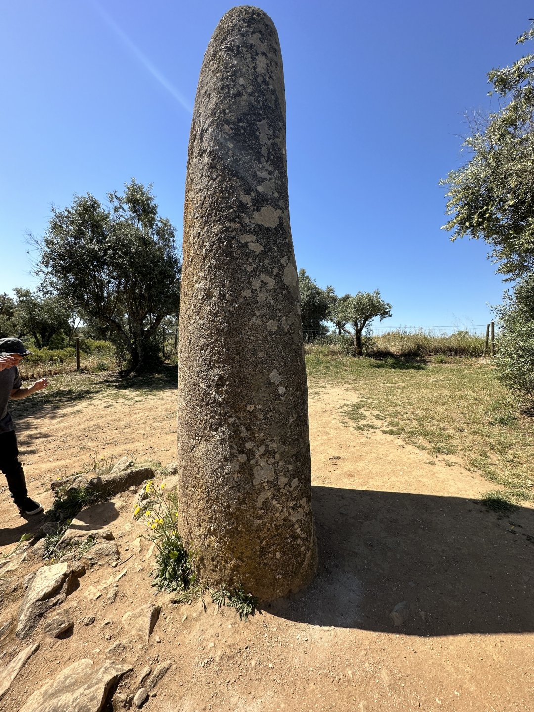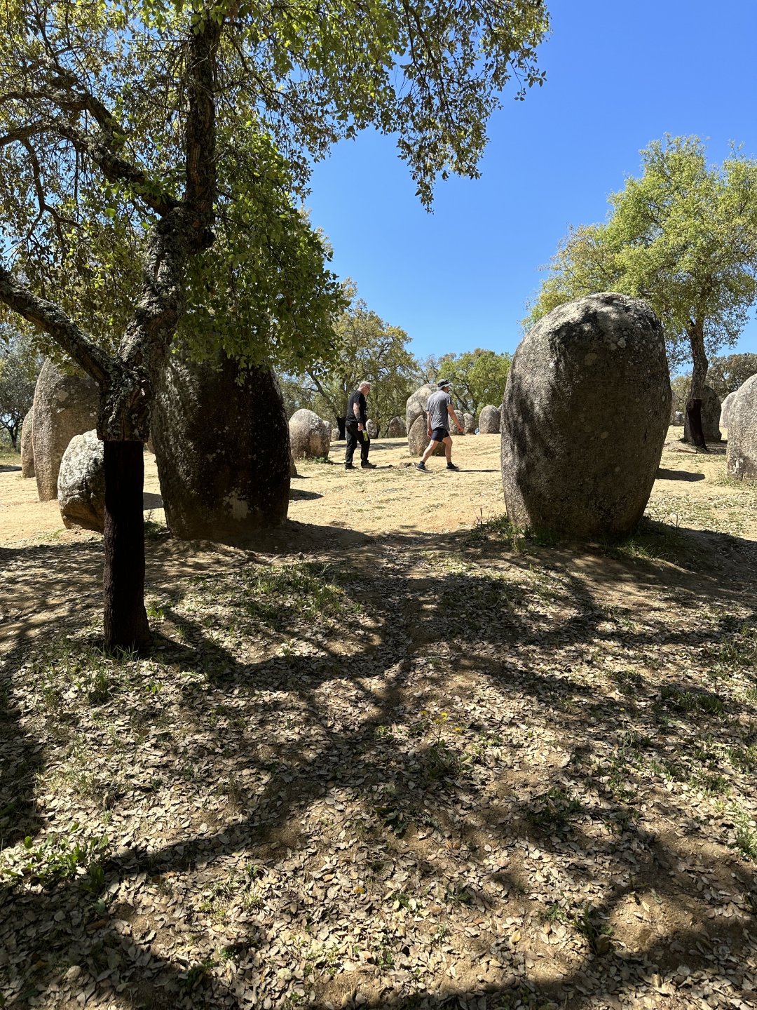 Today it was time to head for Portugal where Titus wanted to show us some stones. It was quite a pleasant ride through villages once we'd left the motorway. We found a campsite at Evora that was ok, it had internet, but the pitches left something to be desired. It was getting hot. Time for some laundry. Then it was time to look for stones. By the time we set off it was bloody baking. Interesting ride ending up along some dirt track. Then it was a hike down a footpath broiling in the sun, where we saw a stone. Great. After hiking up a mountain to get back to the bikes I was bushed! More water then another couple of miles to look at more stones. I thought that the mound of earth was for burying people who'd cooked for long enough. Lots of stones. I had a lie down on this one until I realised that I was cooking from it's heat. A new one for me. Bark taken for cork I assume. Then I thought it would be nice to photograph some flowers. I might have been hallucinating in the heat. It looks as if the bark has been taken off a lot of these trees. I remember this as being more colourful, man! This was the highlight of the day. Shade and beer! Unfortunately the food left something to be desired. All to be expected in the local football club bar.5 points
