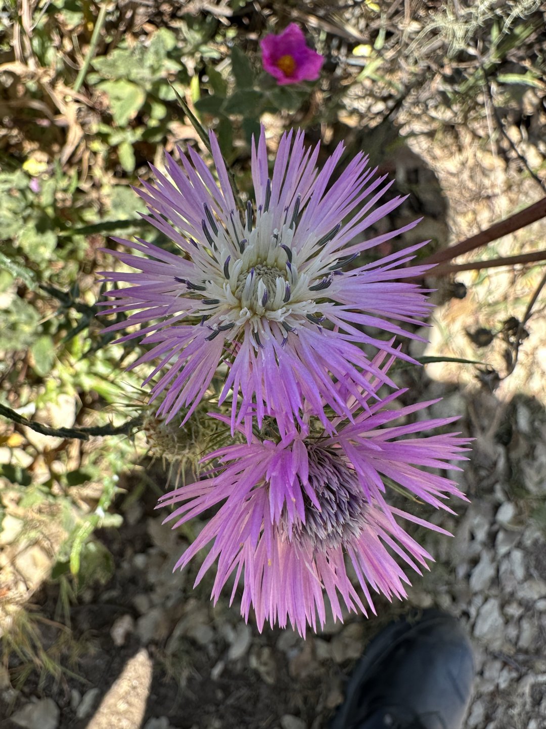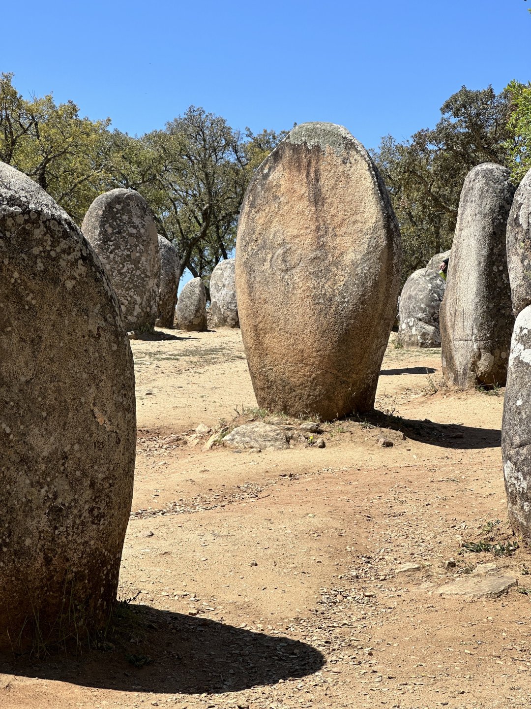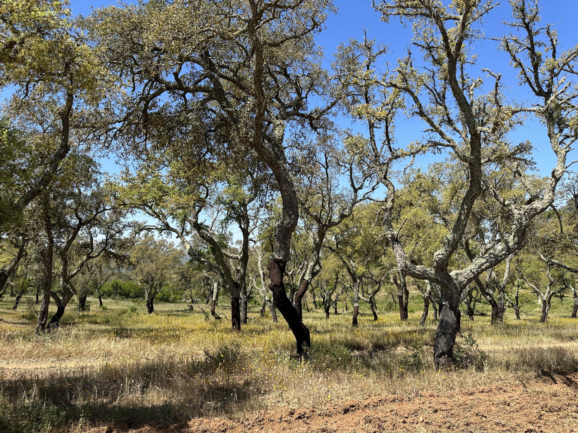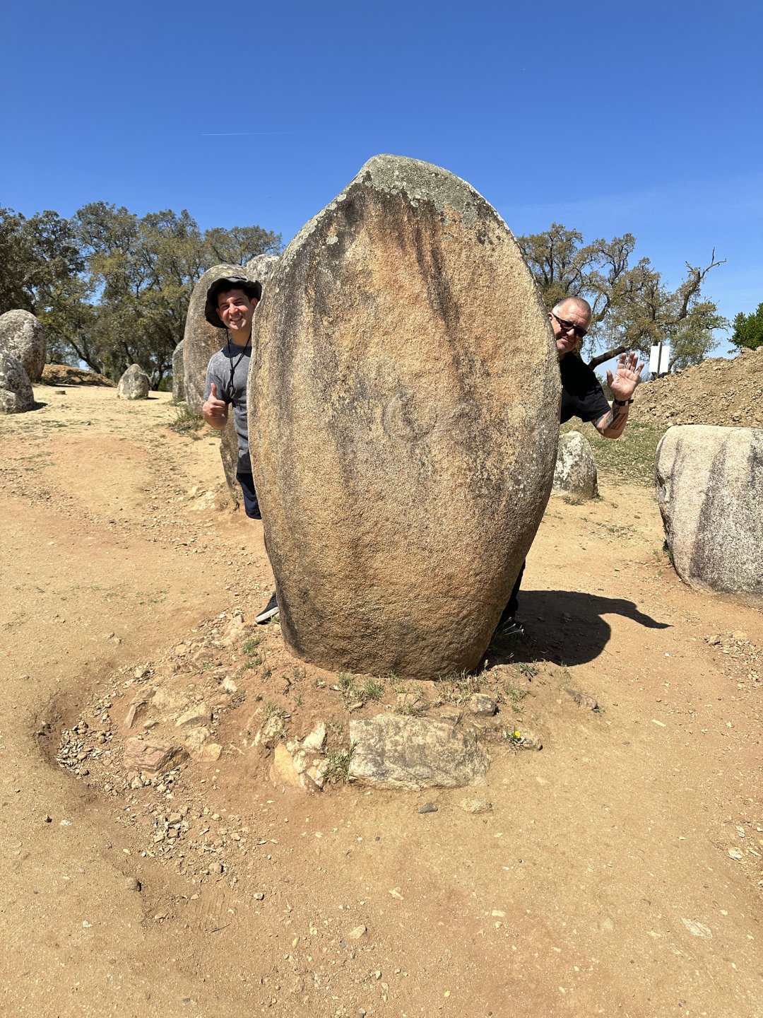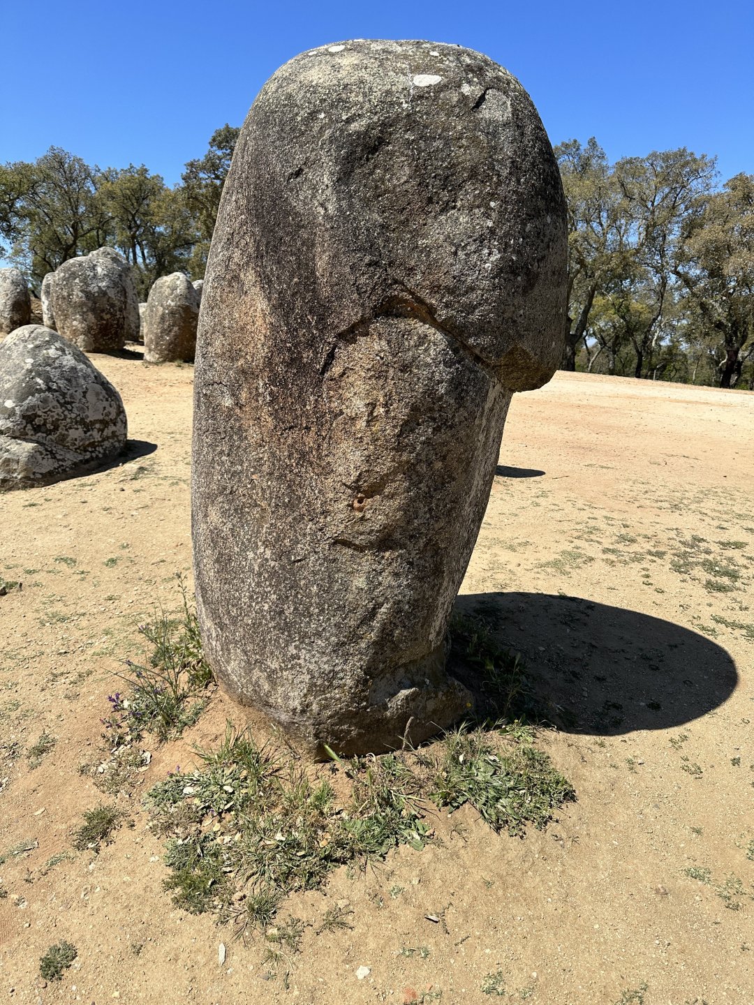 Today it was time to head for Portugal where Titus wanted to show us some stones. It was quite a pleasant ride through villages once we'd left the motorway. We found a campsite at Evora that was ok, it had internet, but the pitches left something to be desired. It was getting hot. Time for some laundry. Then it was time to look for stones. By the time we set off it was bloody baking. Interesting ride ending up along some dirt track. Then it was a hike down a footpath broiling in the sun, where we saw a stone. Great. After hiking up a mountain to get back to the bikes I was bushed! More water then another couple of miles to look at more stones. I thought that the mound of earth was for burying people who'd cooked for long enough. Lots of stones. I had a lie down on this one until I realised that I was cooking from it's heat. A new one for me. Bark taken for cork I assume. Then I thought it would be nice to photograph some flowers. I might have been hallucinating in the heat. It looks as if the bark has been taken off a lot of these trees. I remember this as being more colourful, man! This was the highlight of the day. Shade and beer! Unfortunately the food left something to be desired. All to be expected in the local football club bar.5 points